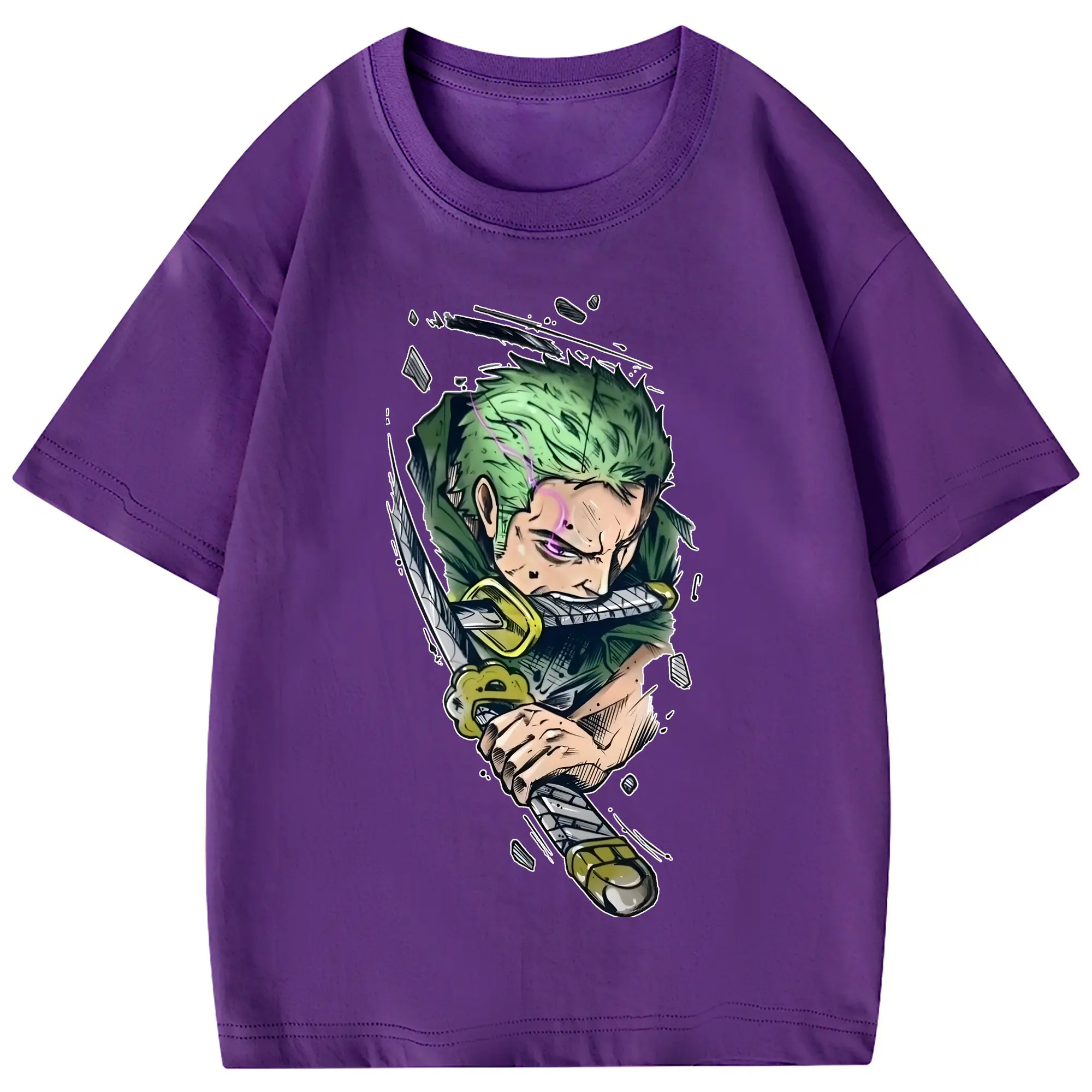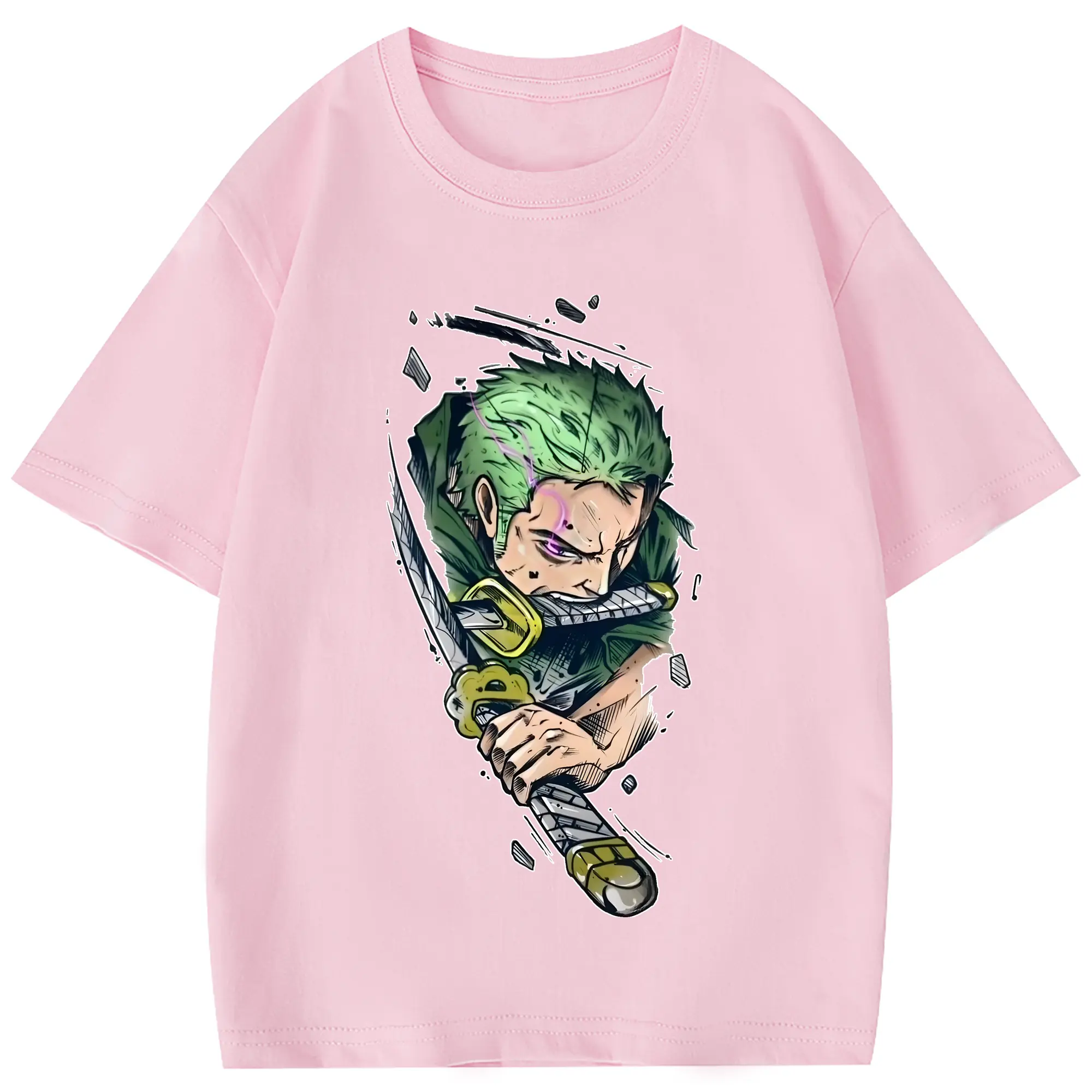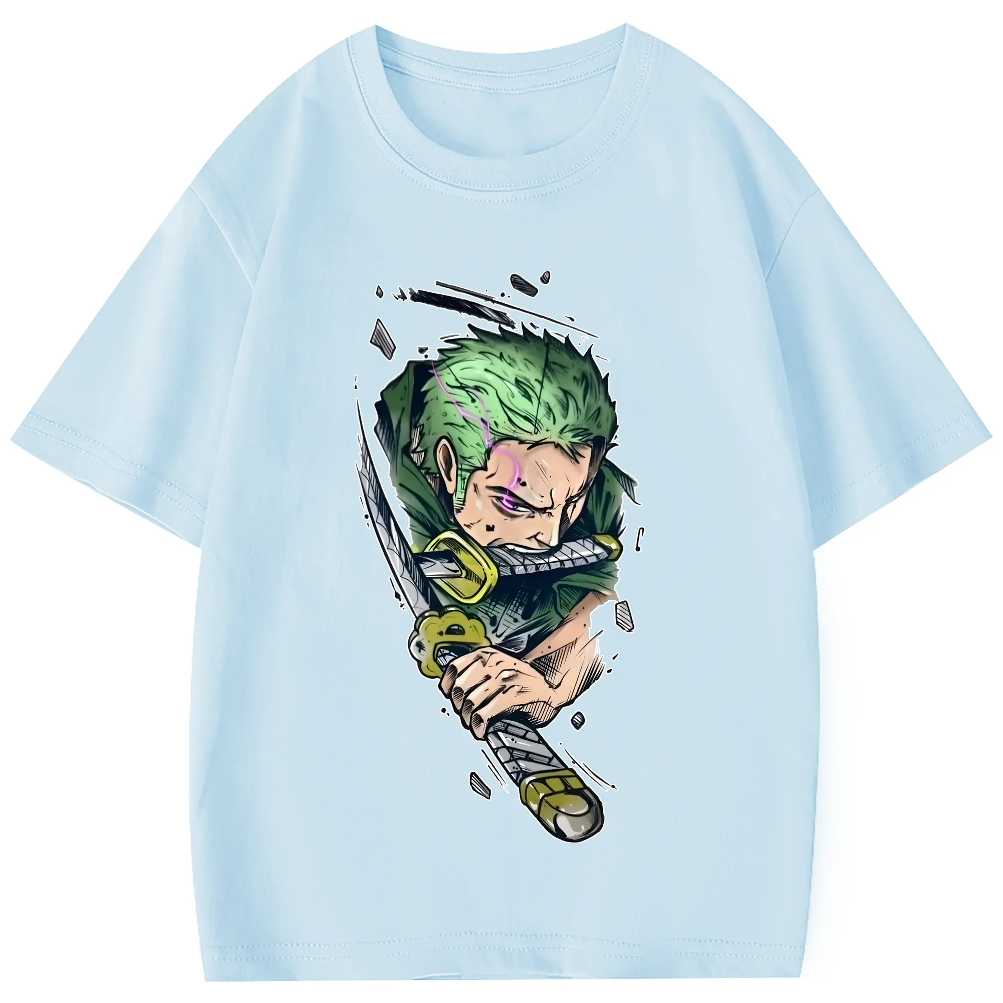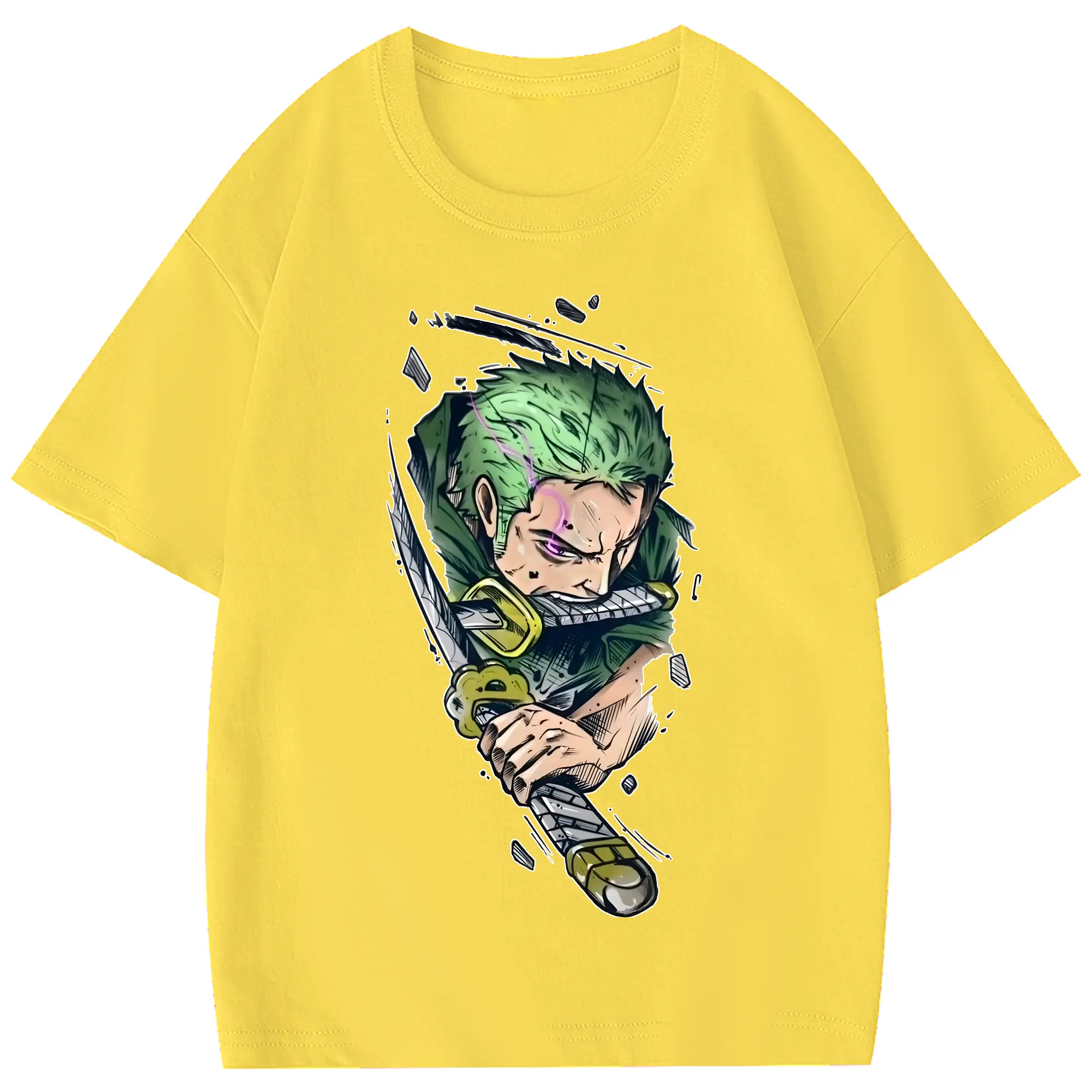 ワンピース グッズ ロロノア・ゾロ - 綿100% 半袖Tシャツ ・ フロントプリント ・ 快適 通気性 ・ 日常使い 散歩 スポーツ用