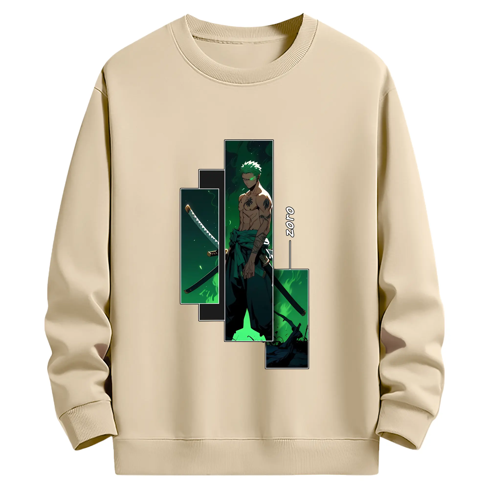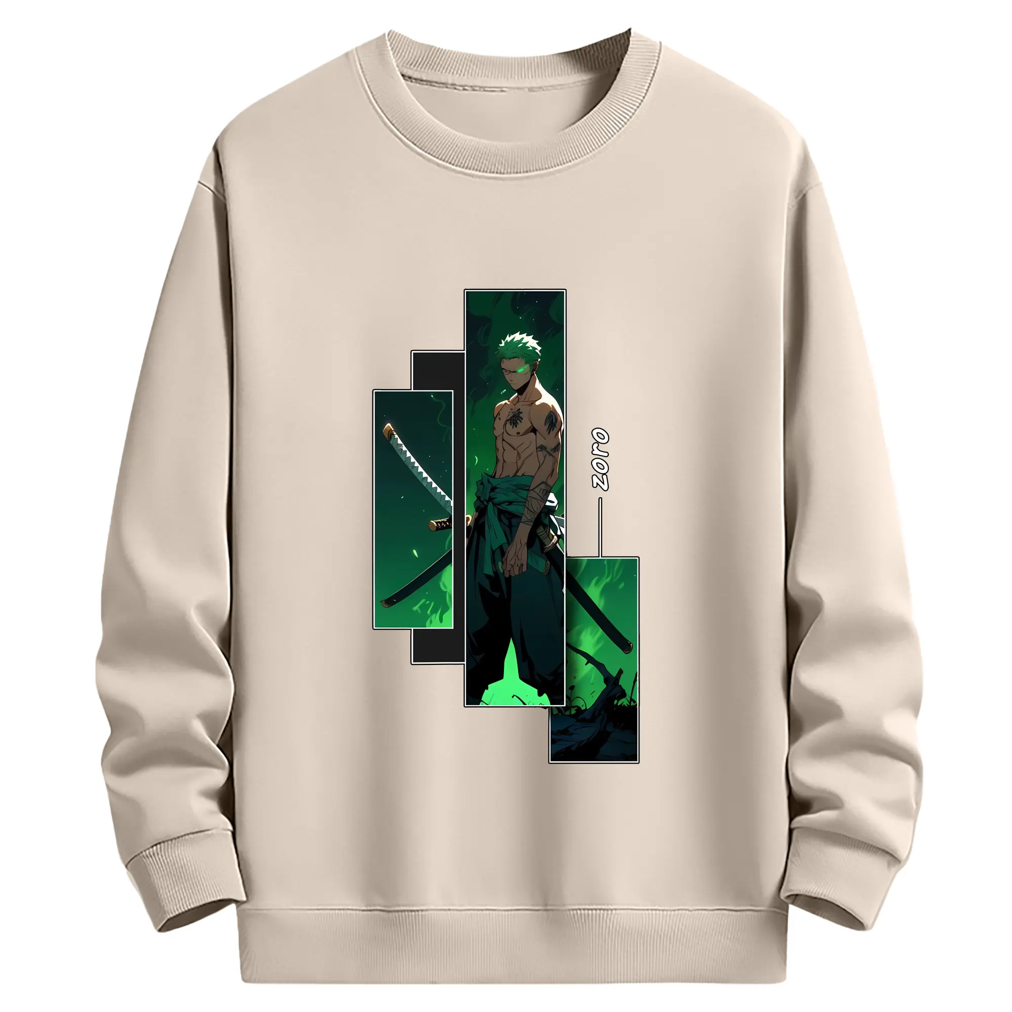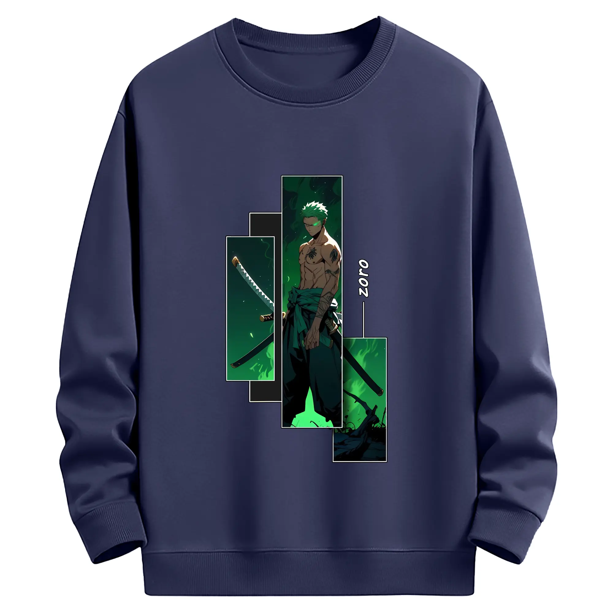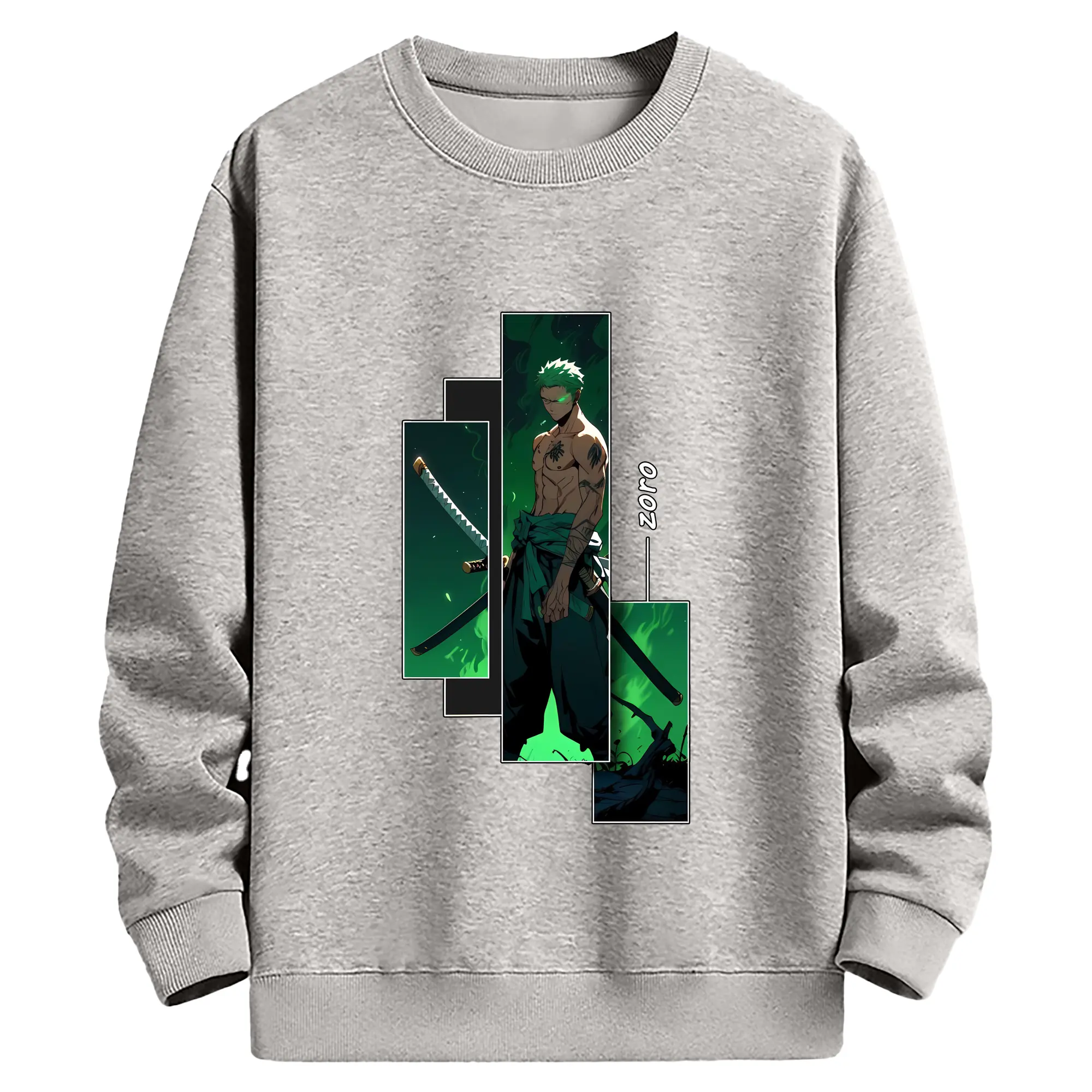 ワンピース グッズ ロロノア・ゾロ - 薄手 クルーネック スウェット 裏毛260g · ポリエステル 春秋向け カジュアル 男女兼用 · トレーナー デイリー スポーツ 散歩に最適