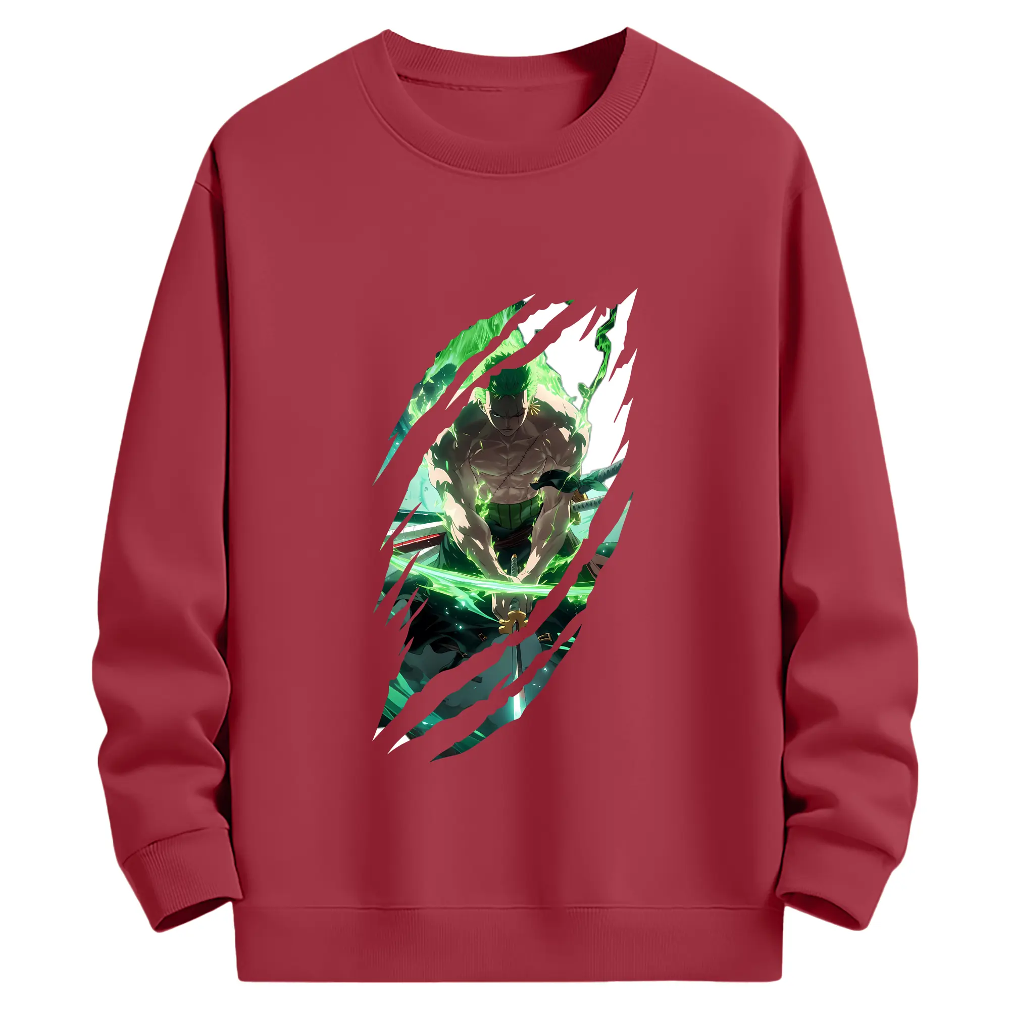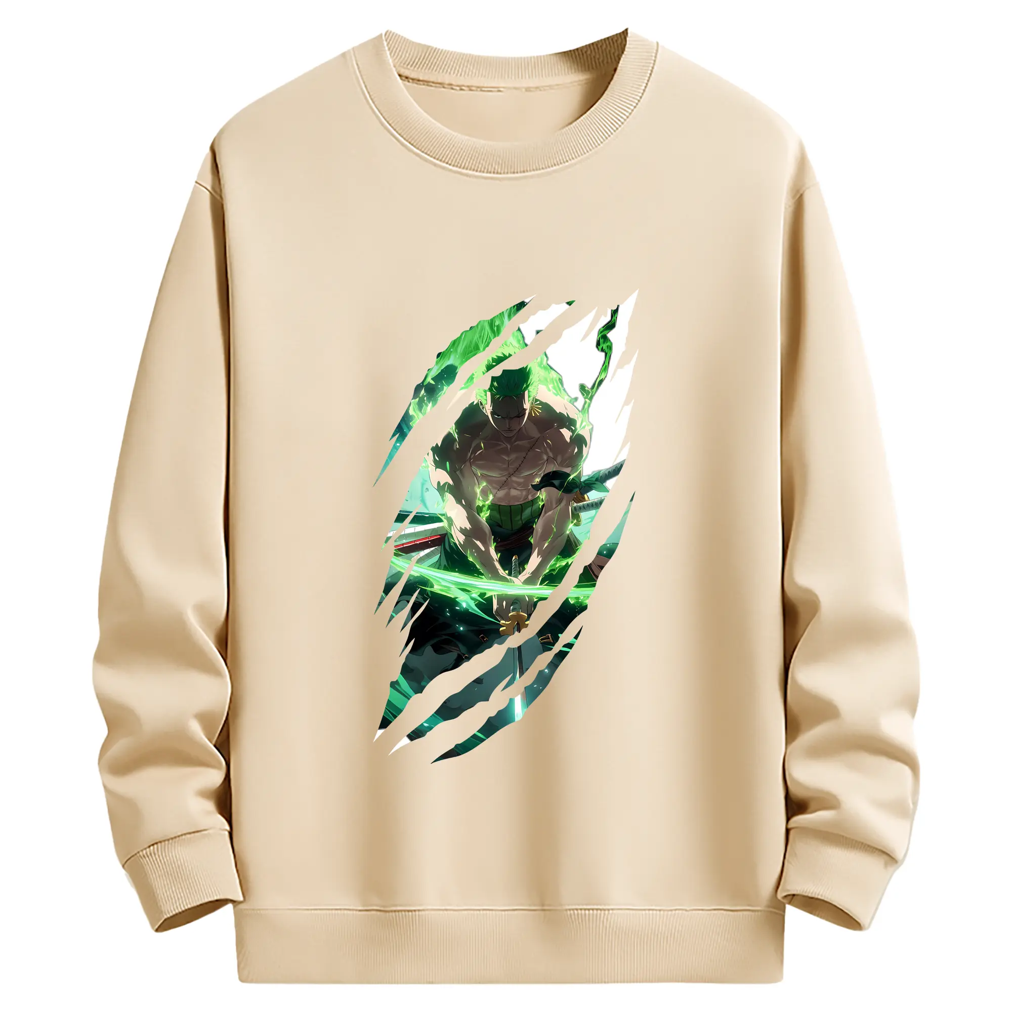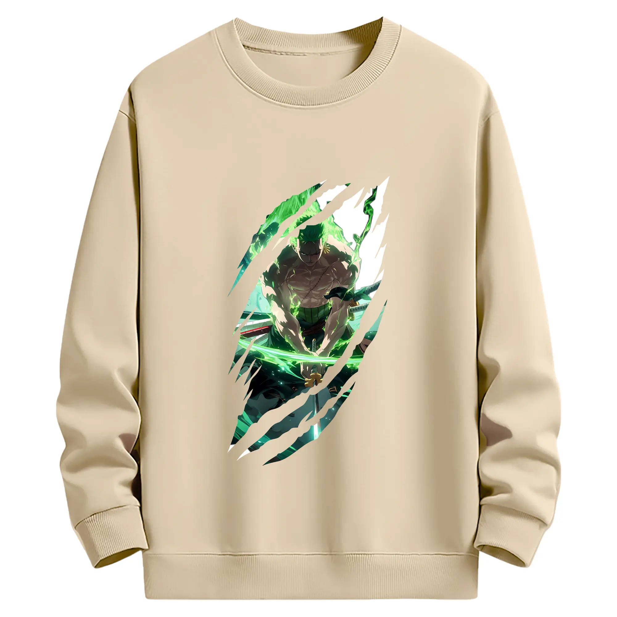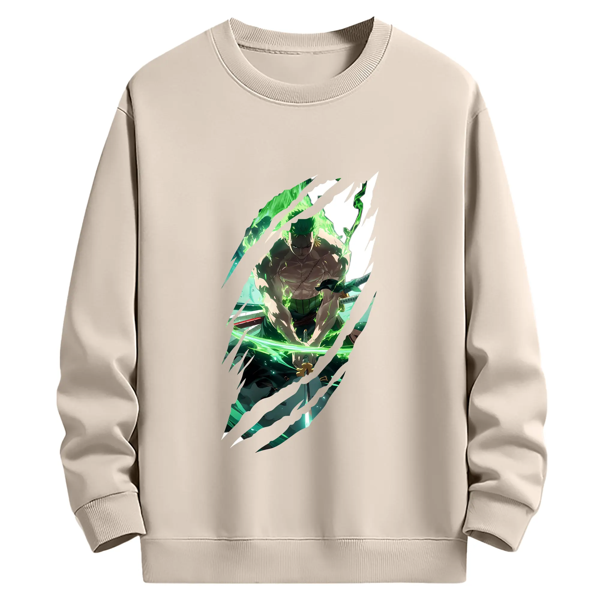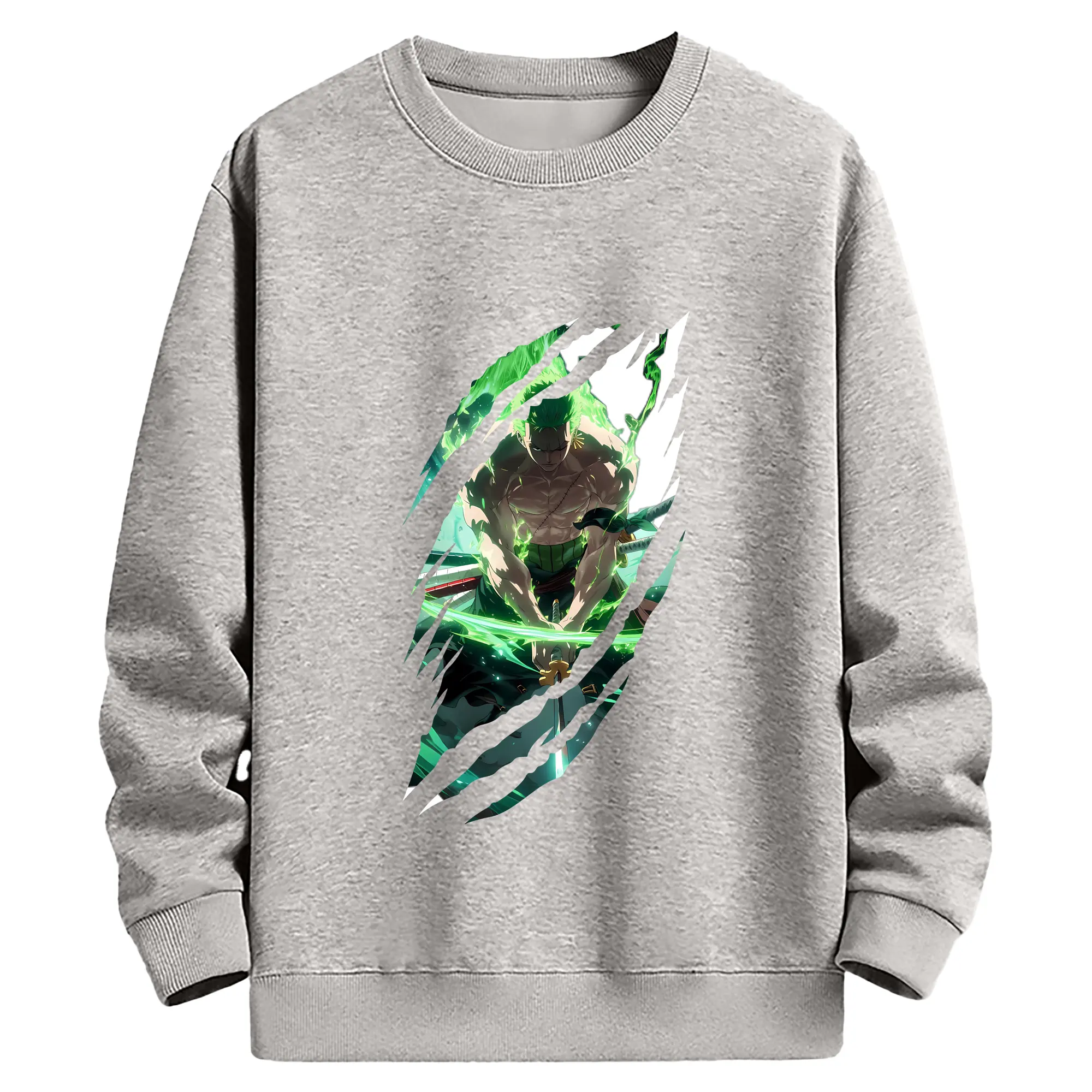 ワンピース グッズ ロロノア・ゾロ - 薄手 クルーネック スウェット 裏毛260g · ポリエステル 春秋向け カジュアル 男女兼用 · トレーナー デイリー スポーツ 散歩に最適