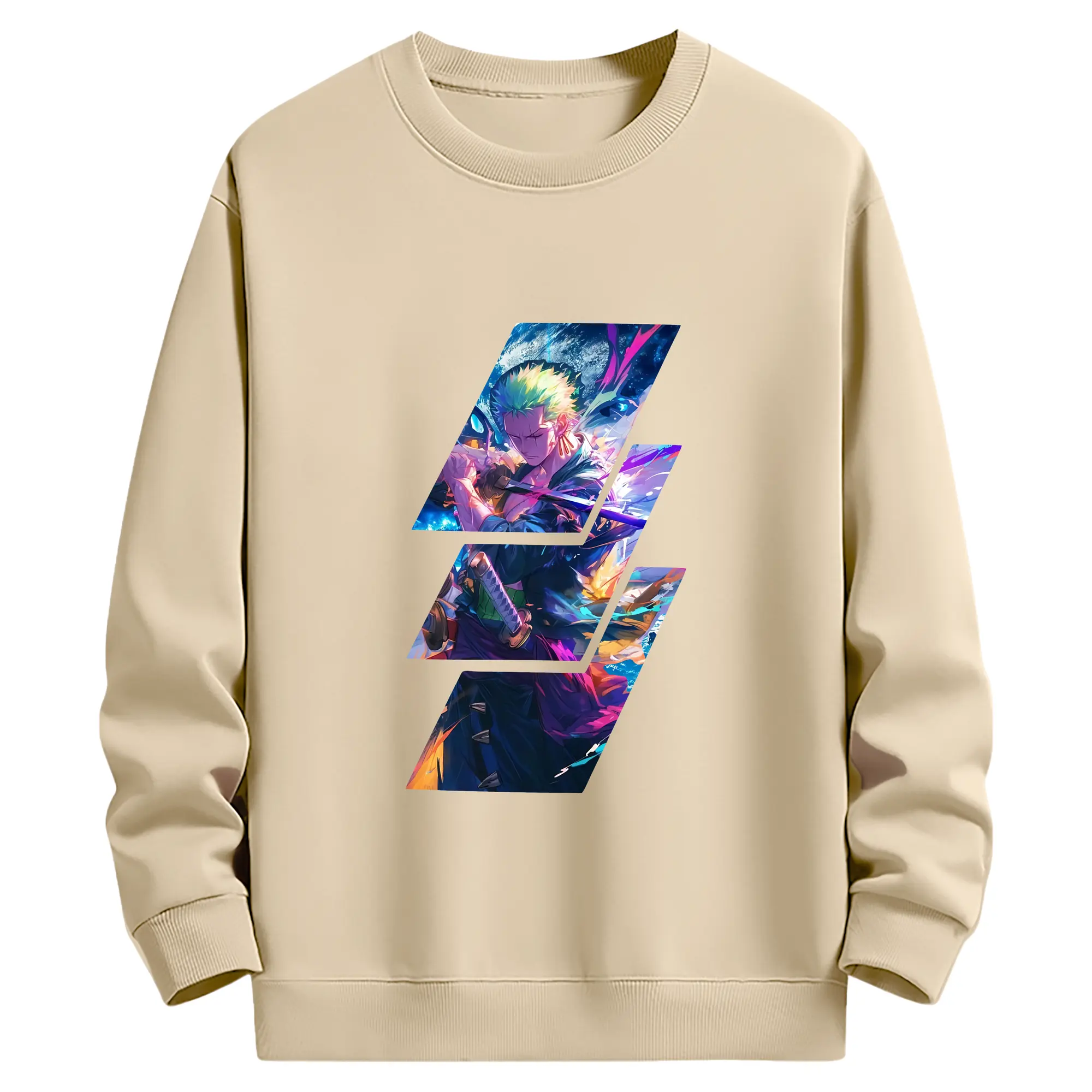 ワンピース グッズ ロロノア・ゾロ - 高品質 クルーネック スウェット ・ コットン59% ポリエステル41% ・ ユニセックス 長袖 トレーナー ・ カジュアル デイリー スポーツ 散歩用