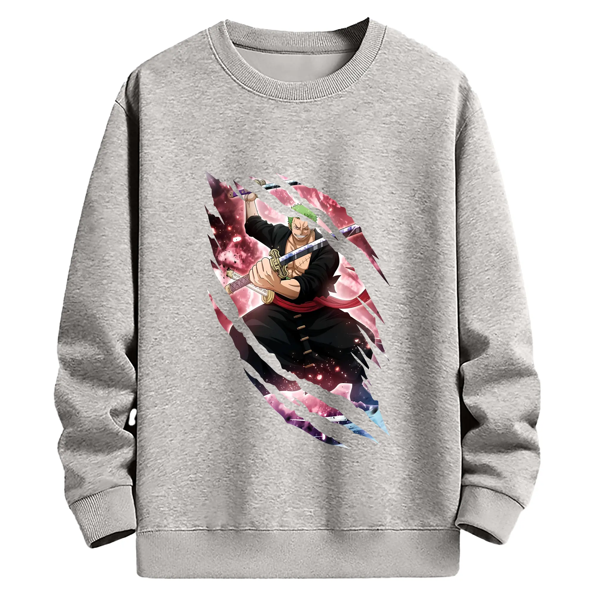 ワンピース グッズ ロロノア・ゾロ - 薄手 クルーネック スウェット 裏毛260g · ポリエステル 春秋向け カジュアル 男女兼用 · トレーナー デイリー スポーツ 散歩に最適