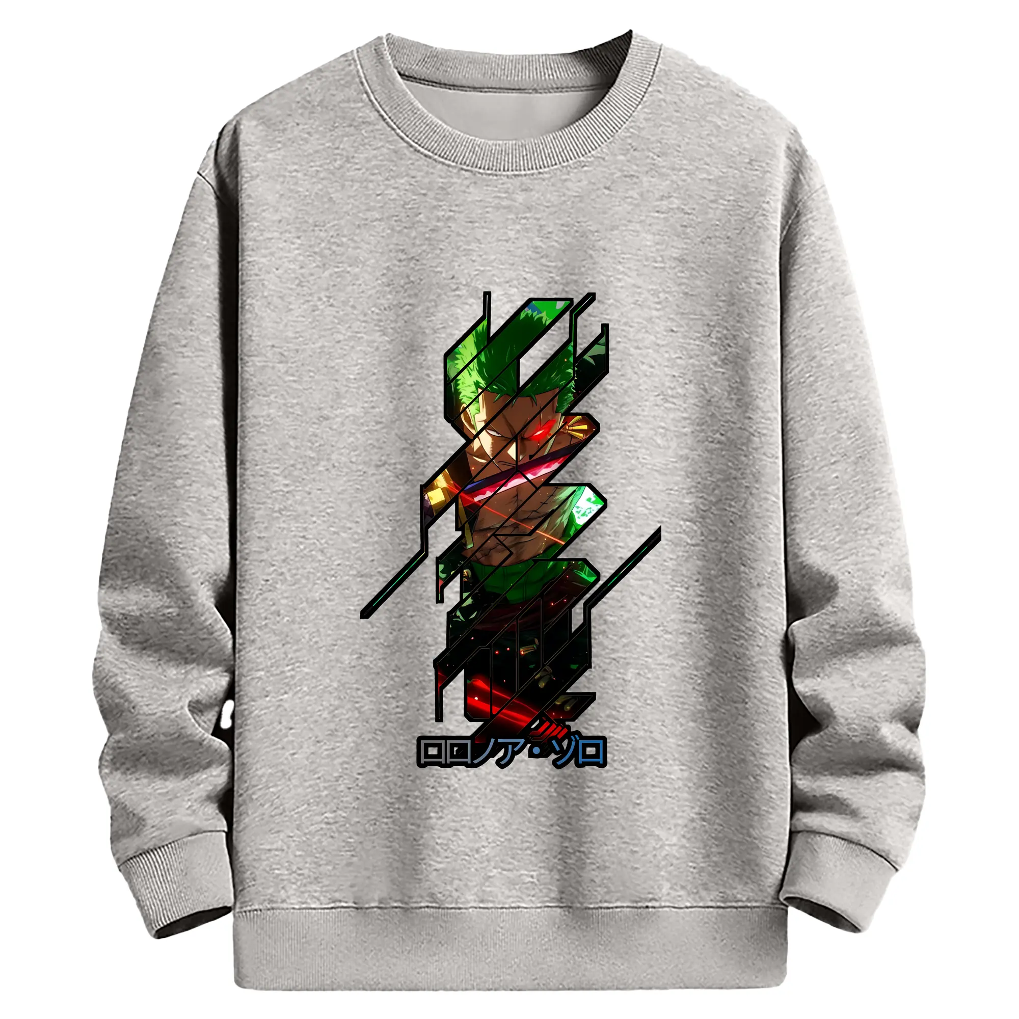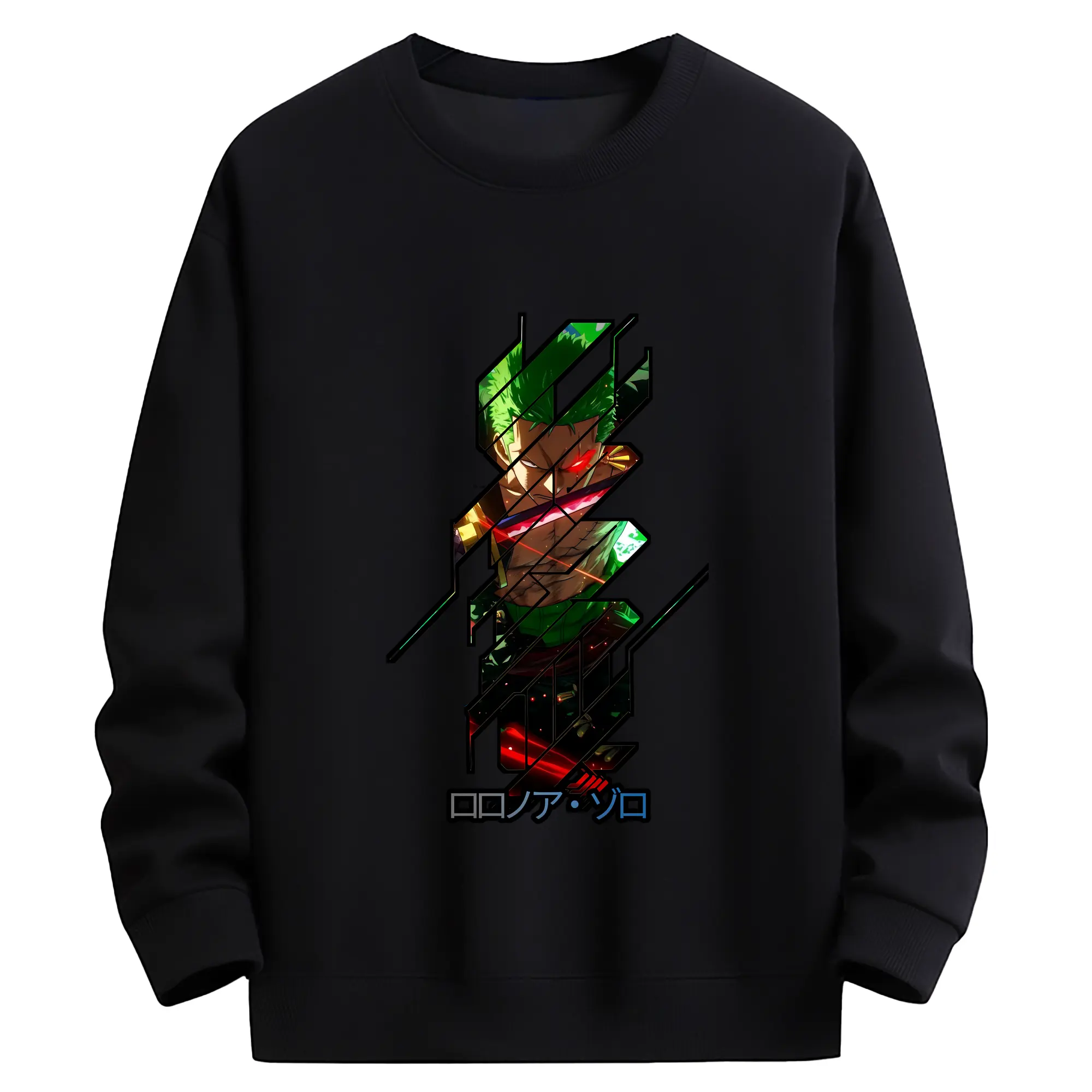 ワンピース グッズ ロロノア・ゾロ - 高品質 クルーネック スウェット ・ コットン59% ポリエステル41% ・ ユニセックス 長袖 トレーナー ・ カジュアル デイリー スポーツ 散歩用
