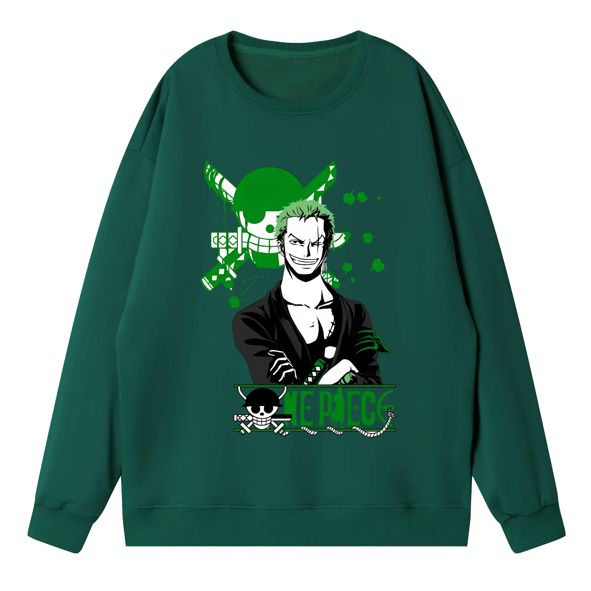 ワンピース グッズ ロロノア・ゾロ - 高品質 クルーネック スウェット ・ コットン59% ポリエステル41% ・ ユニセックス 長袖 トレーナー ・ カジュアル デイリー スポーツ 散歩用