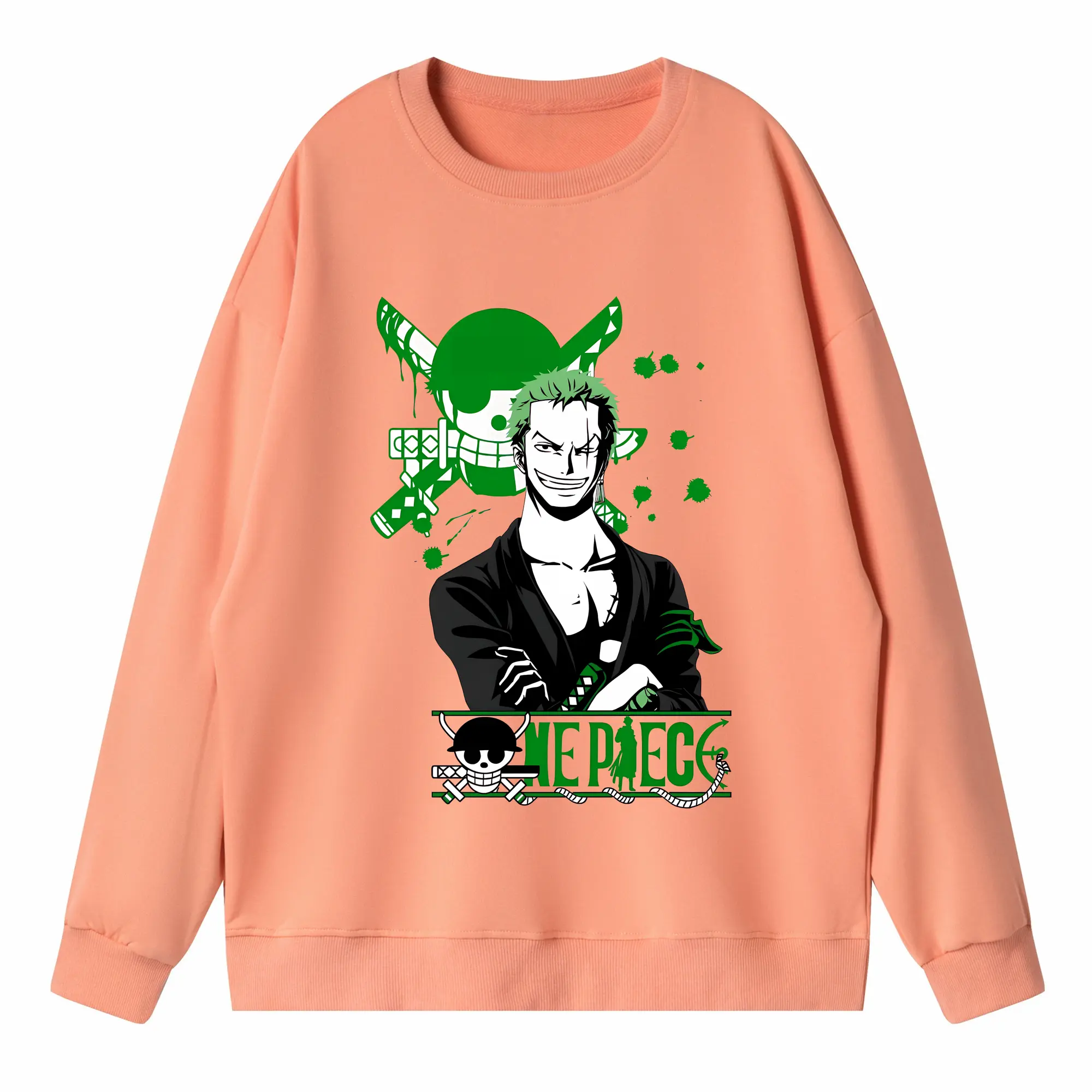 ワンピース グッズ ロロノア・ゾロ - 薄手 クルーネック スウェット 裏毛260g · ポリエステル 春秋向け カジュアル 男女兼用 · トレーナー デイリー スポーツ 散歩に最適