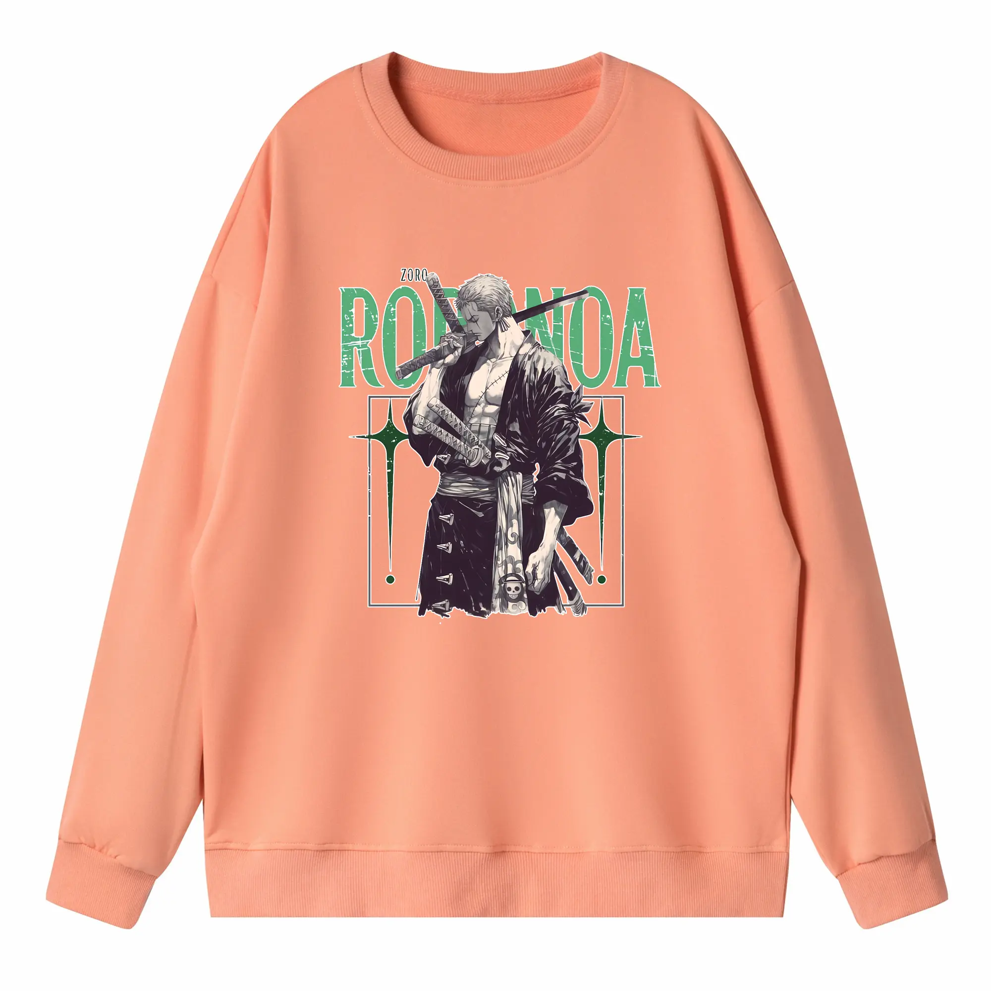 ワンピース グッズ ロロノア・ゾロ - 高品質 クルーネック スウェット ・ コットン59% ポリエステル41% ・ ユニセックス 長袖 トレーナー ・ カジュアル デイリー スポーツ 散歩用