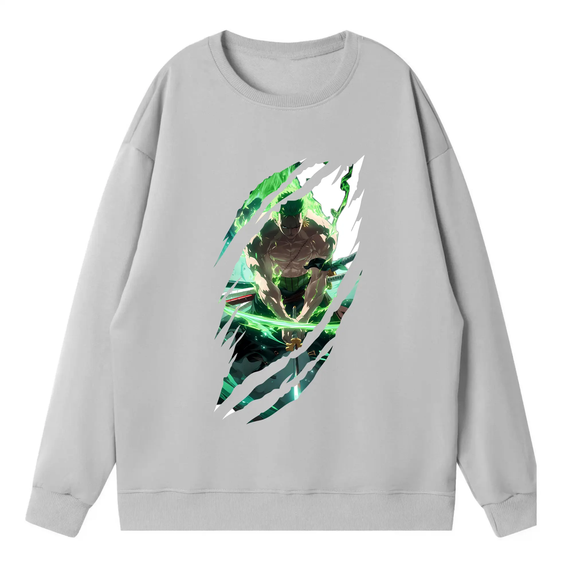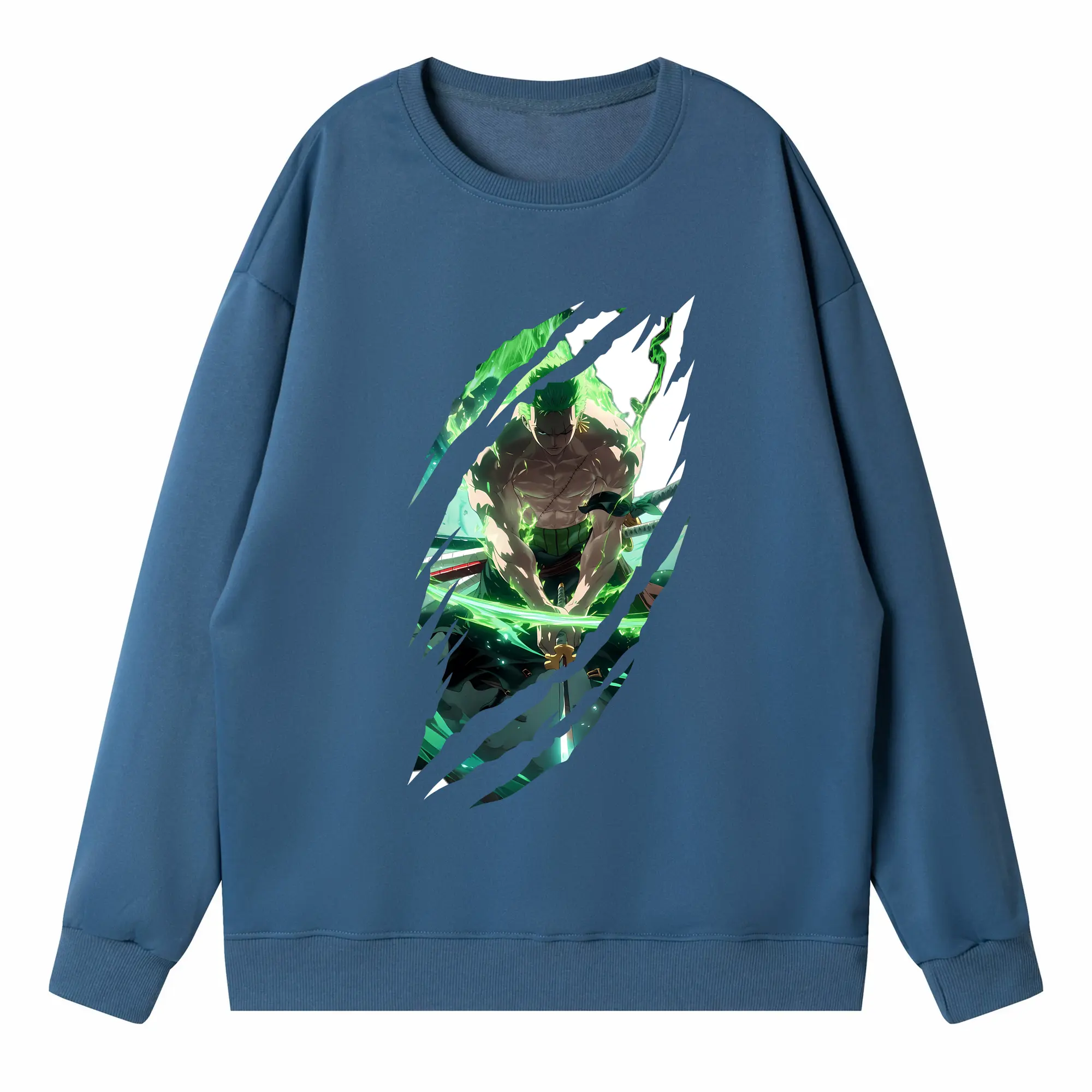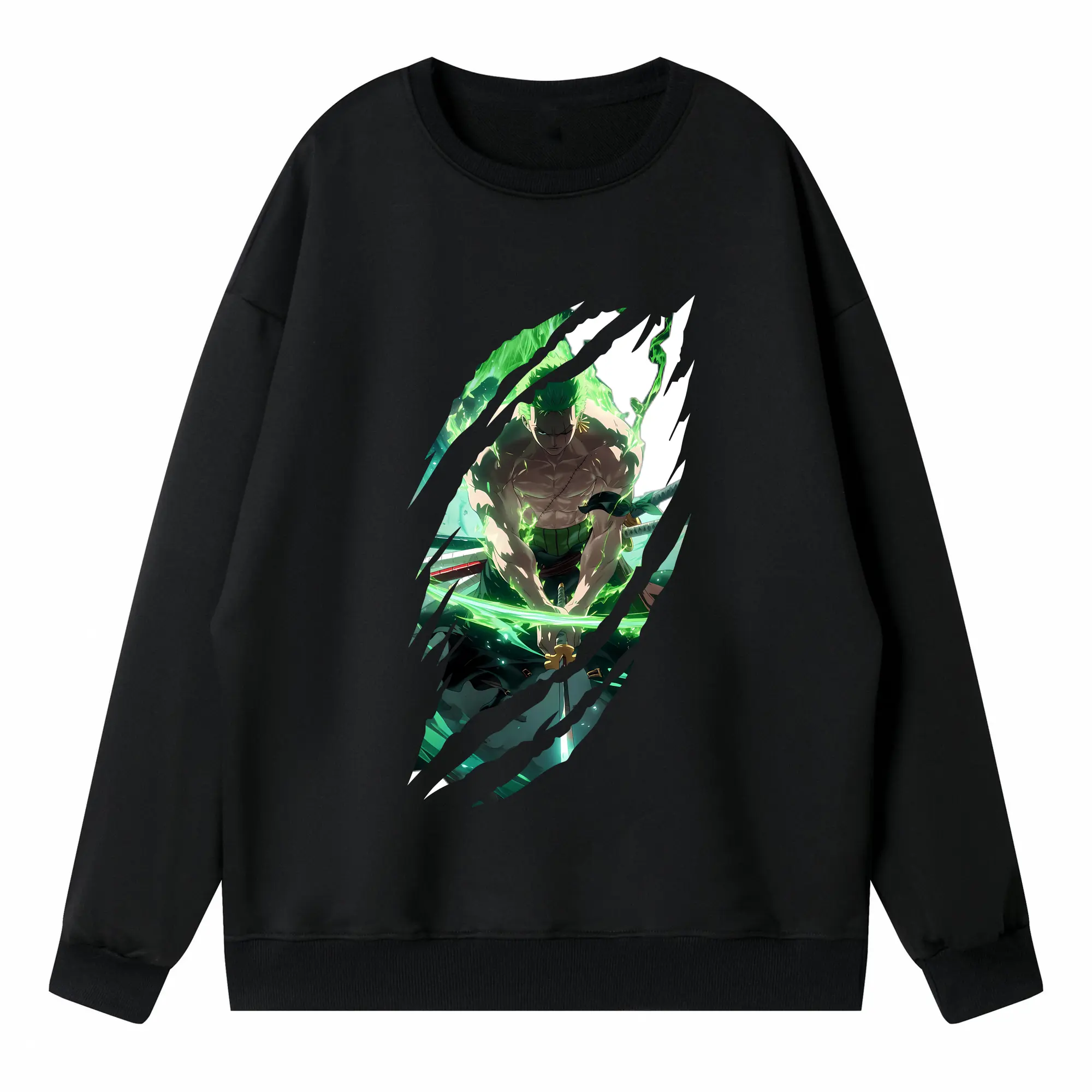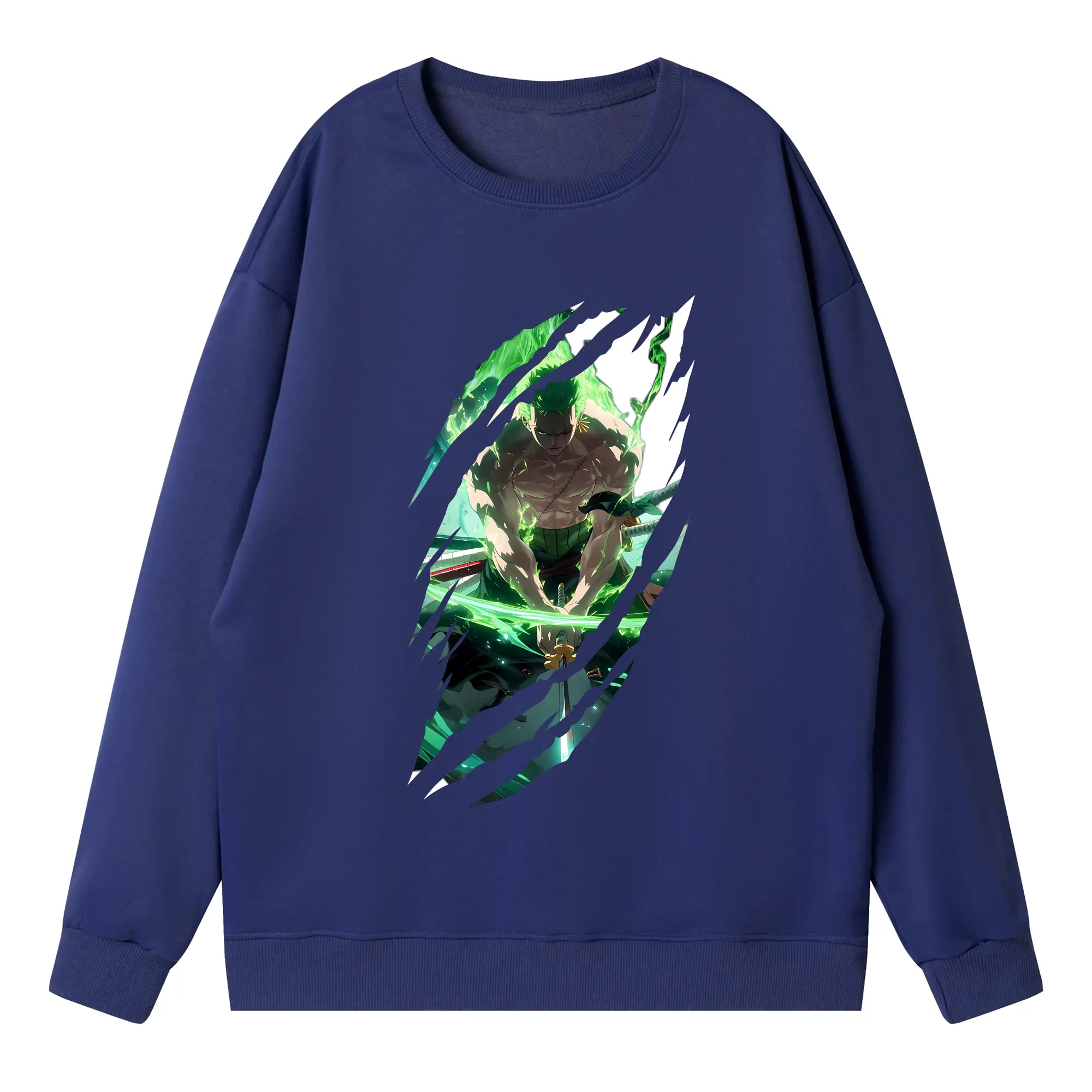 ワンピース グッズ ロロノア・ゾロ - 高品質 クルーネック スウェット ・ コットン59% ポリエステル41% ・ ユニセックス 長袖 トレーナー ・ カジュアル デイリー スポーツ 散歩用