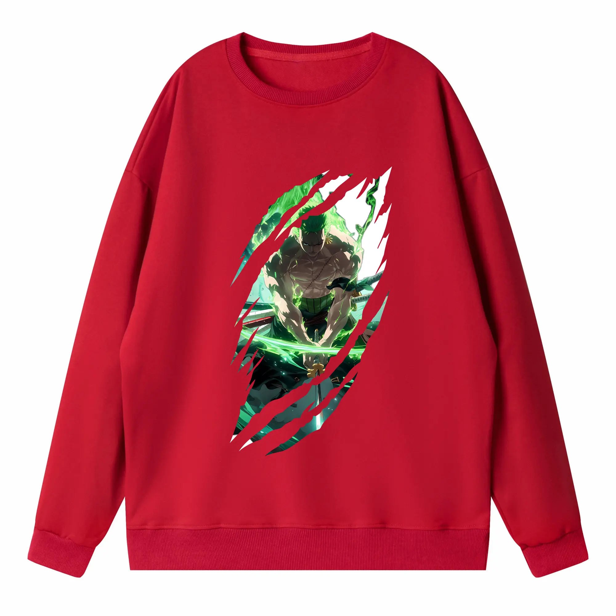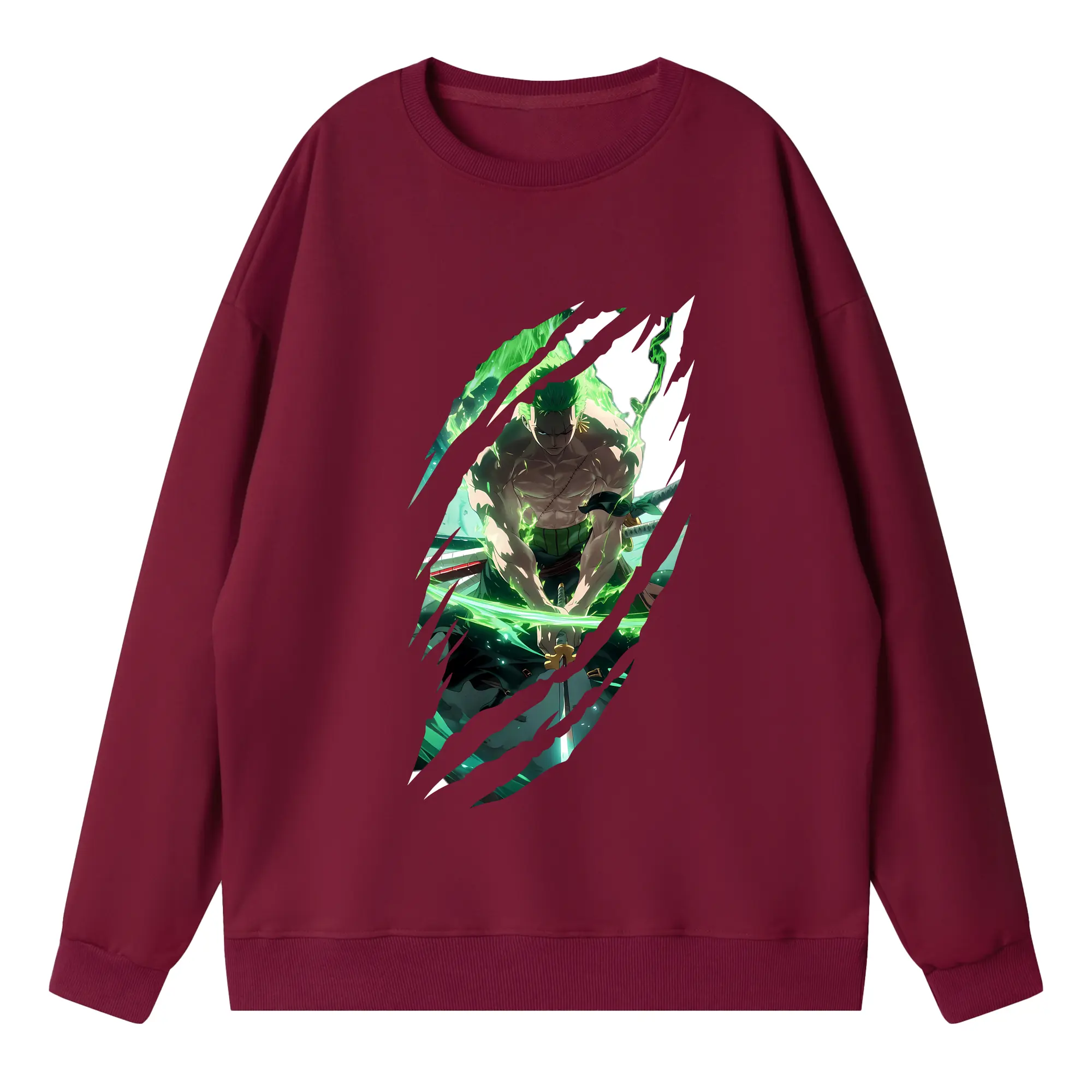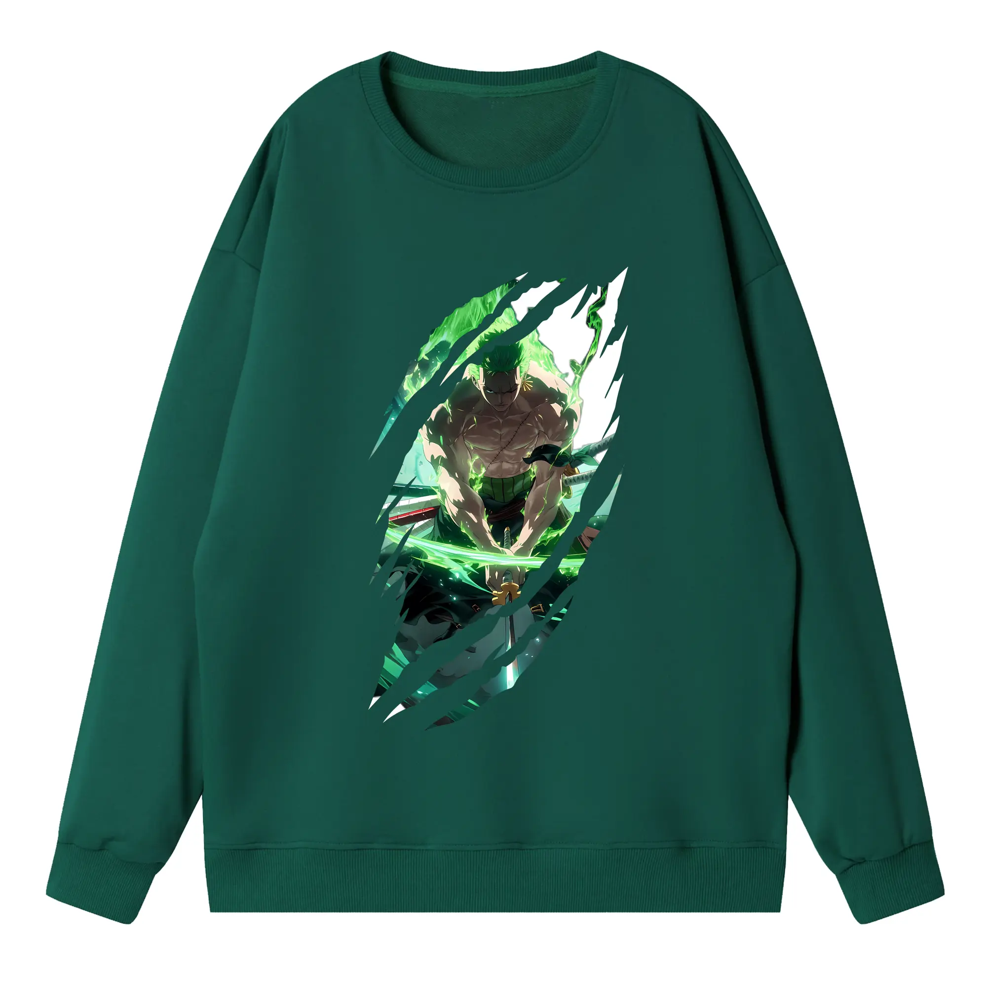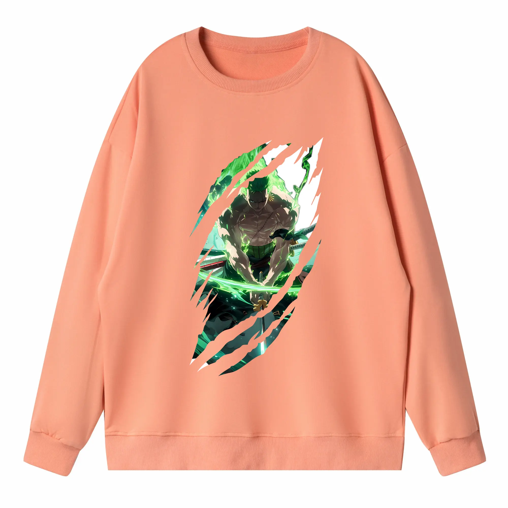 ワンピース グッズ ロロノア・ゾロ - 高品質 クルーネック スウェット ・ コットン59% ポリエステル41% ・ ユニセックス 長袖 トレーナー ・ カジュアル デイリー スポーツ 散歩用
