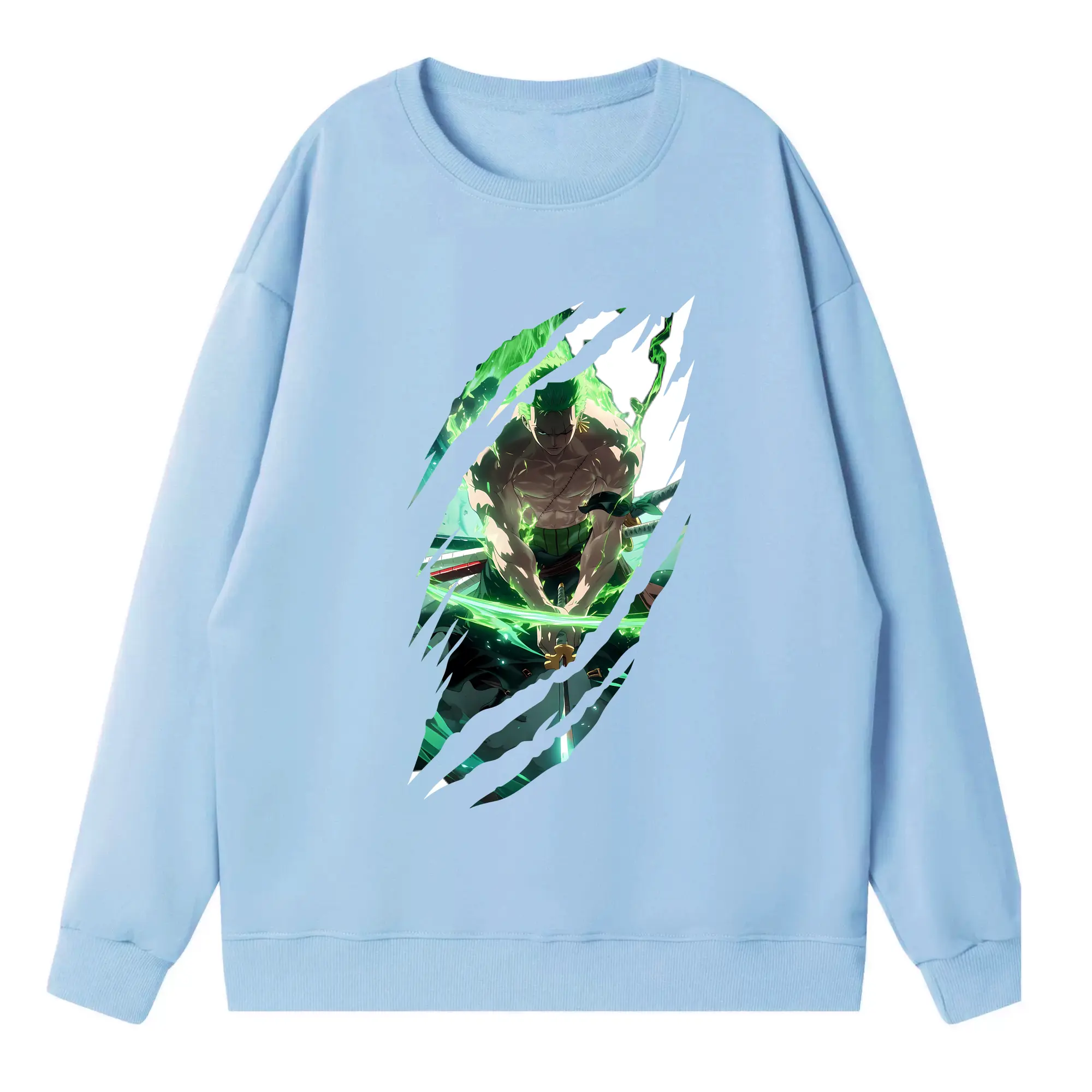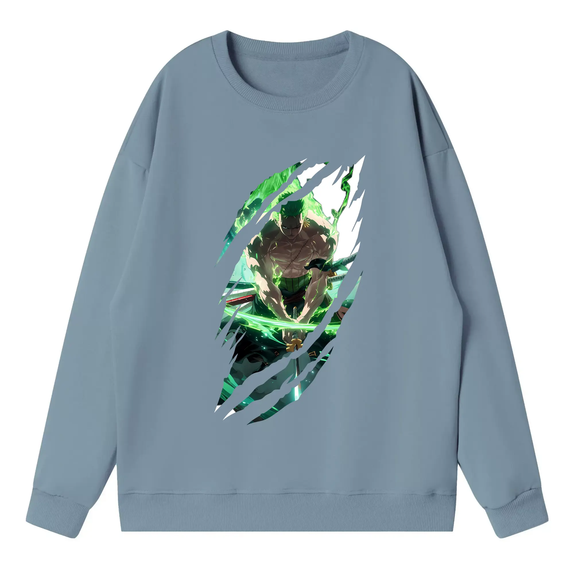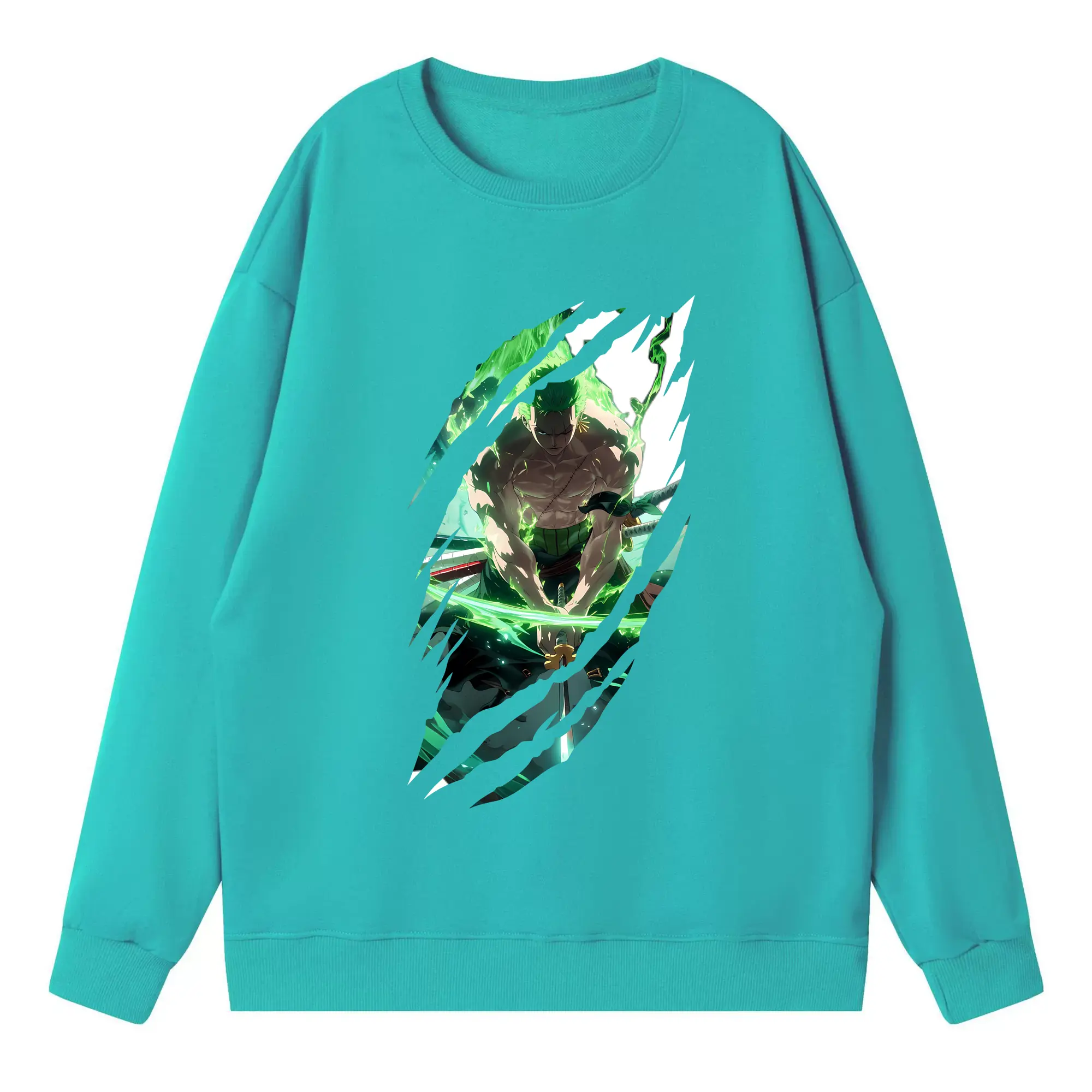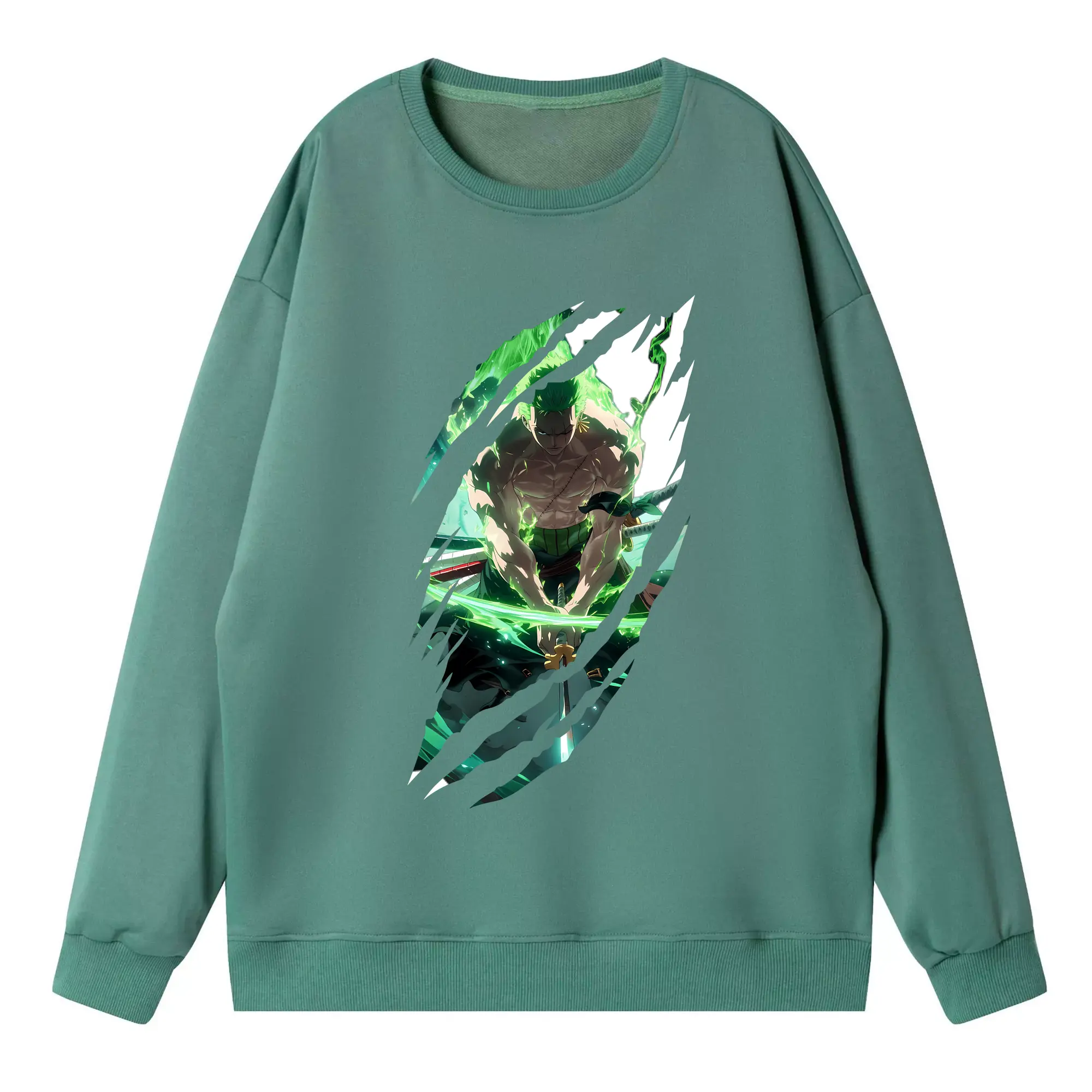 ワンピース グッズ ロロノア・ゾロ - 高品質 クルーネック スウェット ・ コットン59% ポリエステル41% ・ ユニセックス 長袖 トレーナー ・ カジュアル デイリー スポーツ 散歩用