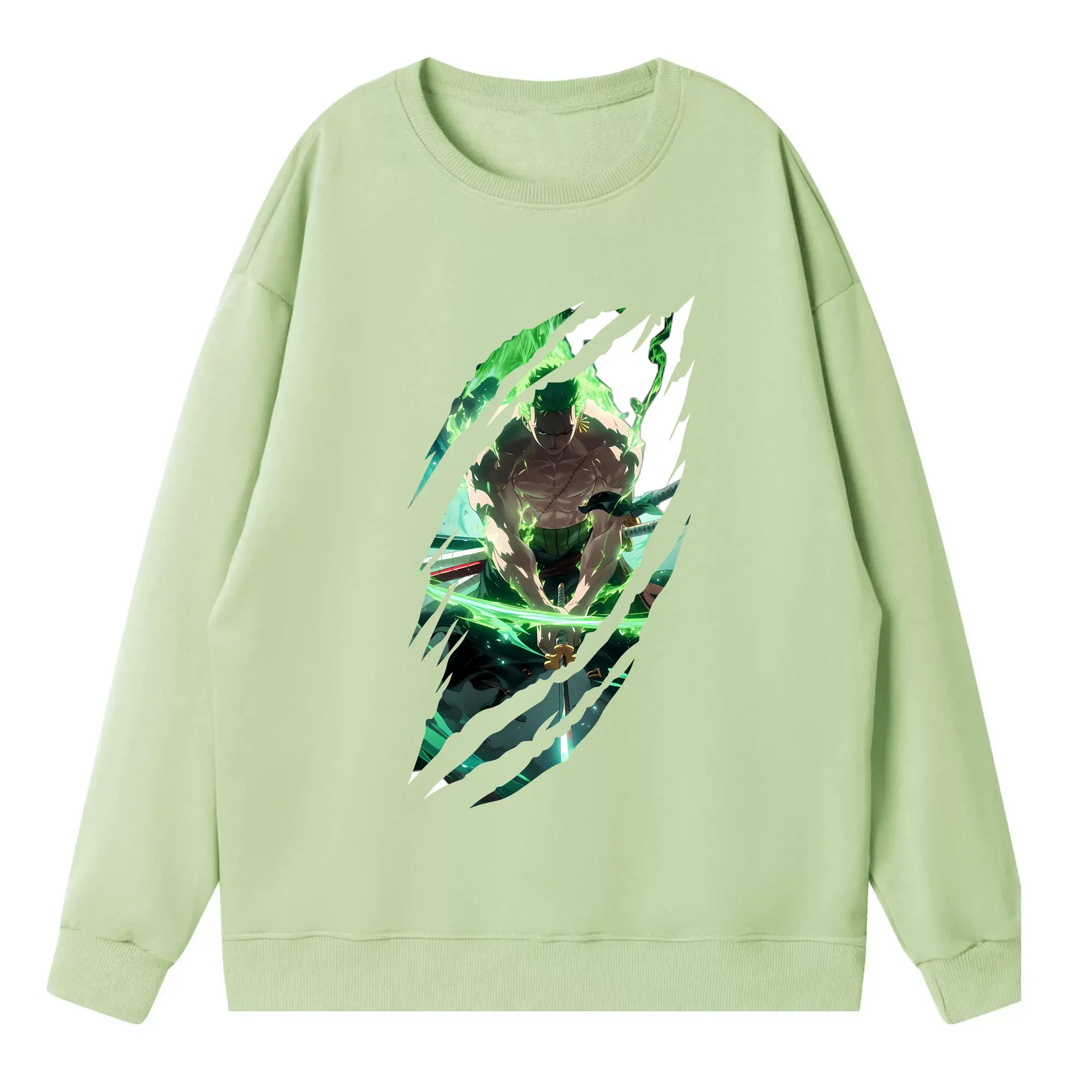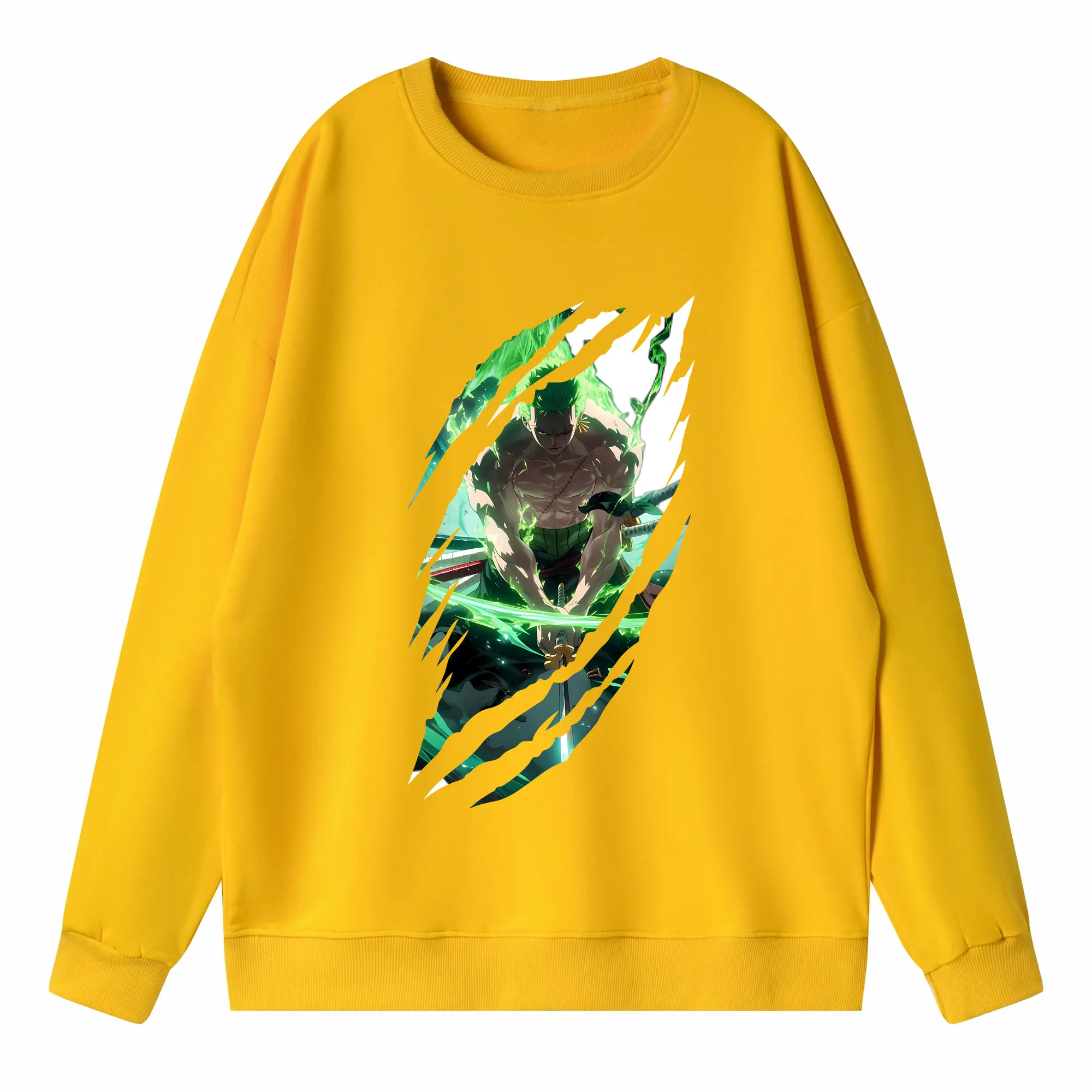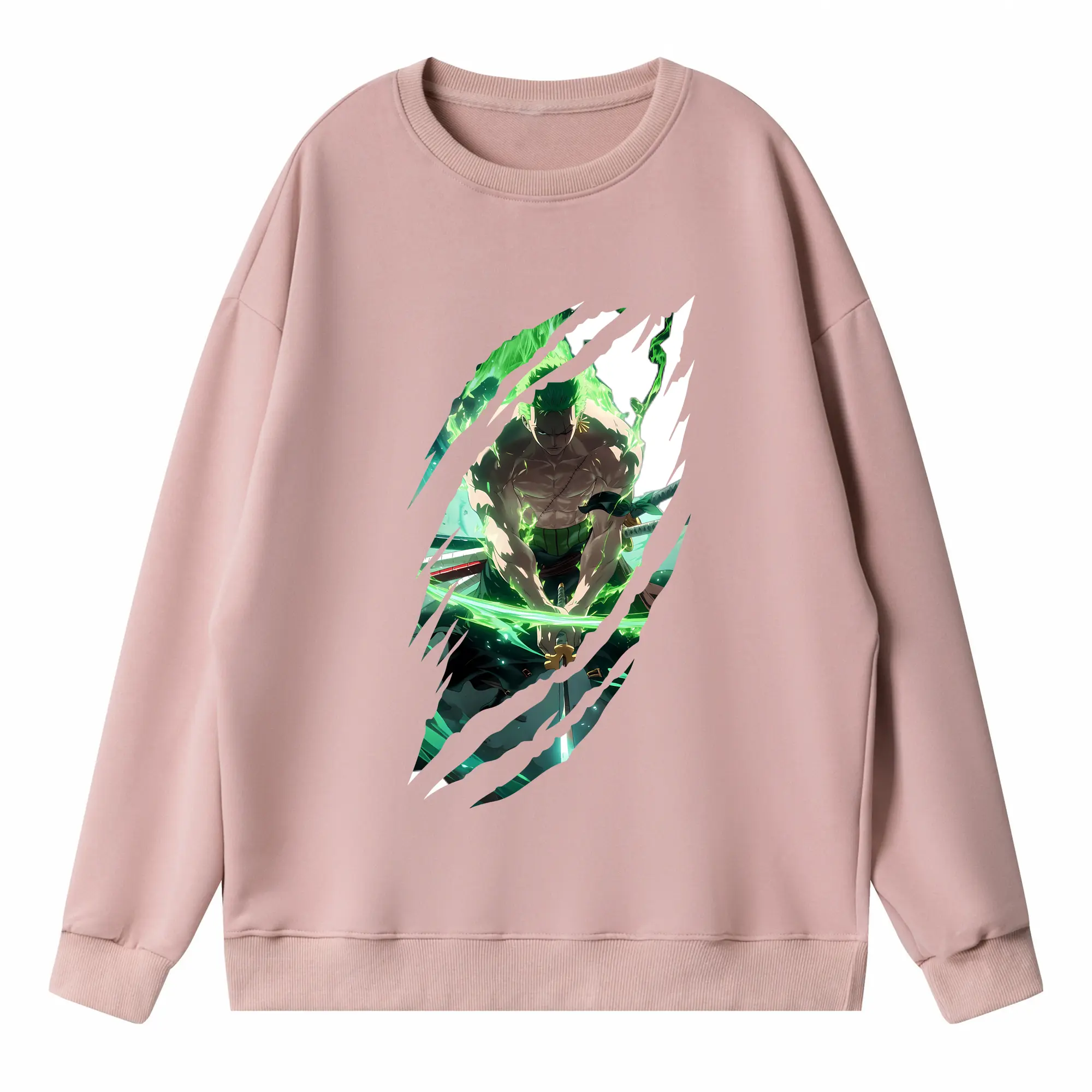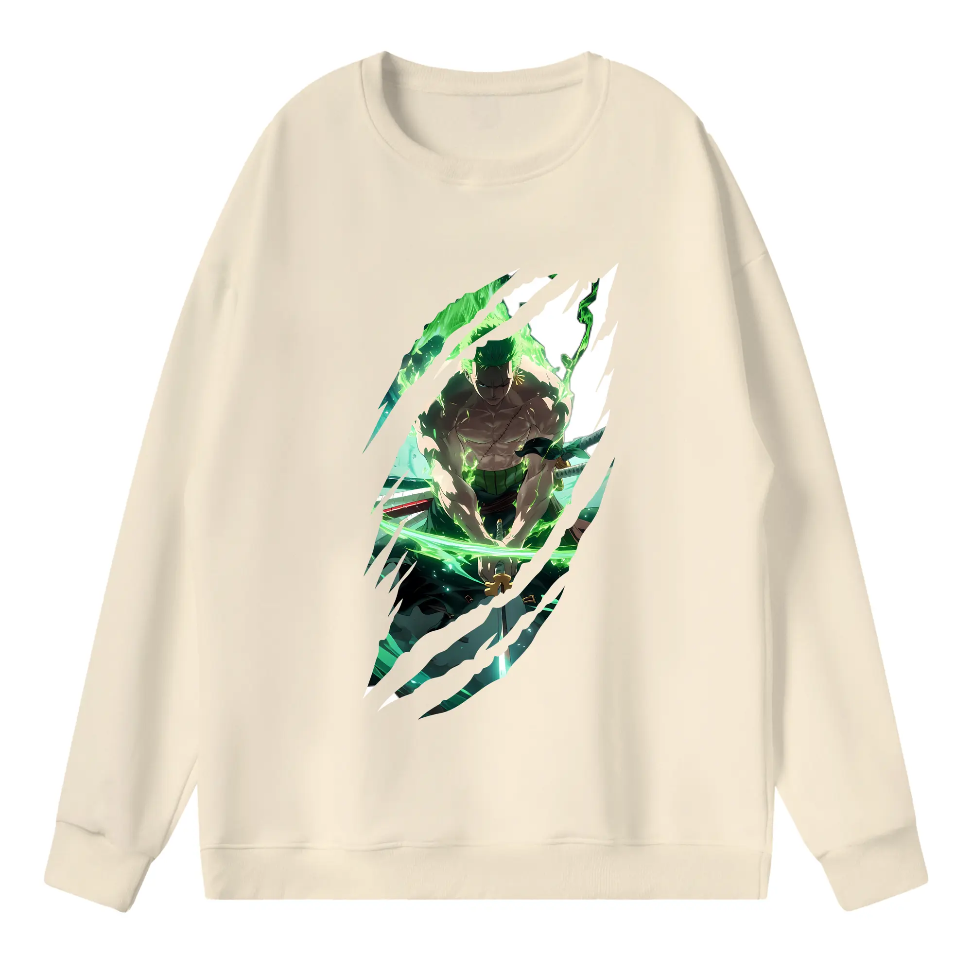 ワンピース グッズ ロロノア・ゾロ - 高品質 クルーネック スウェット ・ コットン59% ポリエステル41% ・ ユニセックス 長袖 トレーナー ・ カジュアル デイリー スポーツ 散歩用