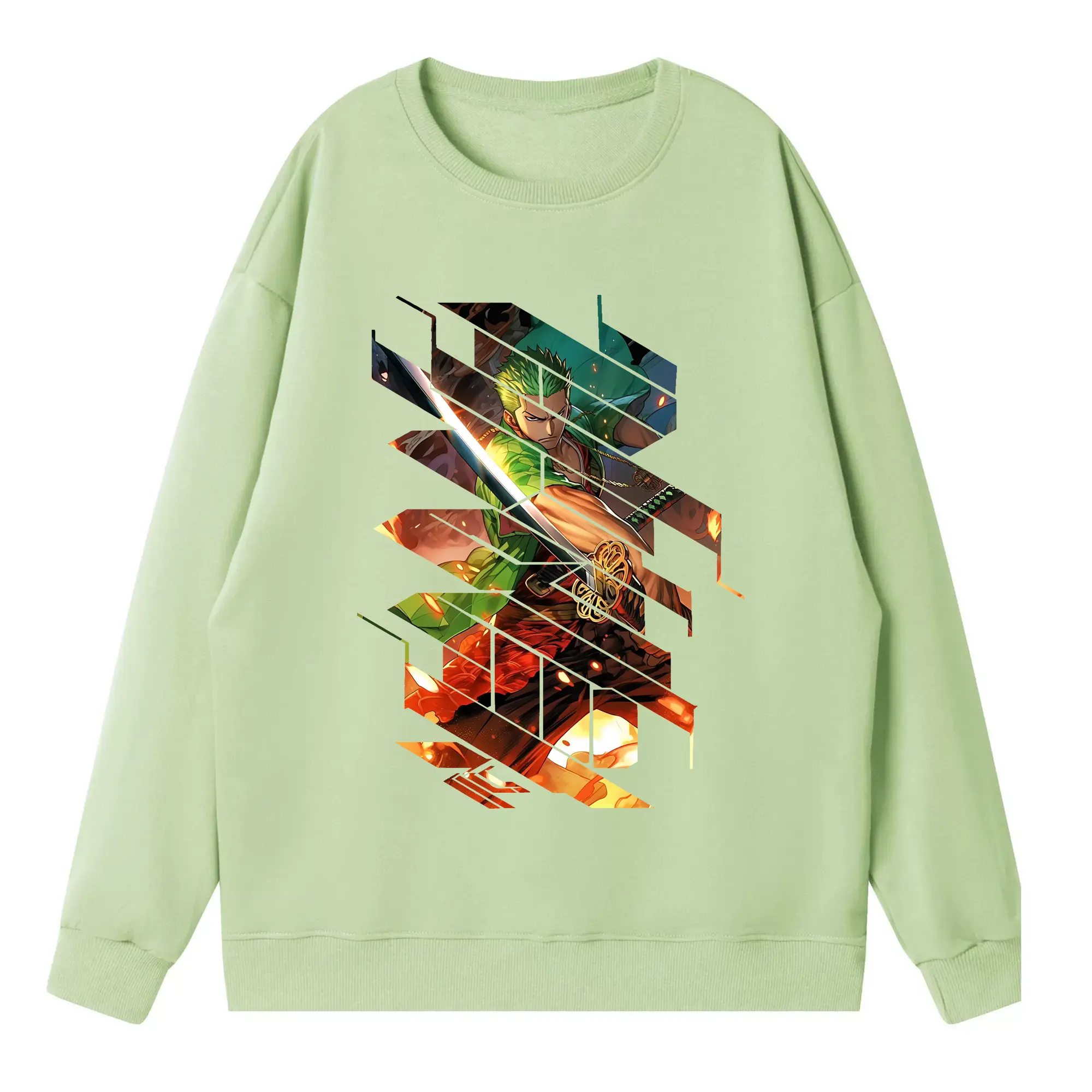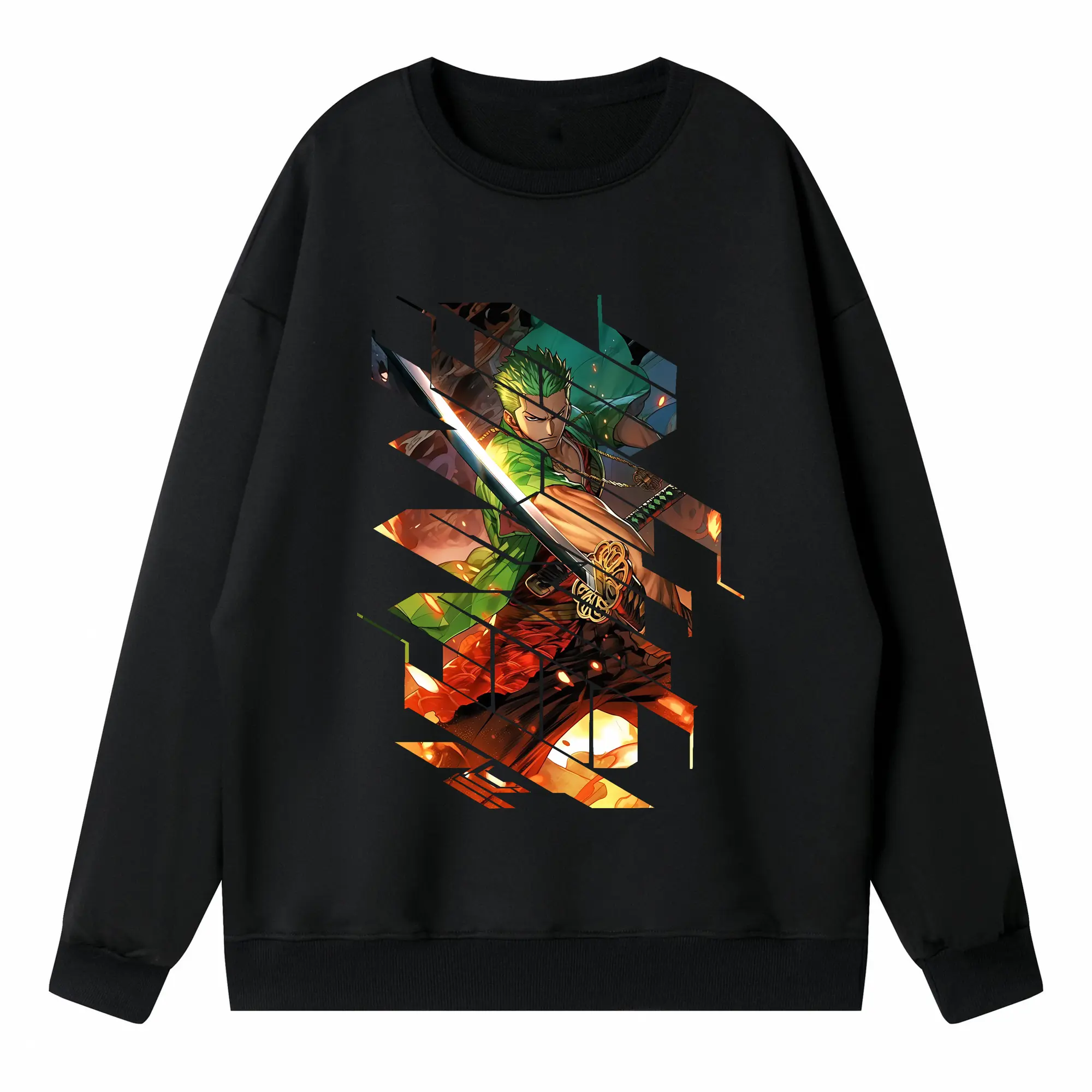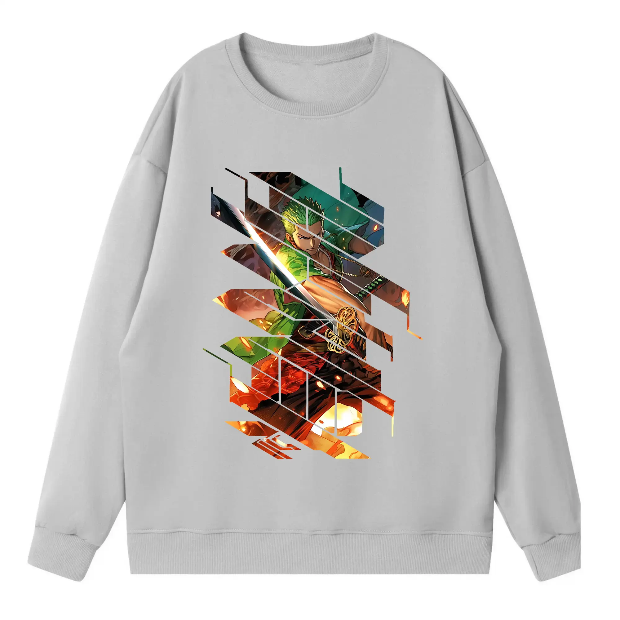 ワンピース グッズ ロロノア・ゾロ - 高品質 クルーネック スウェット ・ コットン59% ポリエステル41% ・ ユニセックス 長袖 トレーナー ・ カジュアル デイリー スポーツ 散歩用