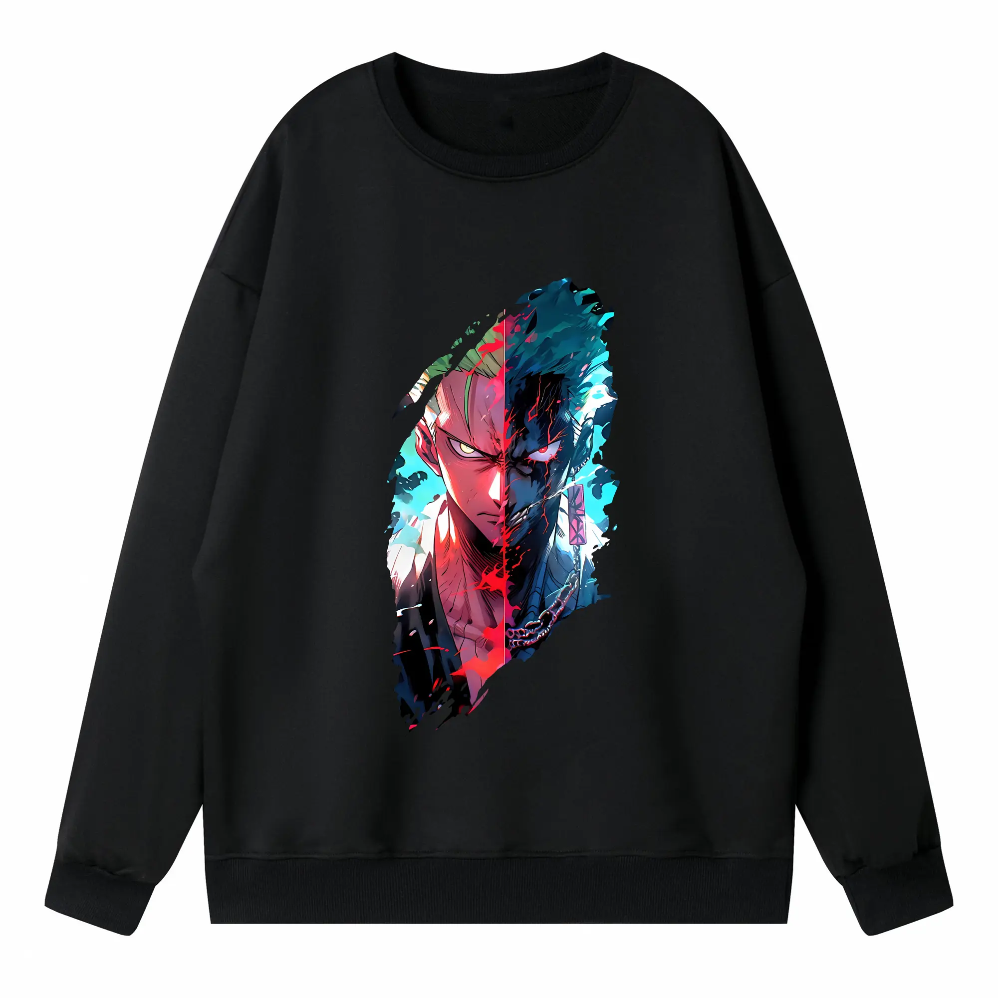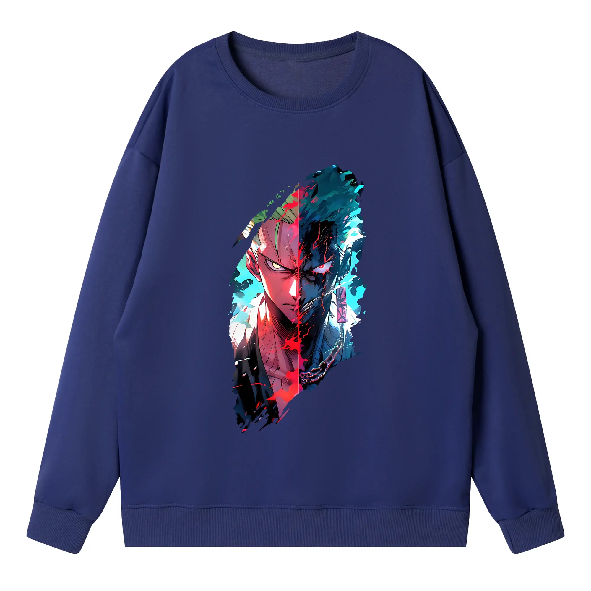ワンピース グッズ ロロノア・ゾロ - 高品質 クルーネック スウェット ・ コットン59% ポリエステル41% ・ ユニセックス 長袖 トレーナー ・ カジュアル デイリー スポーツ 散歩用