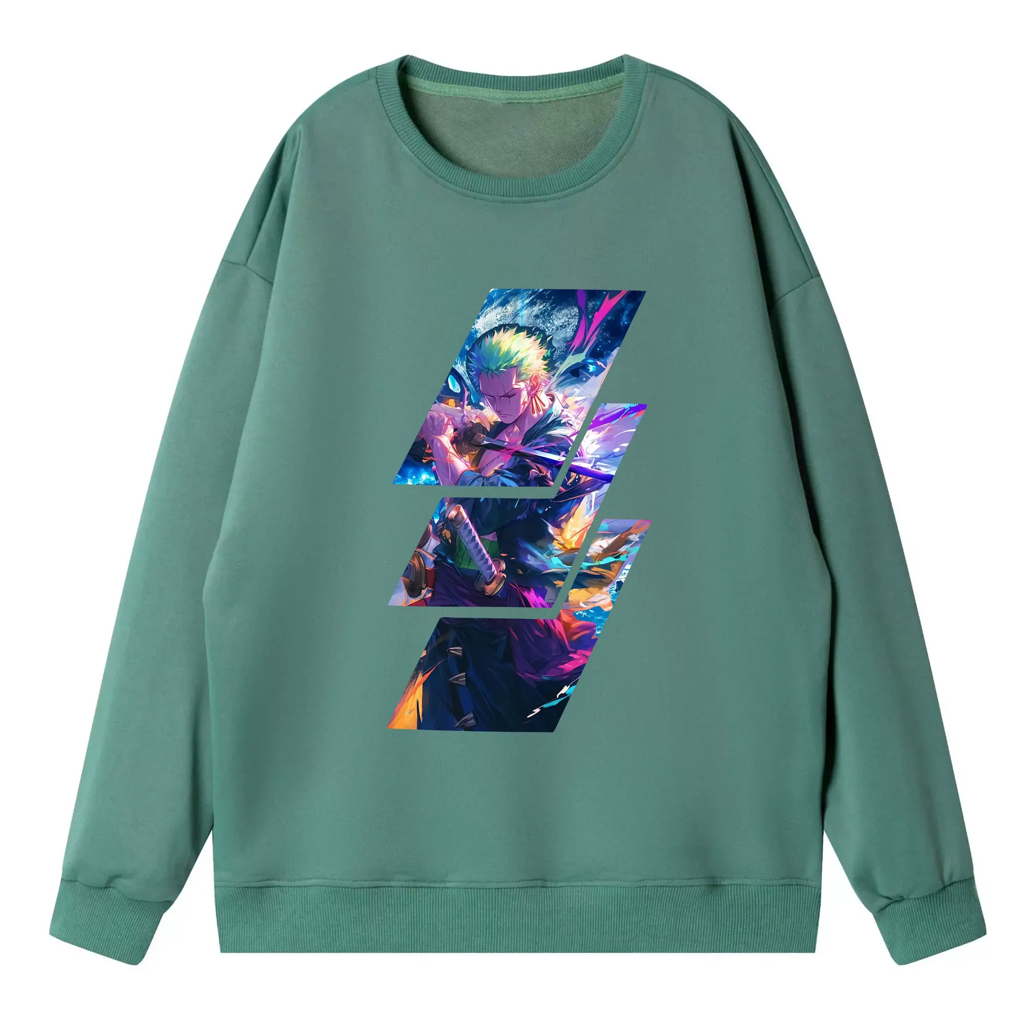 ワンピース グッズ ロロノア・ゾロ - 高品質 クルーネック スウェット ・ コットン59% ポリエステル41% ・ ユニセックス 長袖 トレーナー ・ カジュアル デイリー スポーツ 散歩用