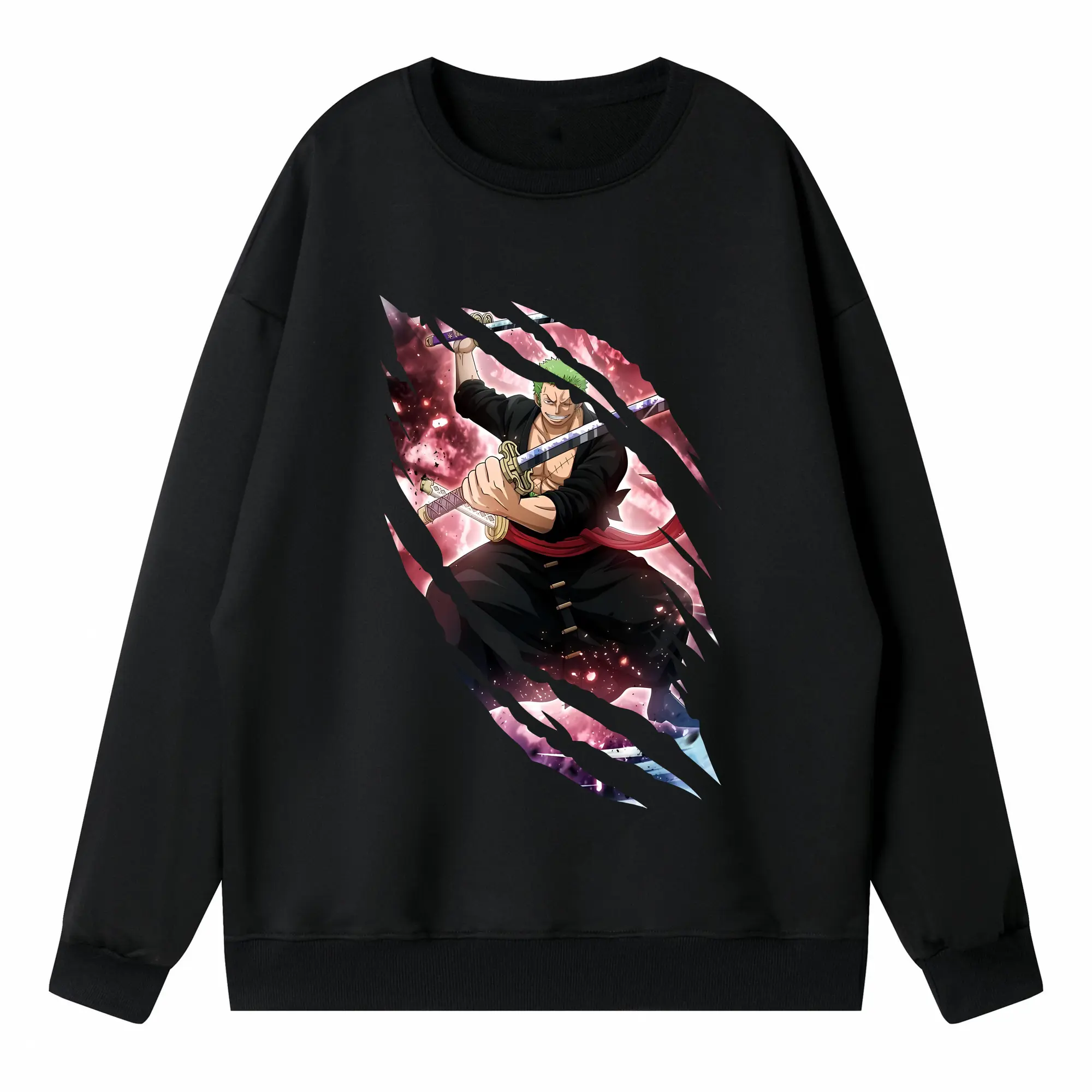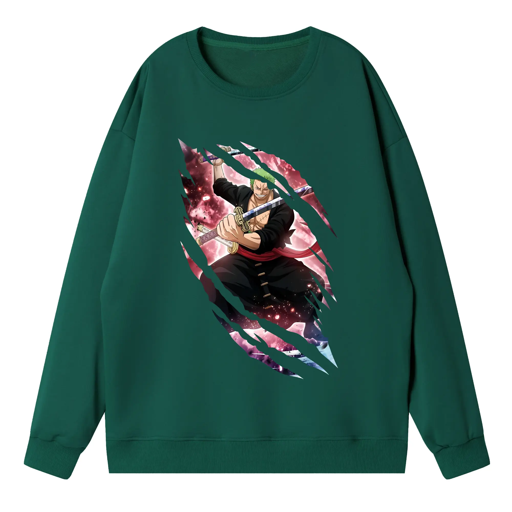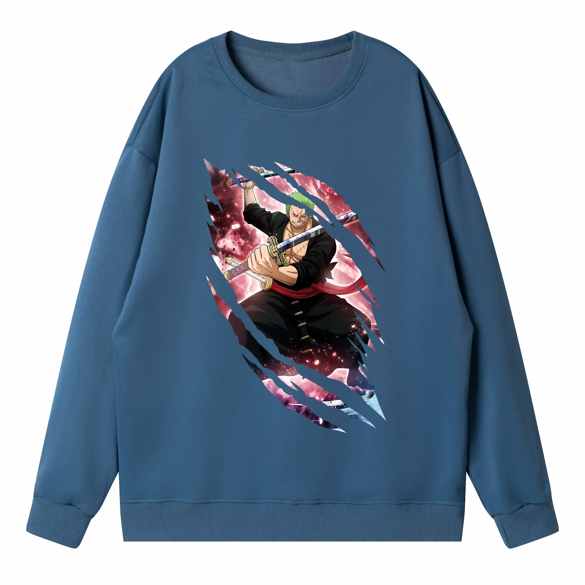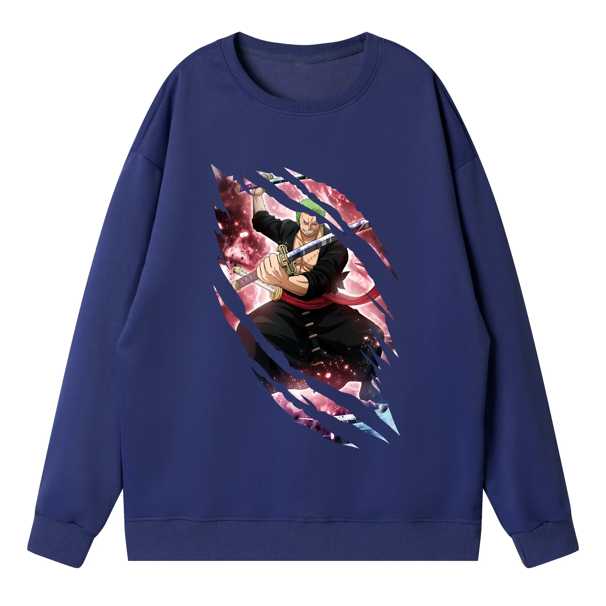 ワンピース グッズ ロロノア・ゾロ - 高品質 クルーネック スウェット ・ コットン59% ポリエステル41% ・ ユニセックス 長袖 トレーナー ・ カジュアル デイリー スポーツ 散歩用