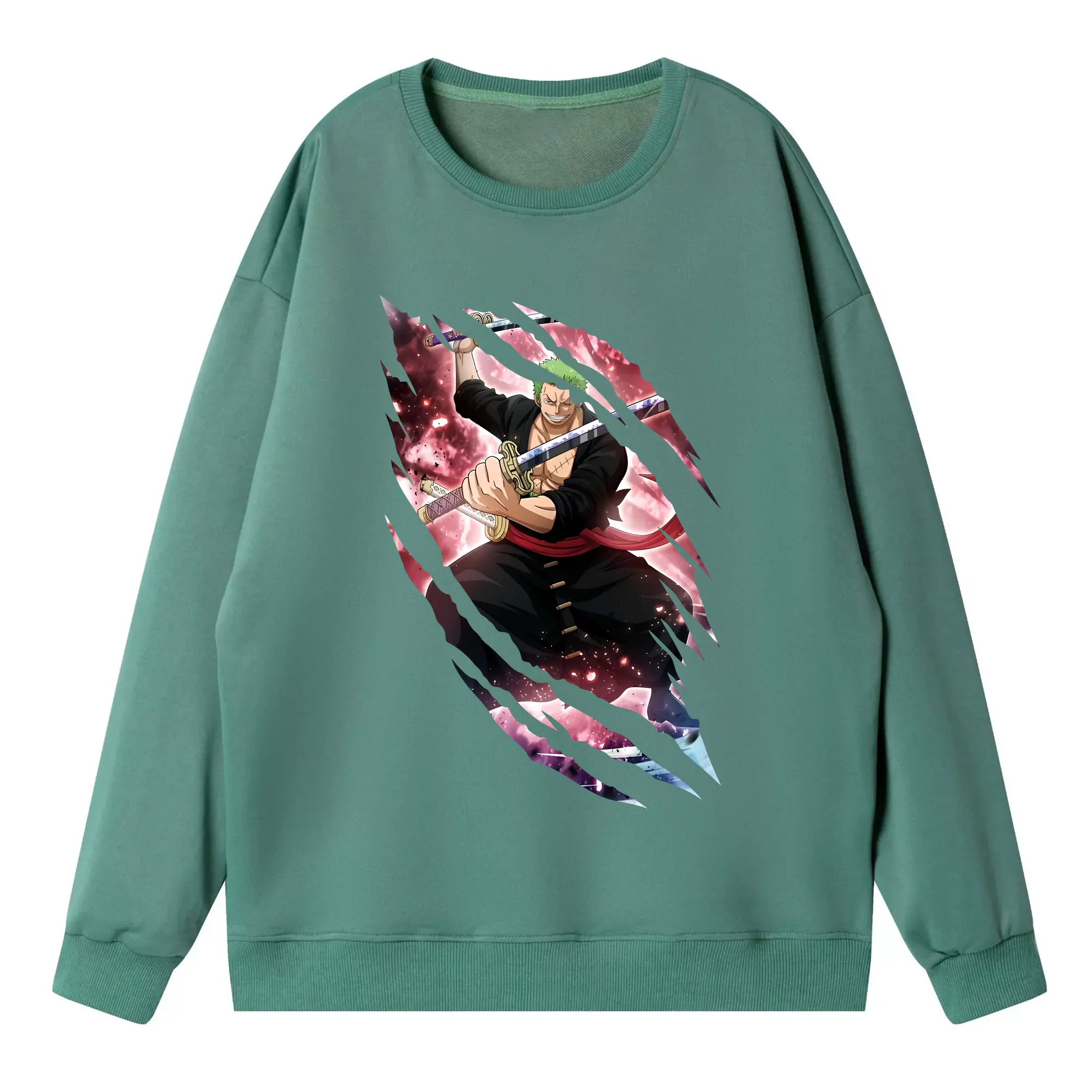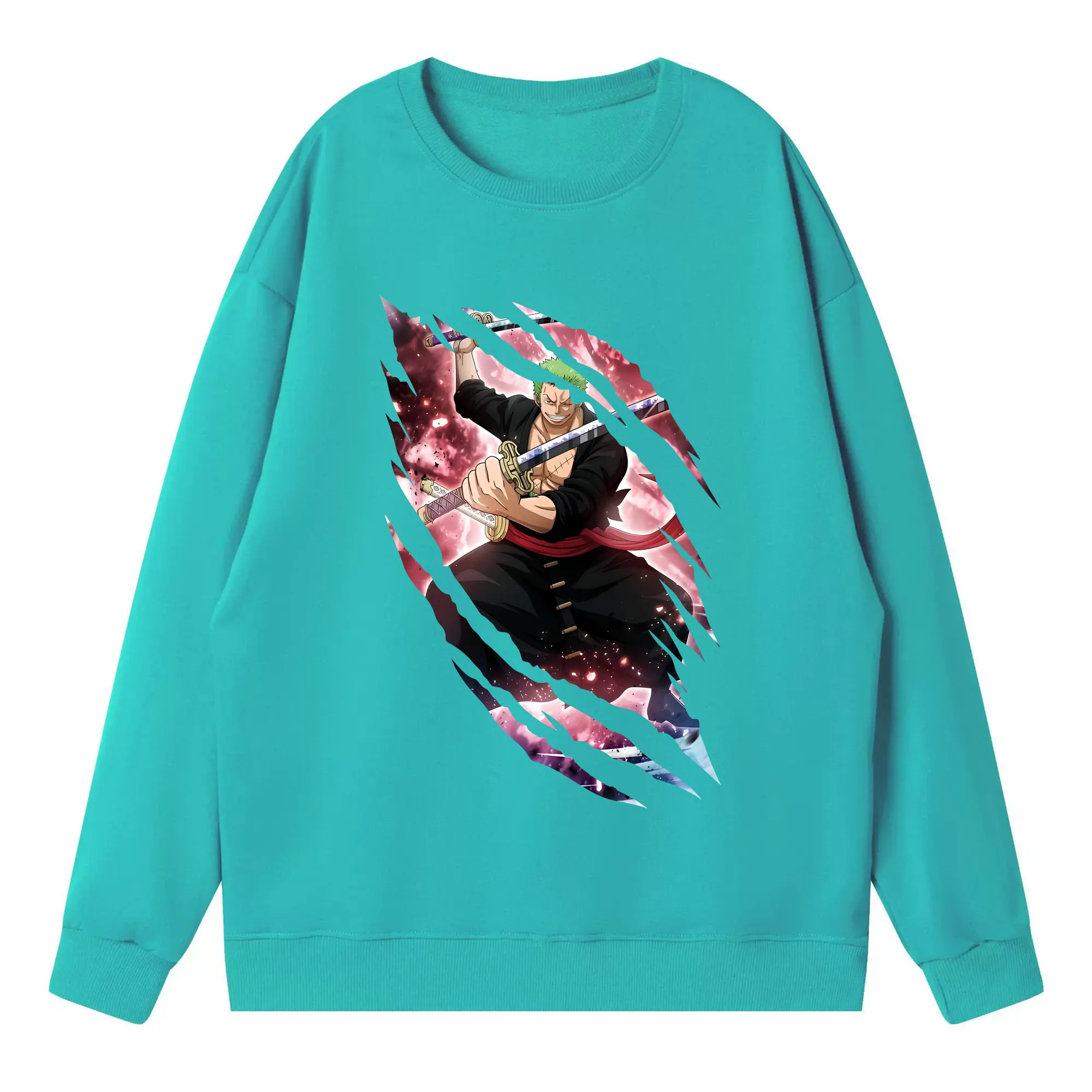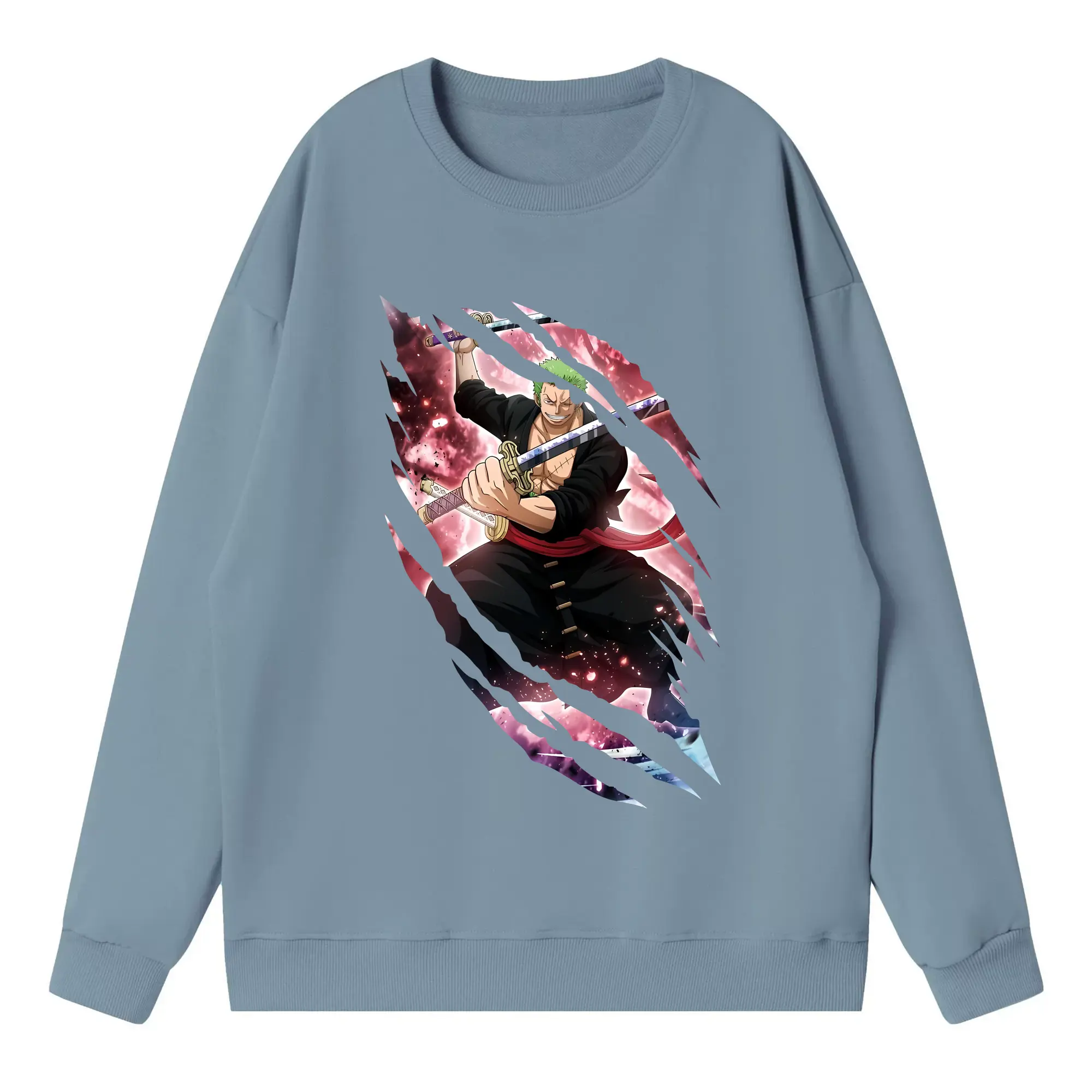 ワンピース グッズ ロロノア・ゾロ - 高品質 クルーネック スウェット ・ コットン59% ポリエステル41% ・ ユニセックス 長袖 トレーナー ・ カジュアル デイリー スポーツ 散歩用