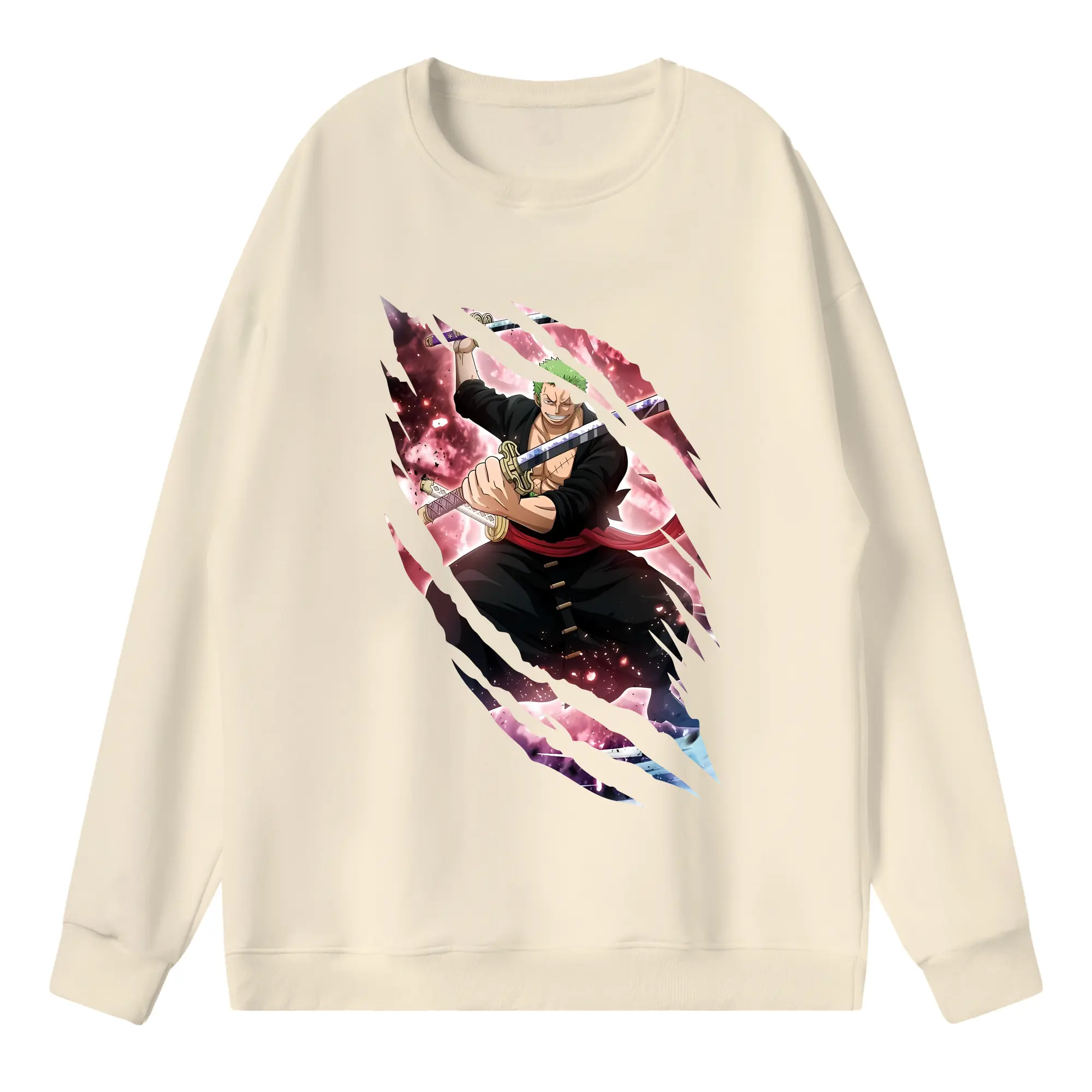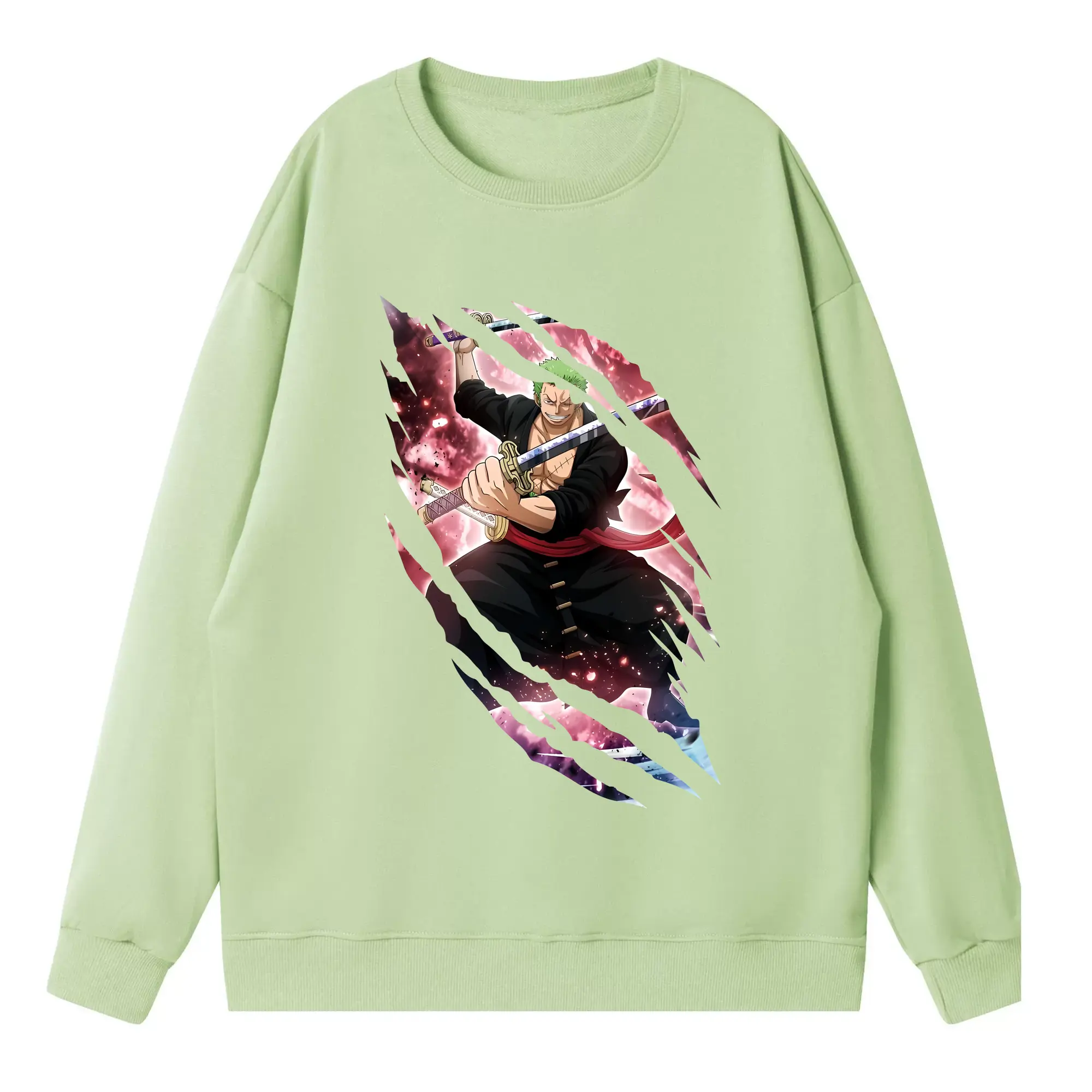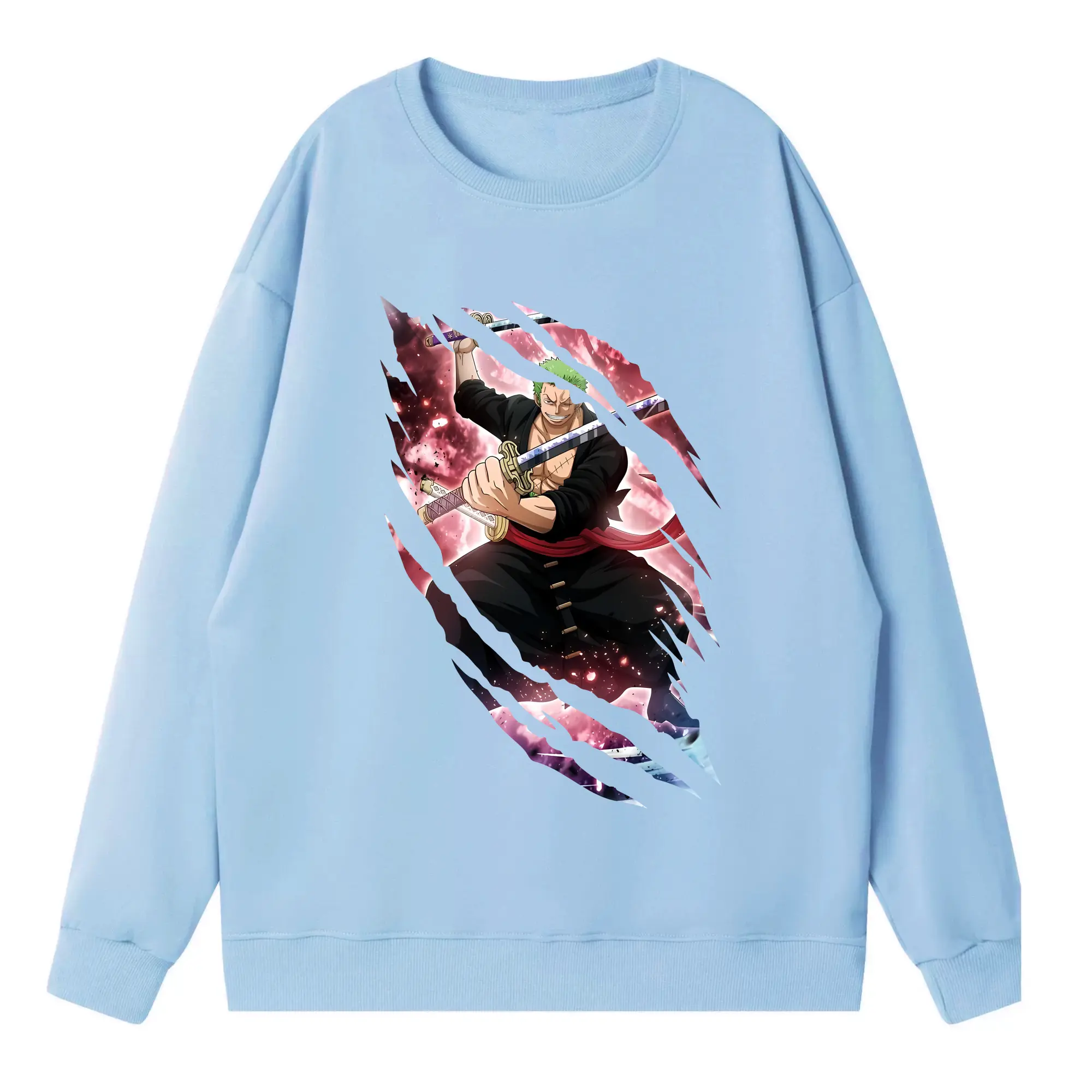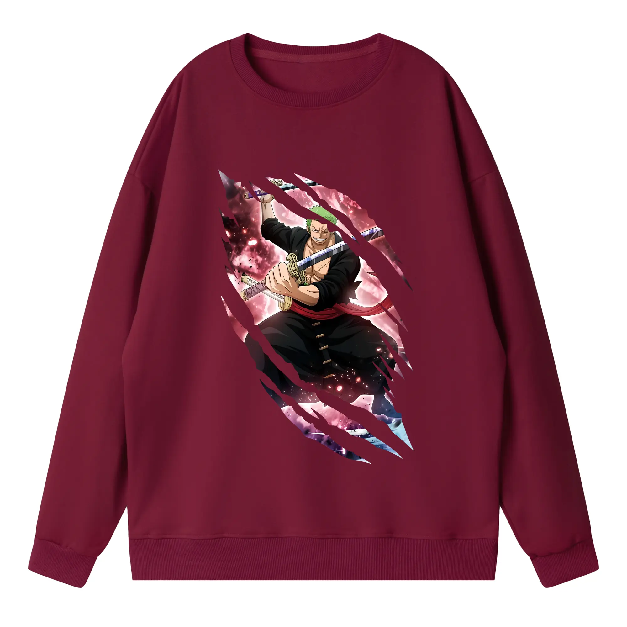 ワンピース グッズ ロロノア・ゾロ - 高品質 クルーネック スウェット ・ コットン59% ポリエステル41% ・ ユニセックス 長袖 トレーナー ・ カジュアル デイリー スポーツ 散歩用