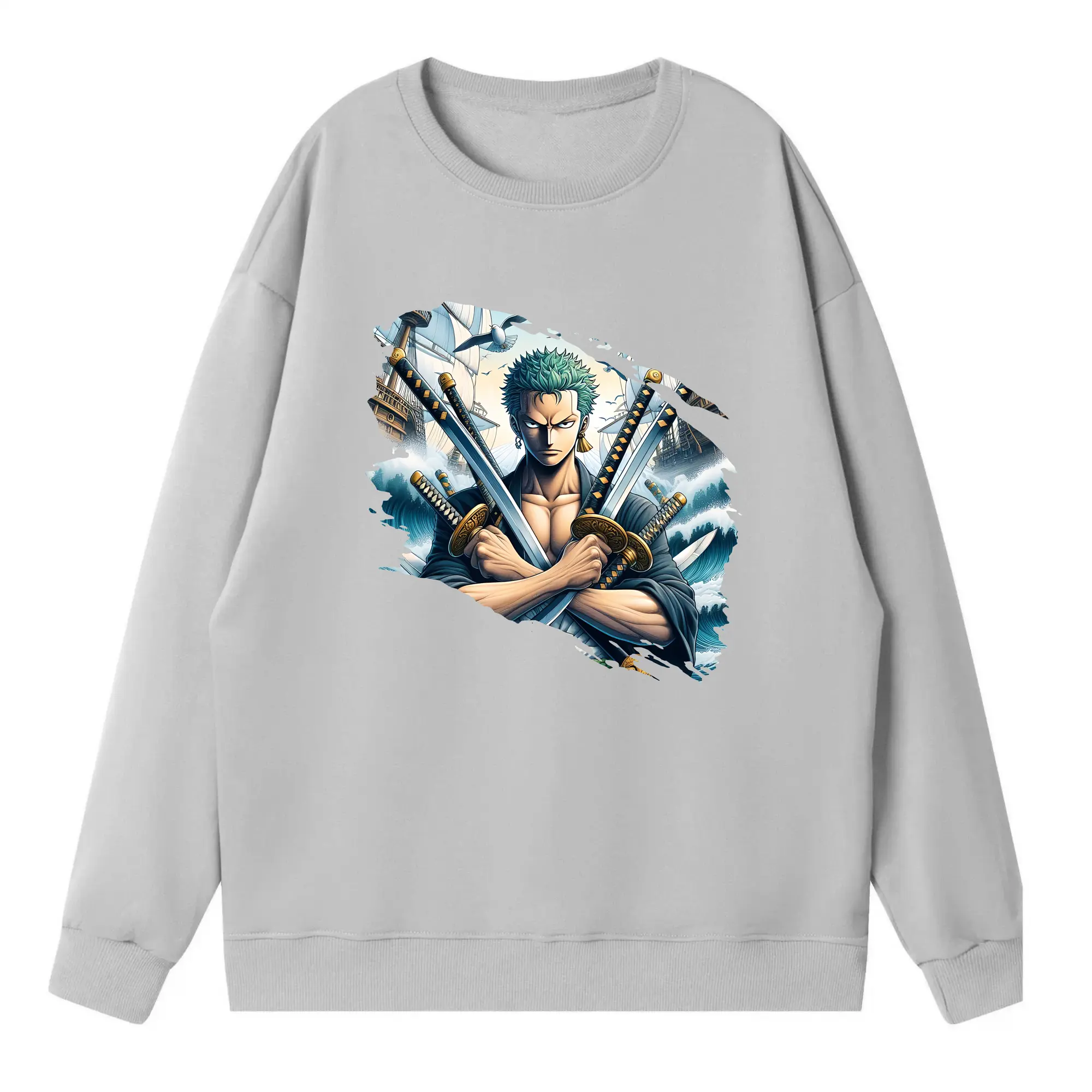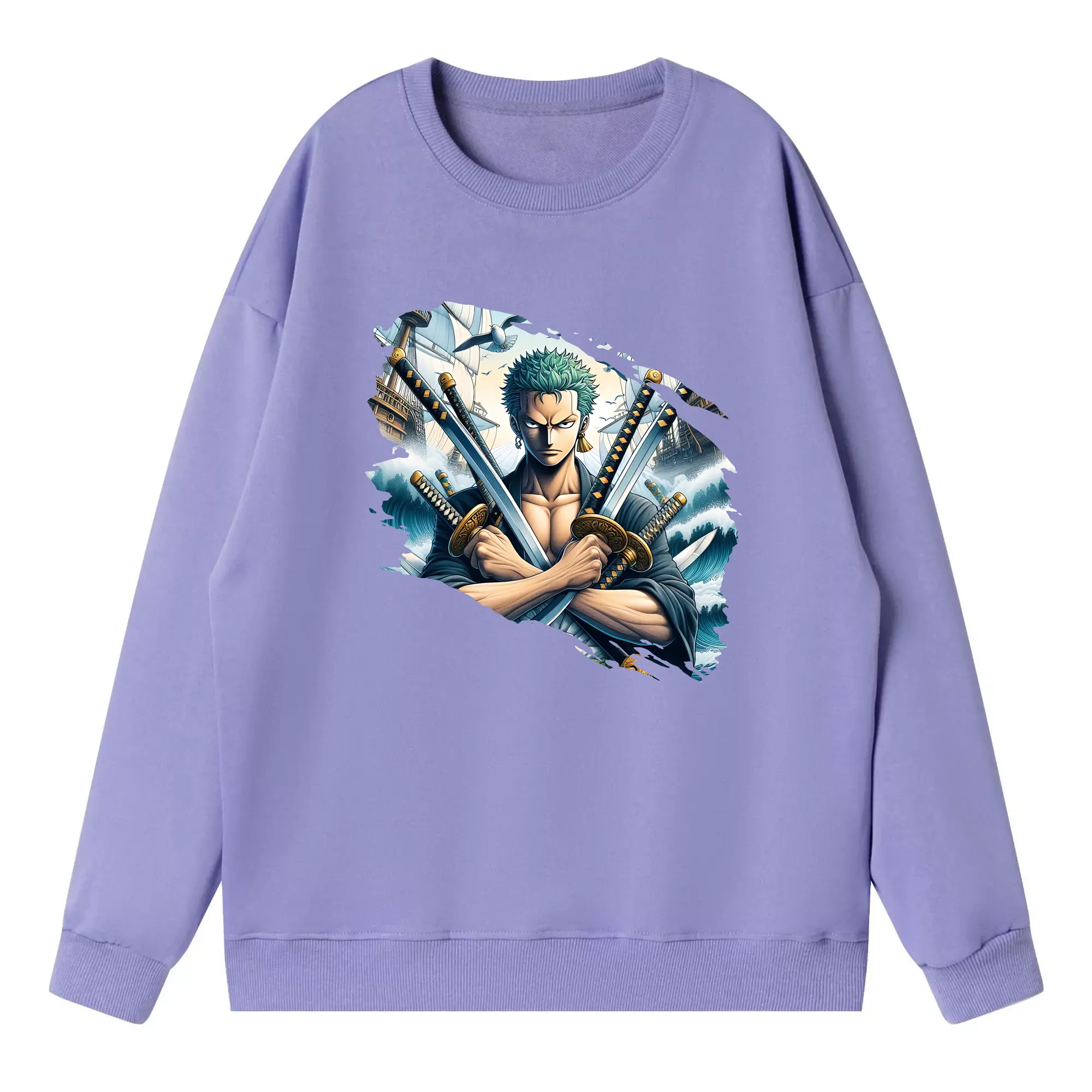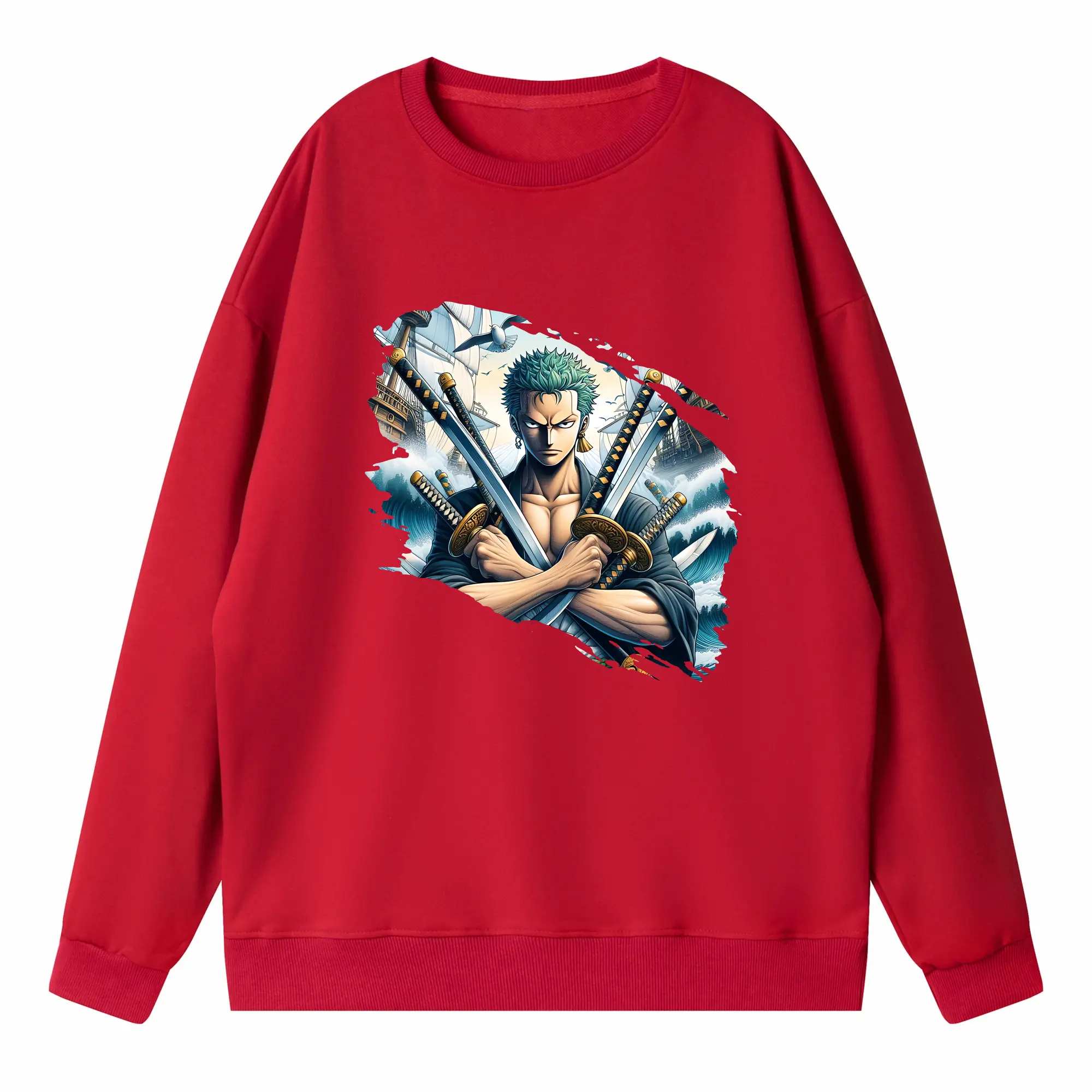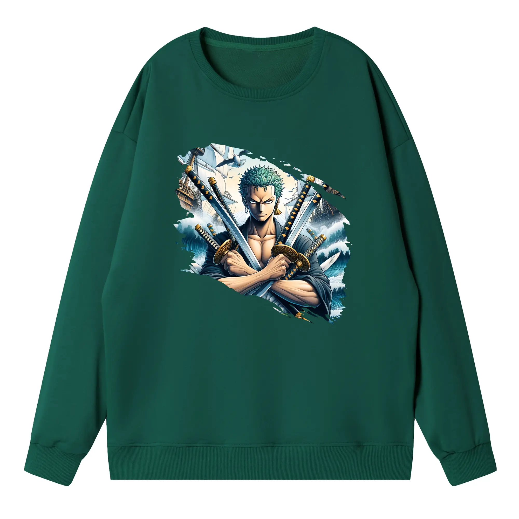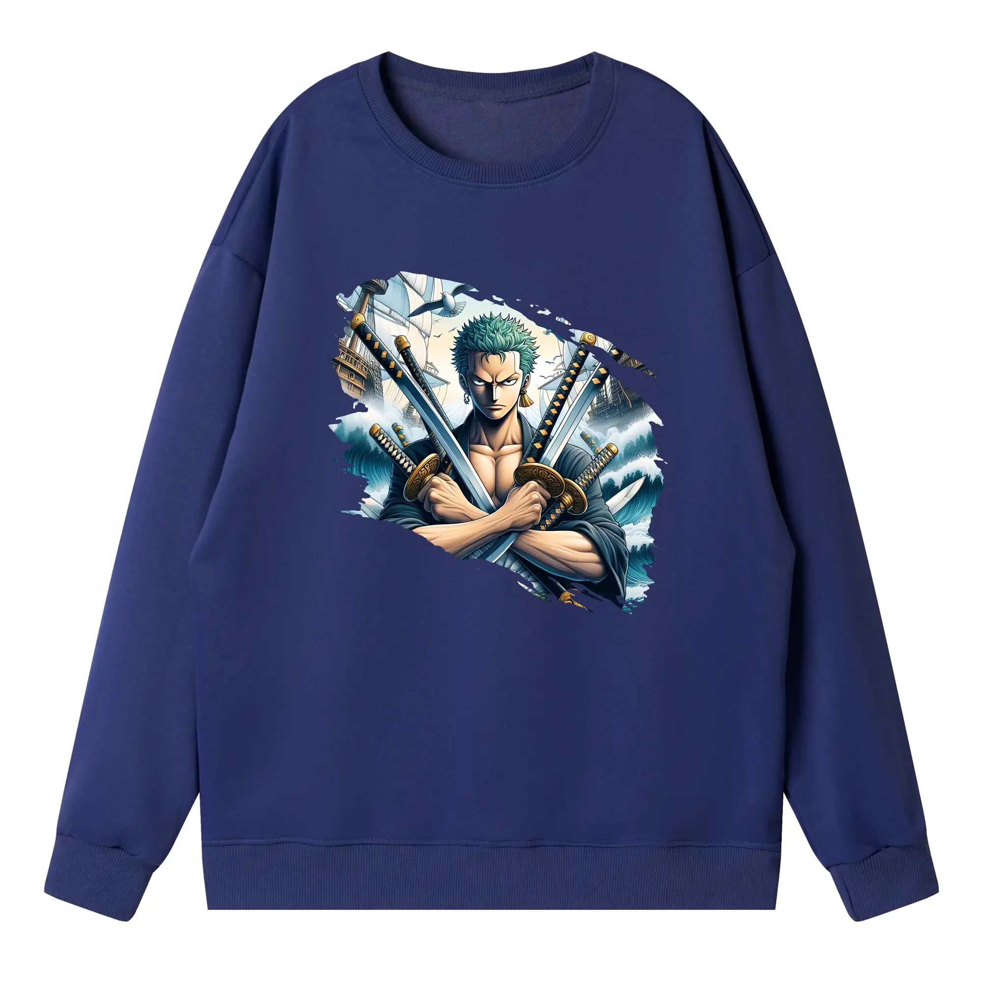 ワンピース グッズ ロロノア・ゾロ - 高品質 クルーネック スウェット ・ コットン59% ポリエステル41% ・ ユニセックス 長袖 トレーナー ・ カジュアル デイリー スポーツ 散歩用