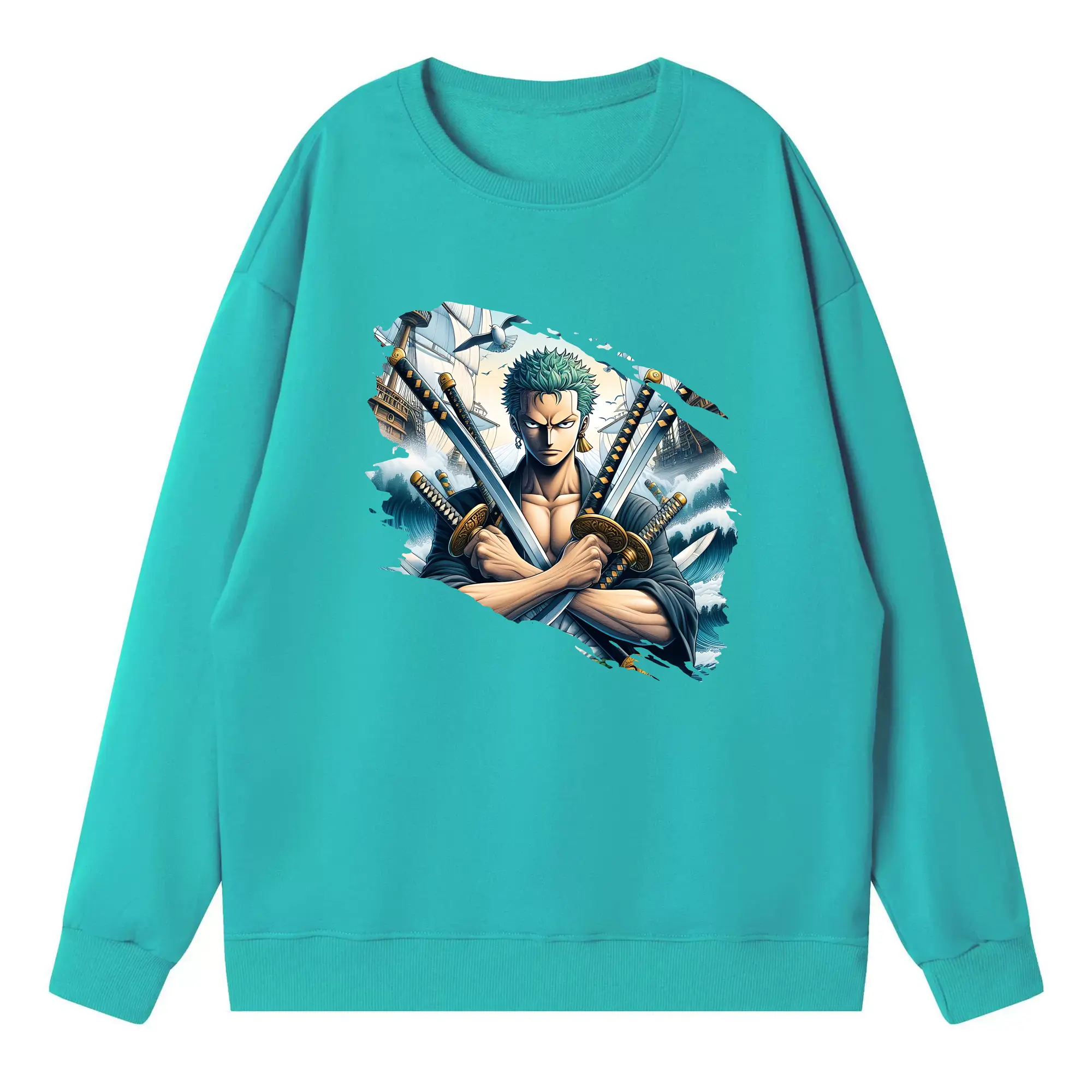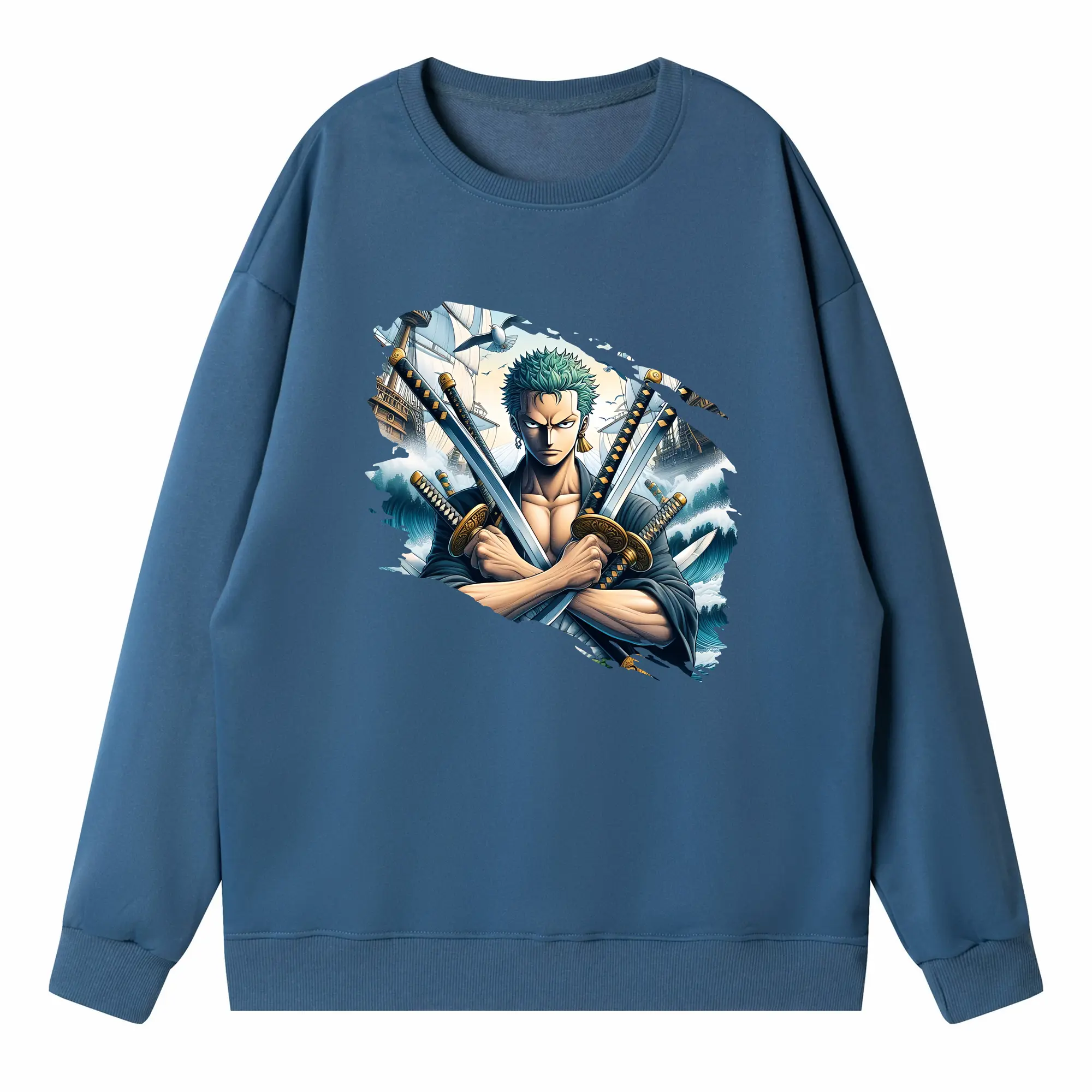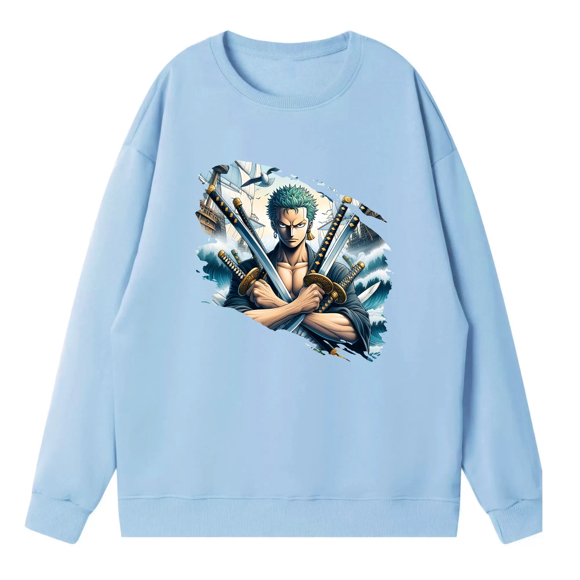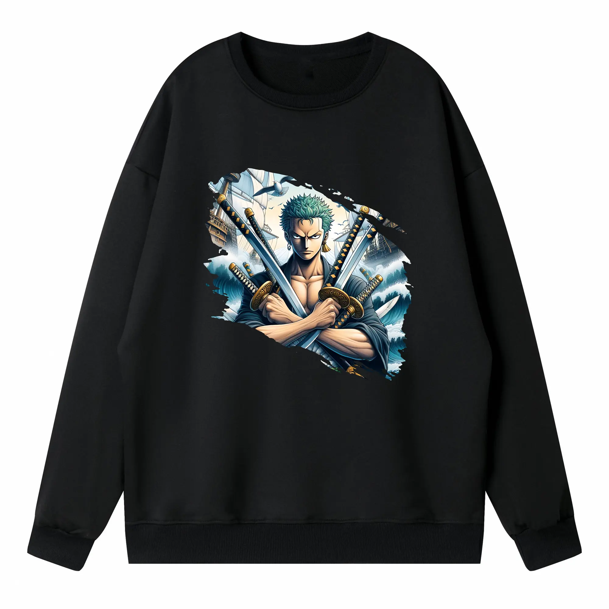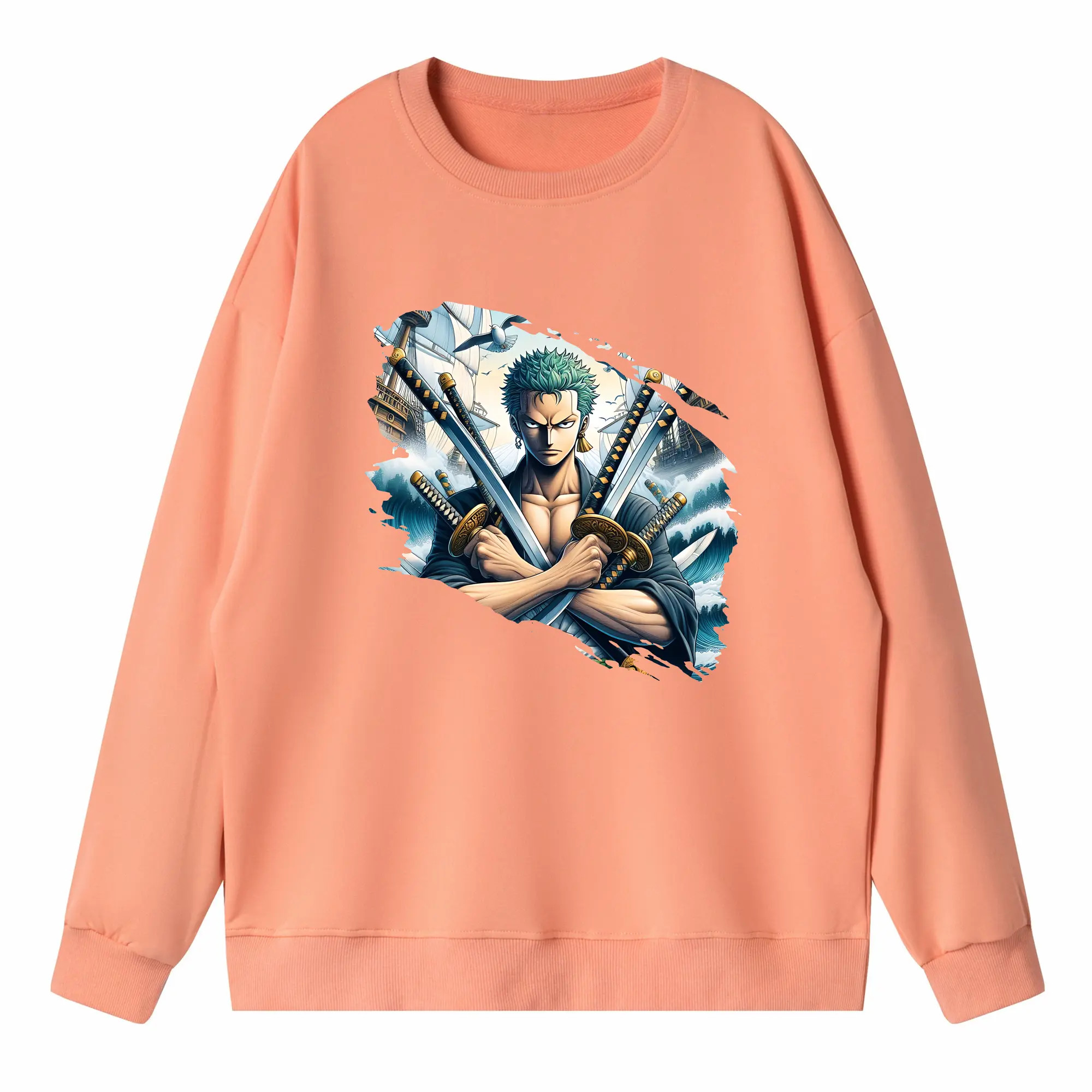 ワンピース グッズ ロロノア・ゾロ - 高品質 クルーネック スウェット ・ コットン59% ポリエステル41% ・ ユニセックス 長袖 トレーナー ・ カジュアル デイリー スポーツ 散歩用