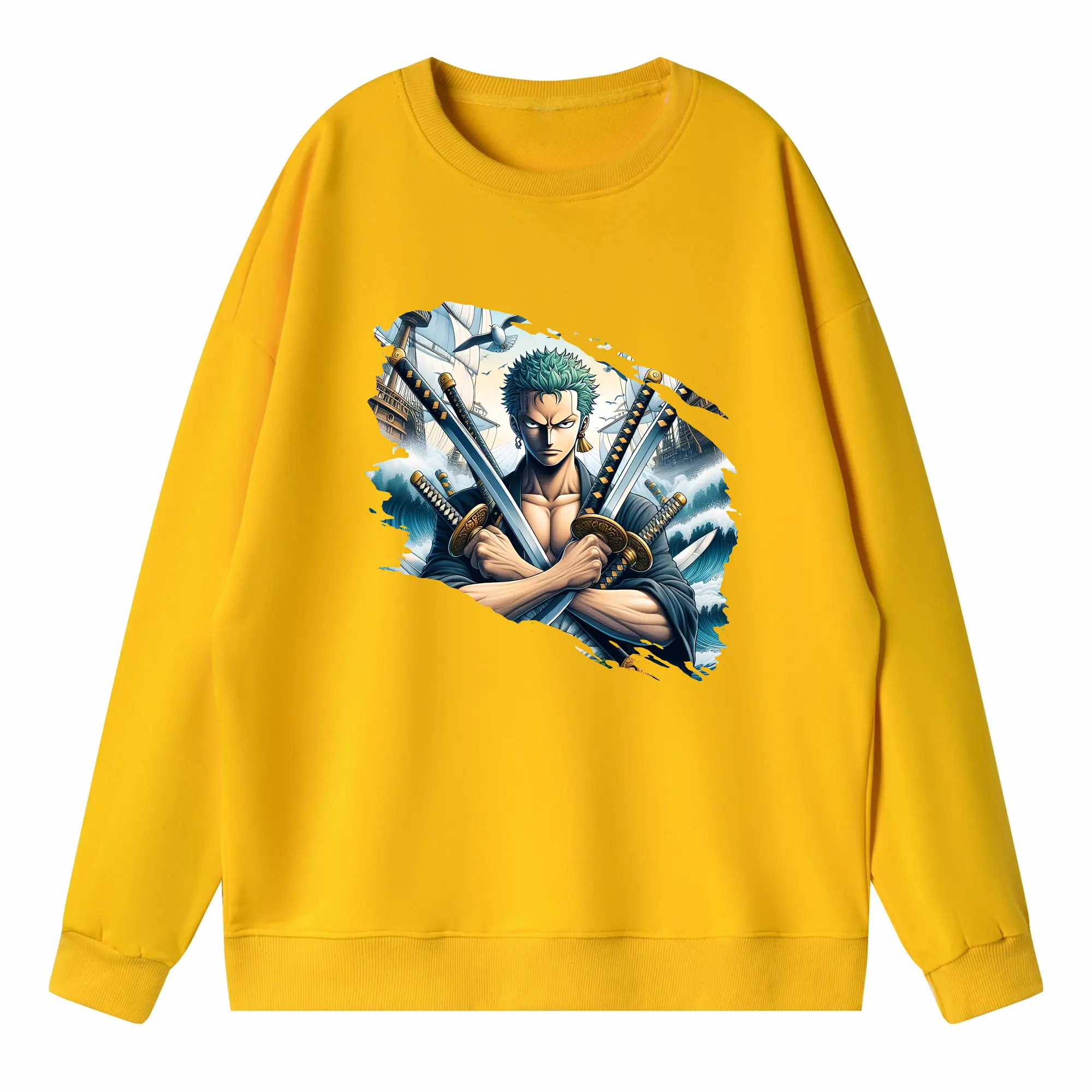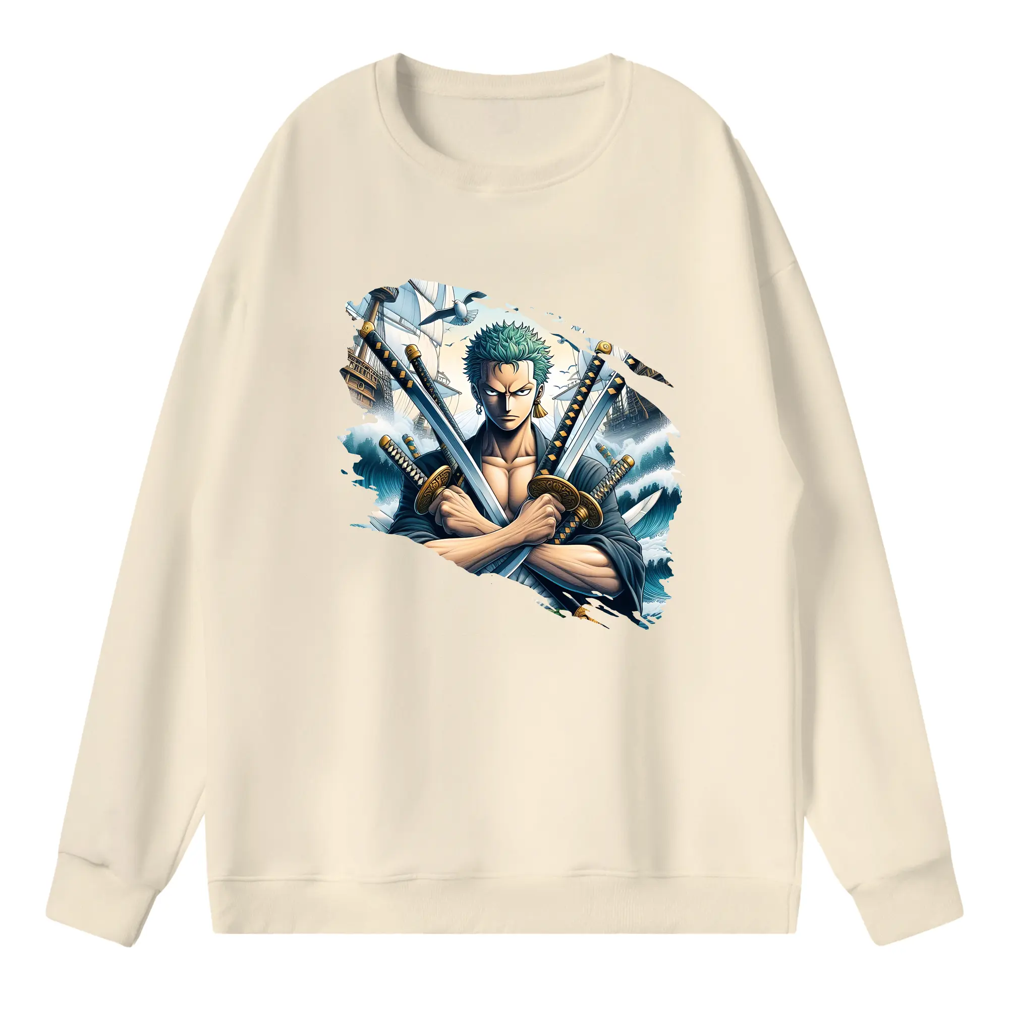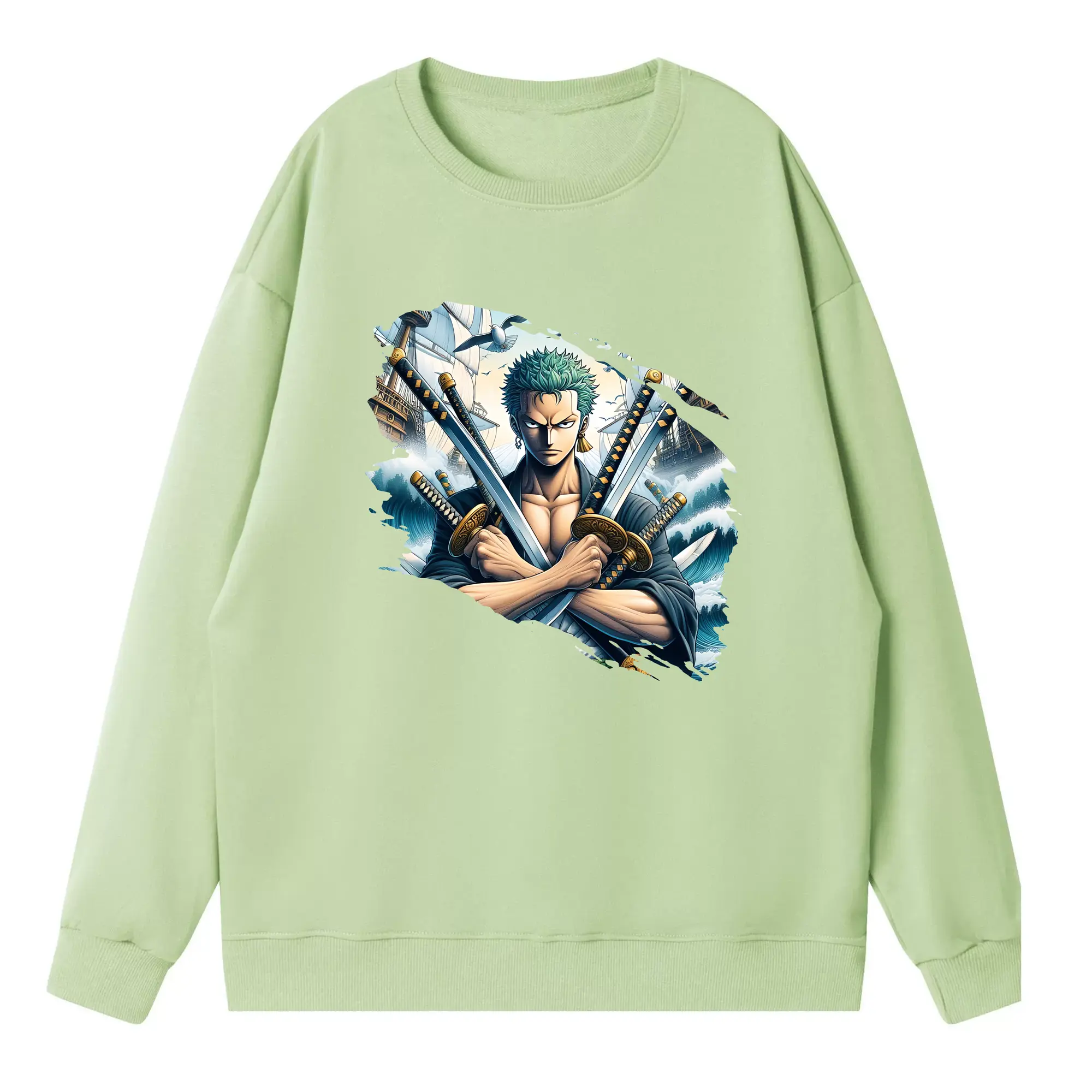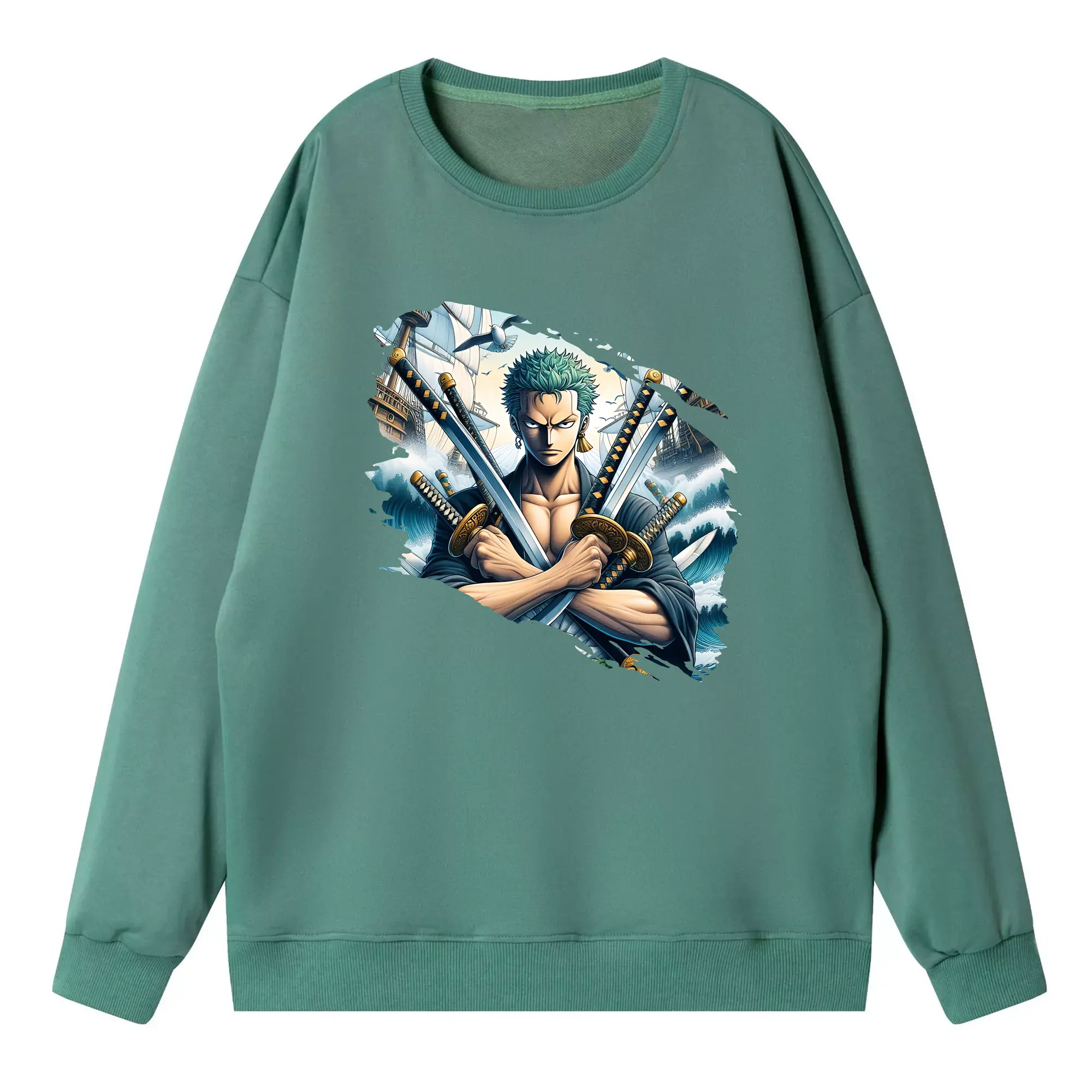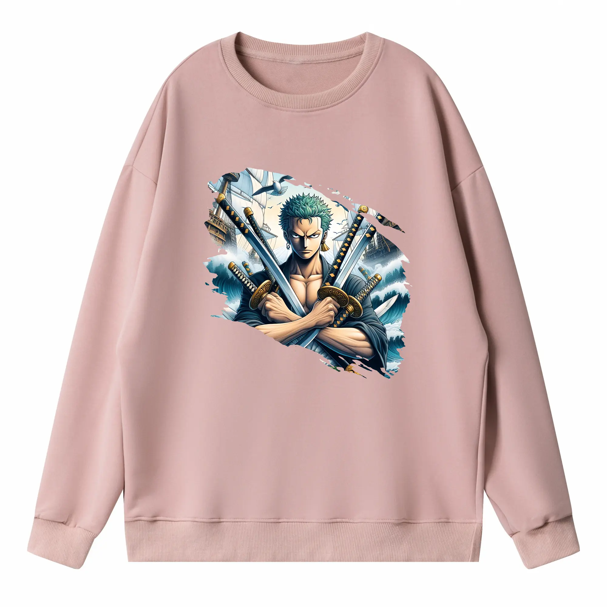 ワンピース グッズ ロロノア・ゾロ - 高品質 クルーネック スウェット ・ コットン59% ポリエステル41% ・ ユニセックス 長袖 トレーナー ・ カジュアル デイリー スポーツ 散歩用