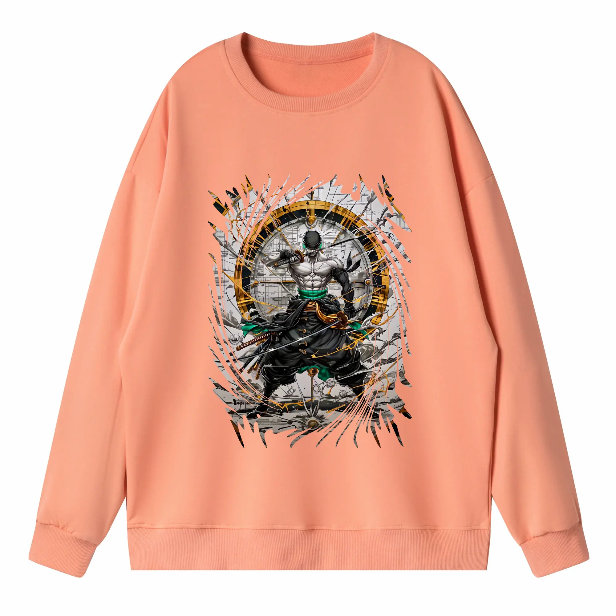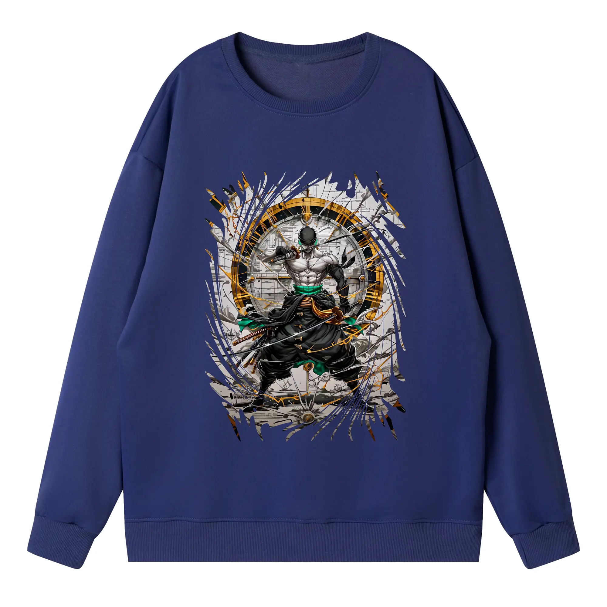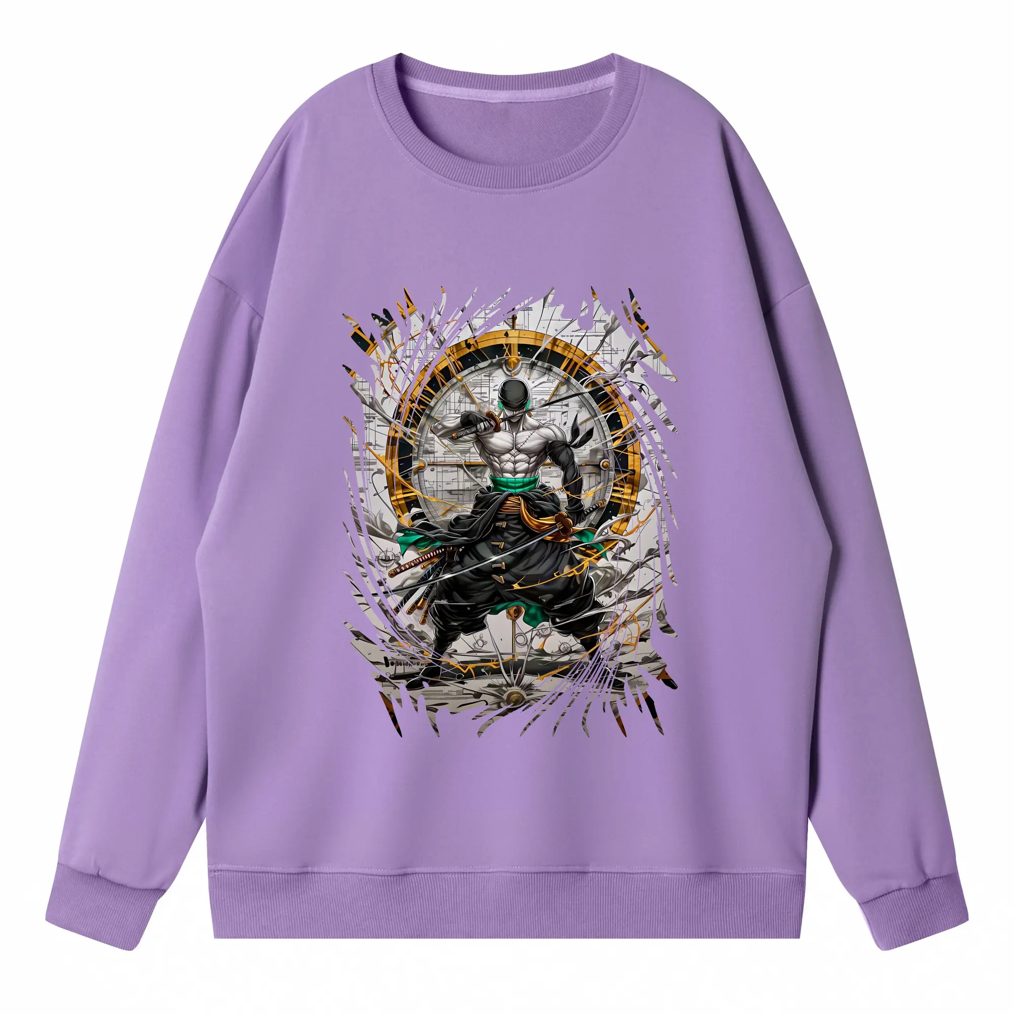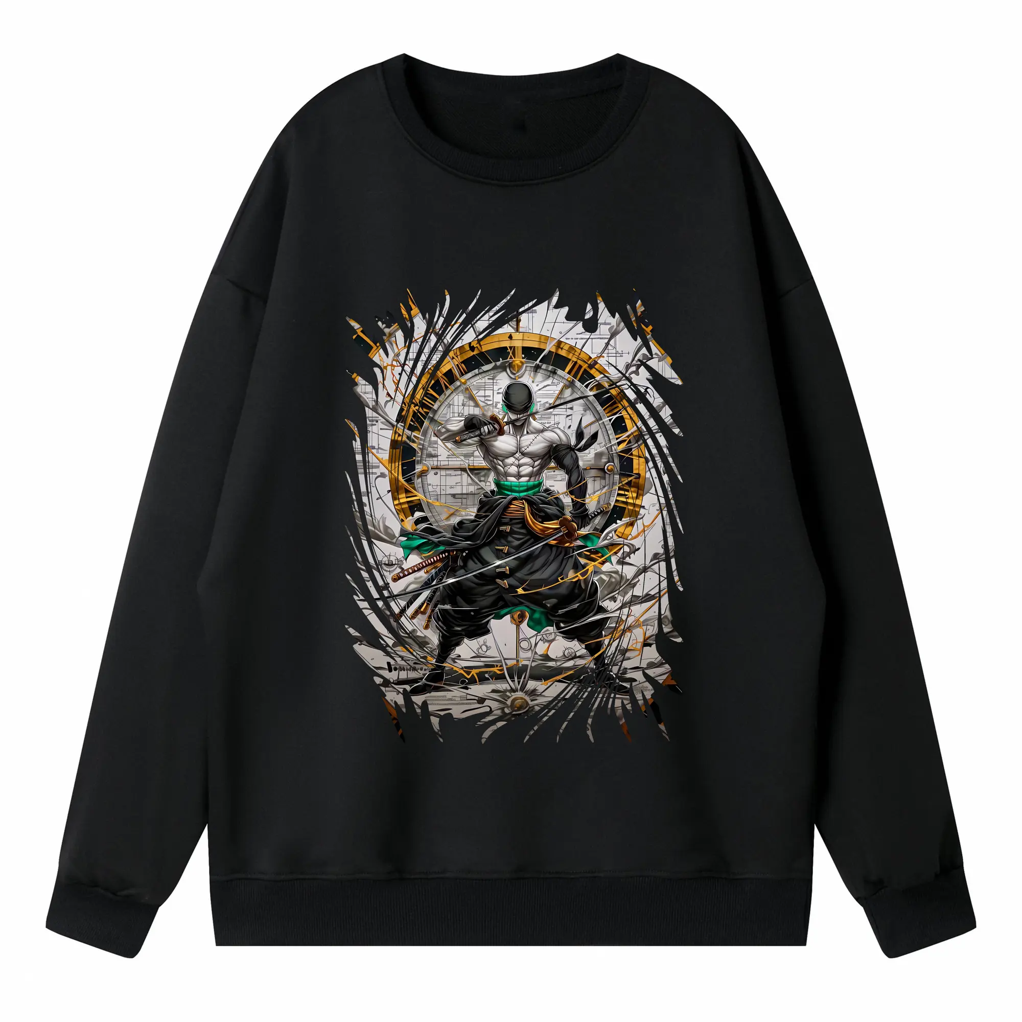 ワンピース グッズ ロロノア・ゾロ - 高品質 クルーネック スウェット ・ コットン59% ポリエステル41% ・ ユニセックス 長袖 トレーナー ・ カジュアル デイリー スポーツ 散歩用
