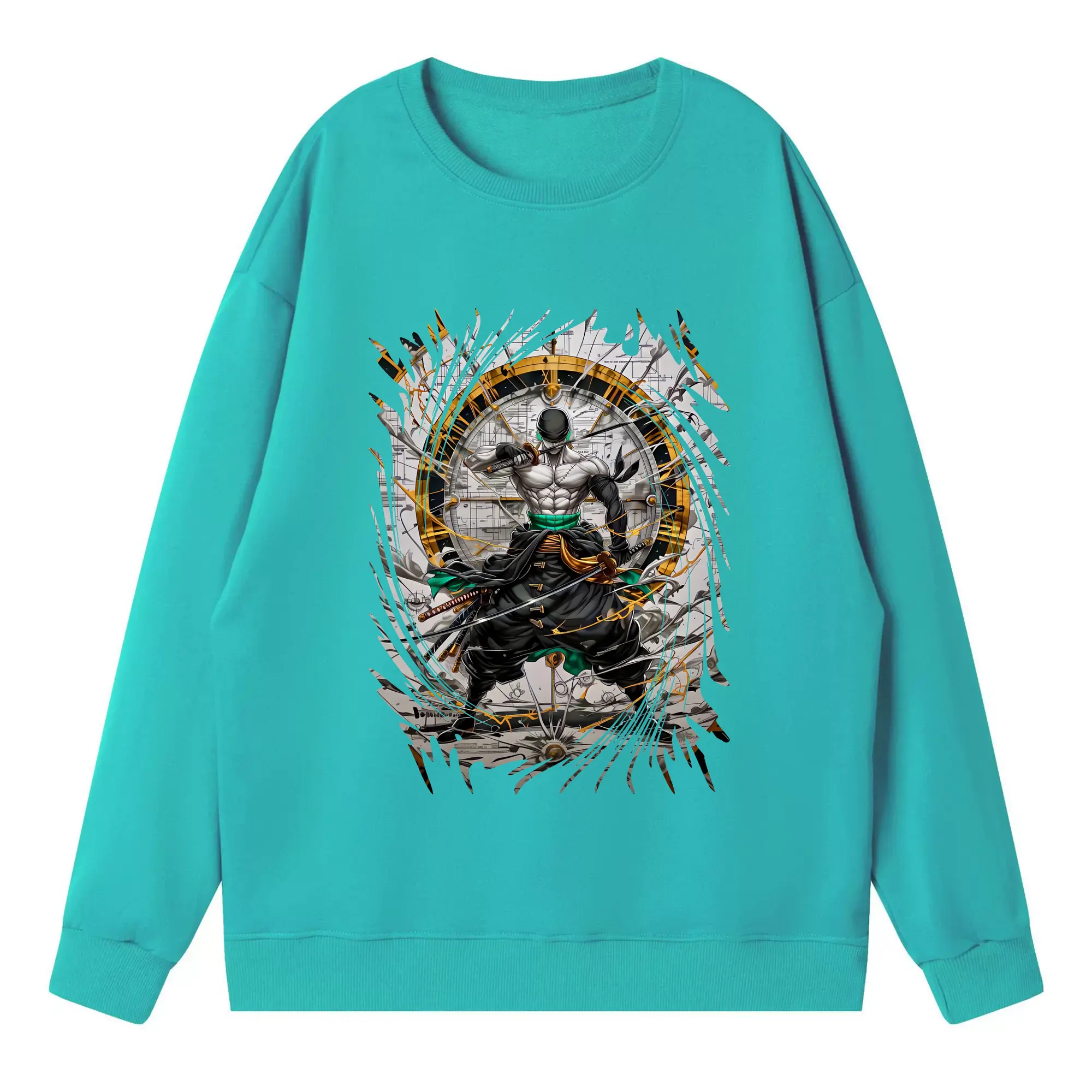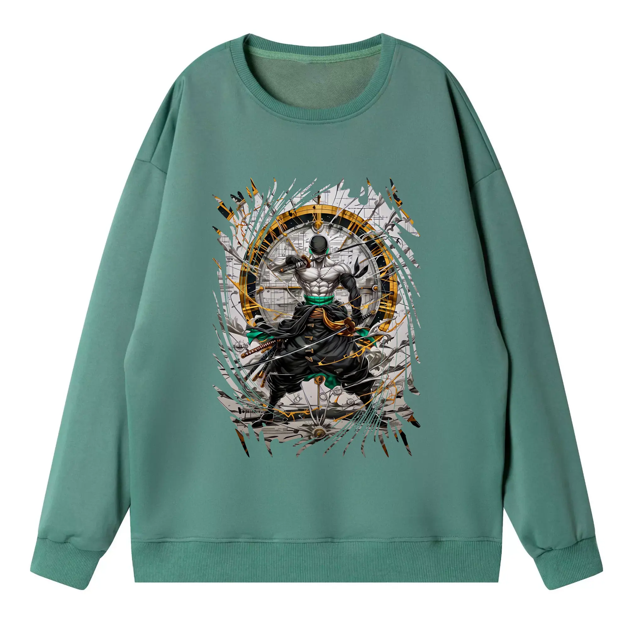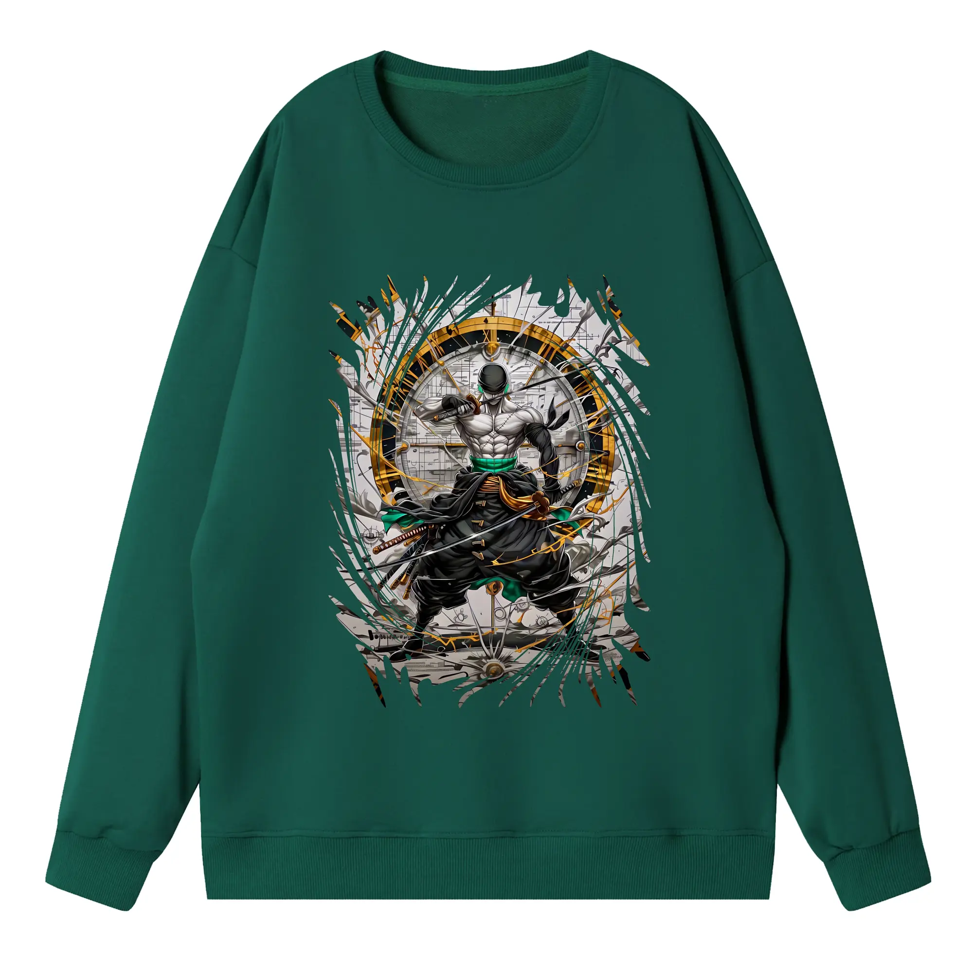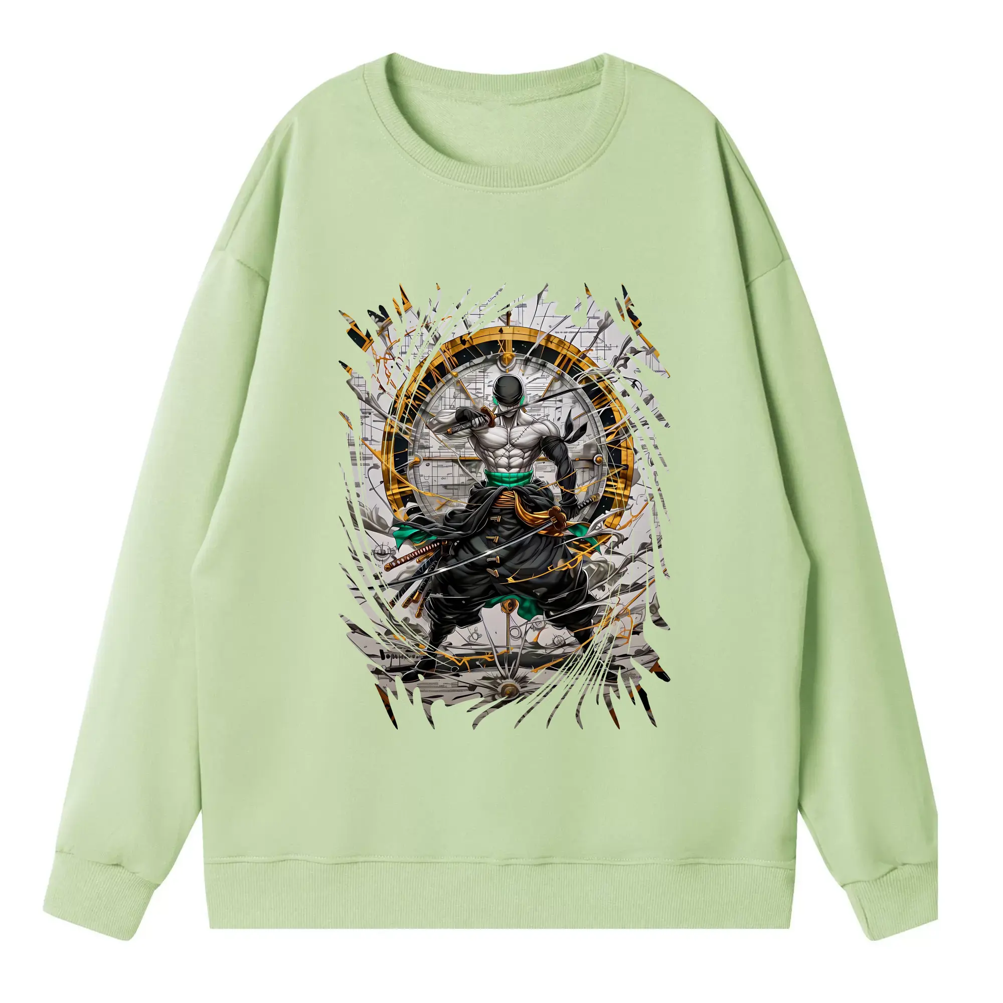 ワンピース グッズ ロロノア・ゾロ - 高品質 クルーネック スウェット ・ コットン59% ポリエステル41% ・ ユニセックス 長袖 トレーナー ・ カジュアル デイリー スポーツ 散歩用