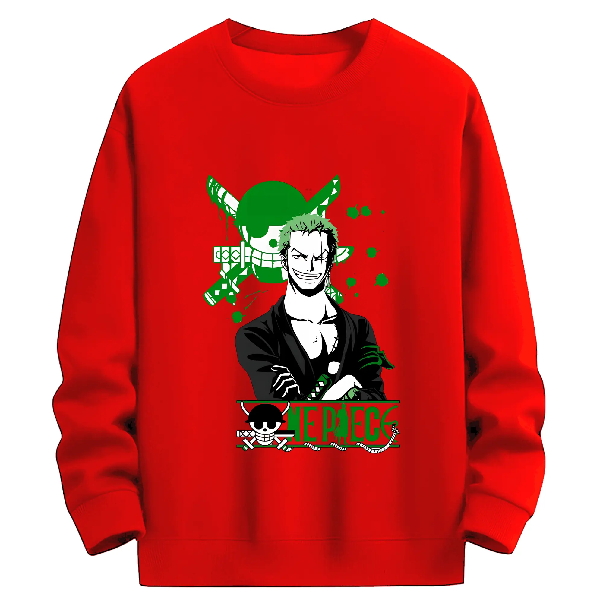 ワンピース グッズ ロロノア・ゾロ - 高品質 クルーネック スウェット ・ コットン59% ポリエステル41% ・ ユニセックス 長袖 トレーナー ・ カジュアル デイリー スポーツ 散歩用