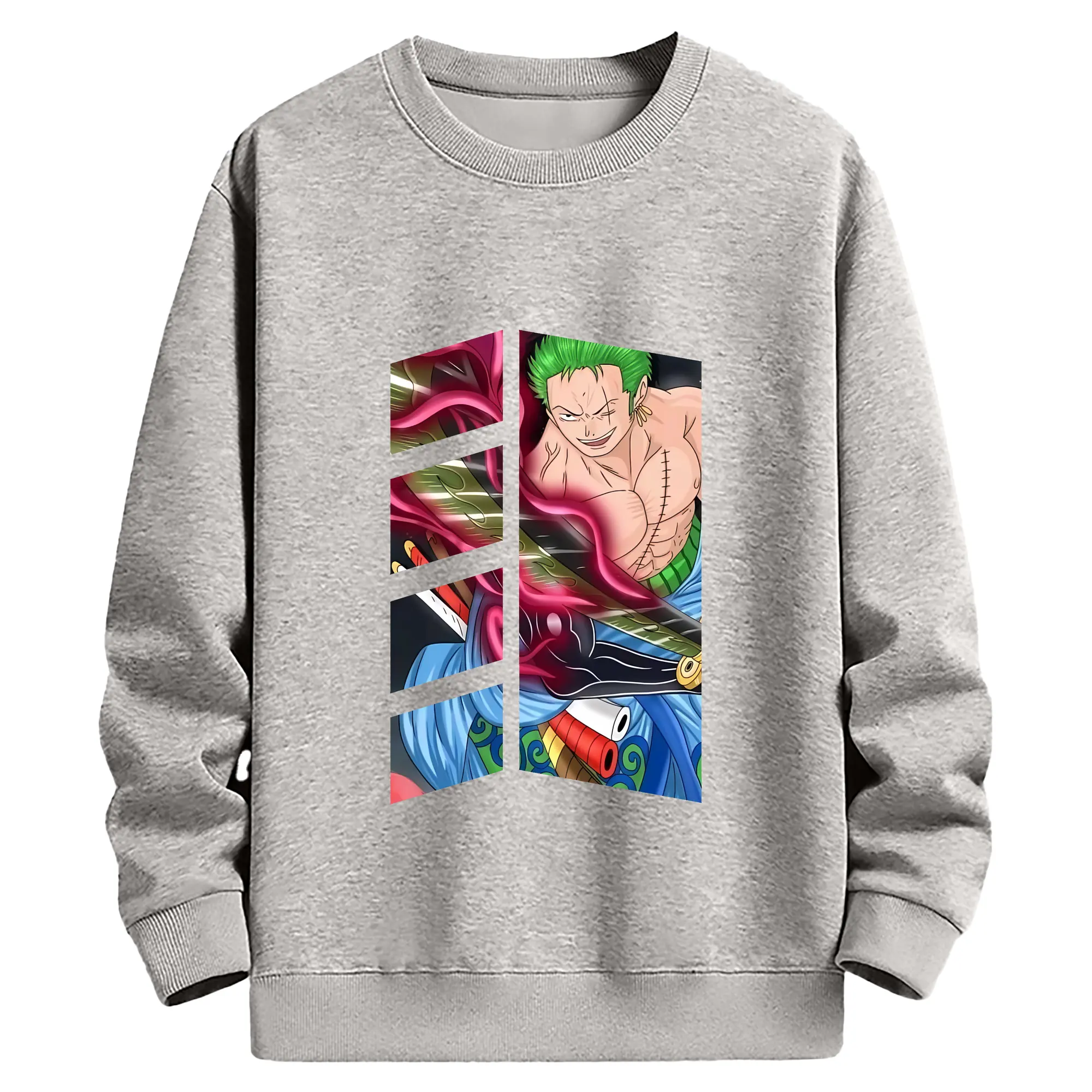 ワンピース グッズ ロロノア・ゾロ - 高品質 クルーネック スウェット ・ コットン59% ポリエステル41% ・ ユニセックス 長袖 トレーナー ・ カジュアル デイリー スポーツ 散歩用