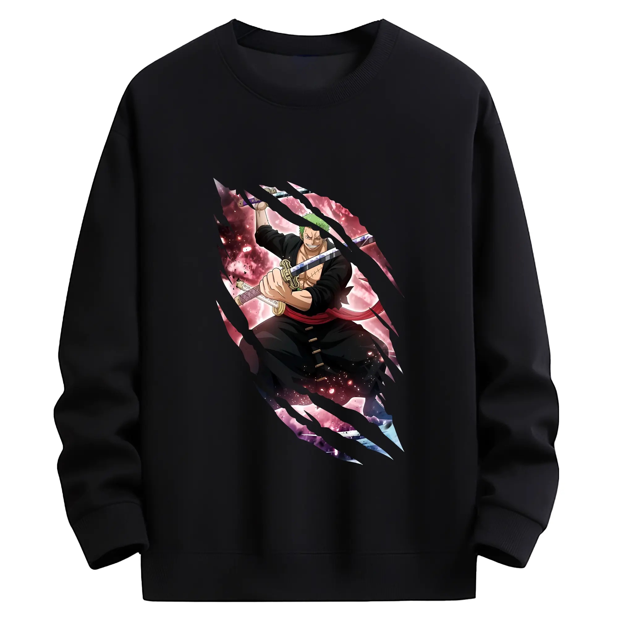 ワンピース グッズ ロロノア・ゾロ - 高品質 クルーネック スウェット ・ コットン59% ポリエステル41% ・ ユニセックス 長袖 トレーナー ・ カジュアル デイリー スポーツ 散歩用
