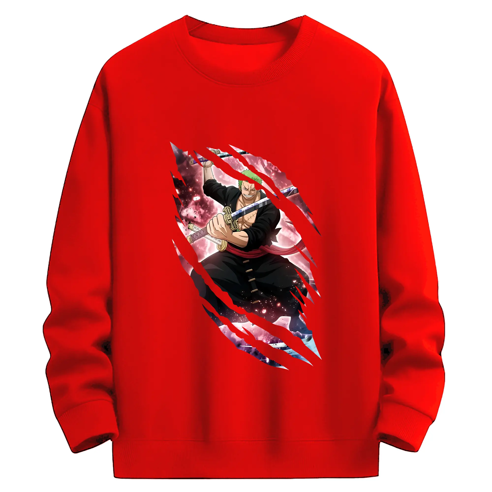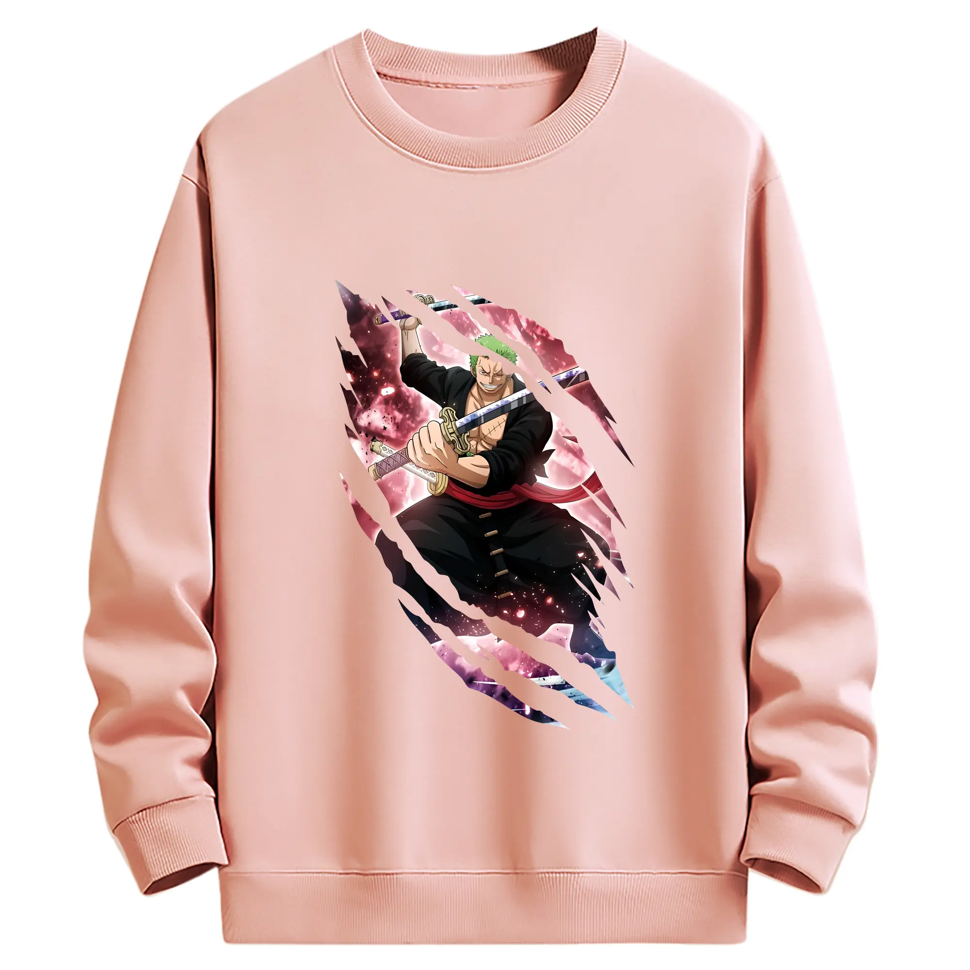ワンピース グッズ ロロノア・ゾロ - 薄手 クルーネック スウェット 裏毛260g · ポリエステル 春秋向け カジュアル 男女兼用 · トレーナー デイリー スポーツ 散歩に最適