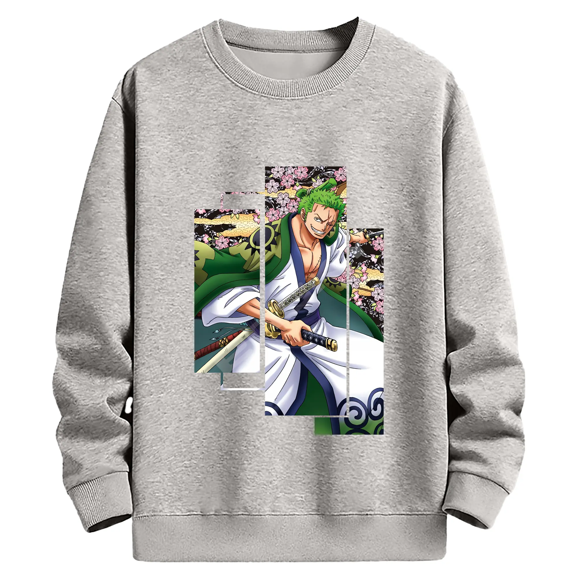 ワンピース グッズ ロロノア・ゾロ - 高品質 クルーネック スウェット ・ コットン59% ポリエステル41% ・ ユニセックス 長袖 トレーナー ・ カジュアル デイリー スポーツ 散歩用