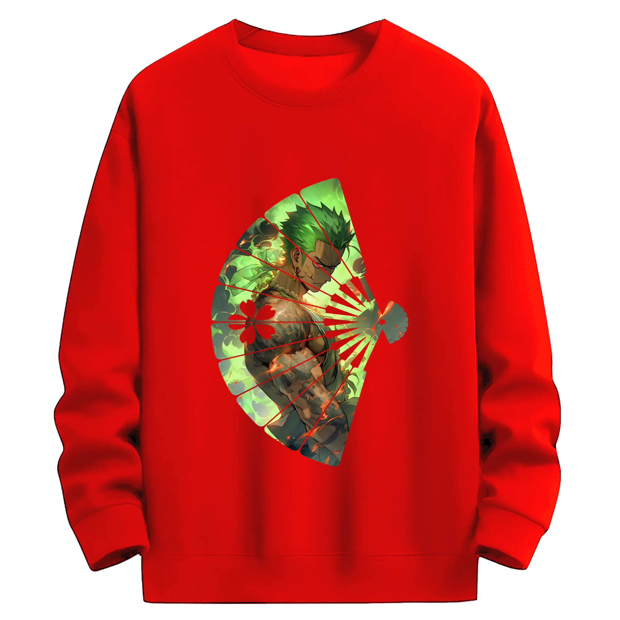ワンピース グッズ ロロノア・ゾロ - 高品質 クルーネック スウェット ・ コットン59% ポリエステル41% ・ ユニセックス 長袖 トレーナー ・ カジュアル デイリー スポーツ 散歩用