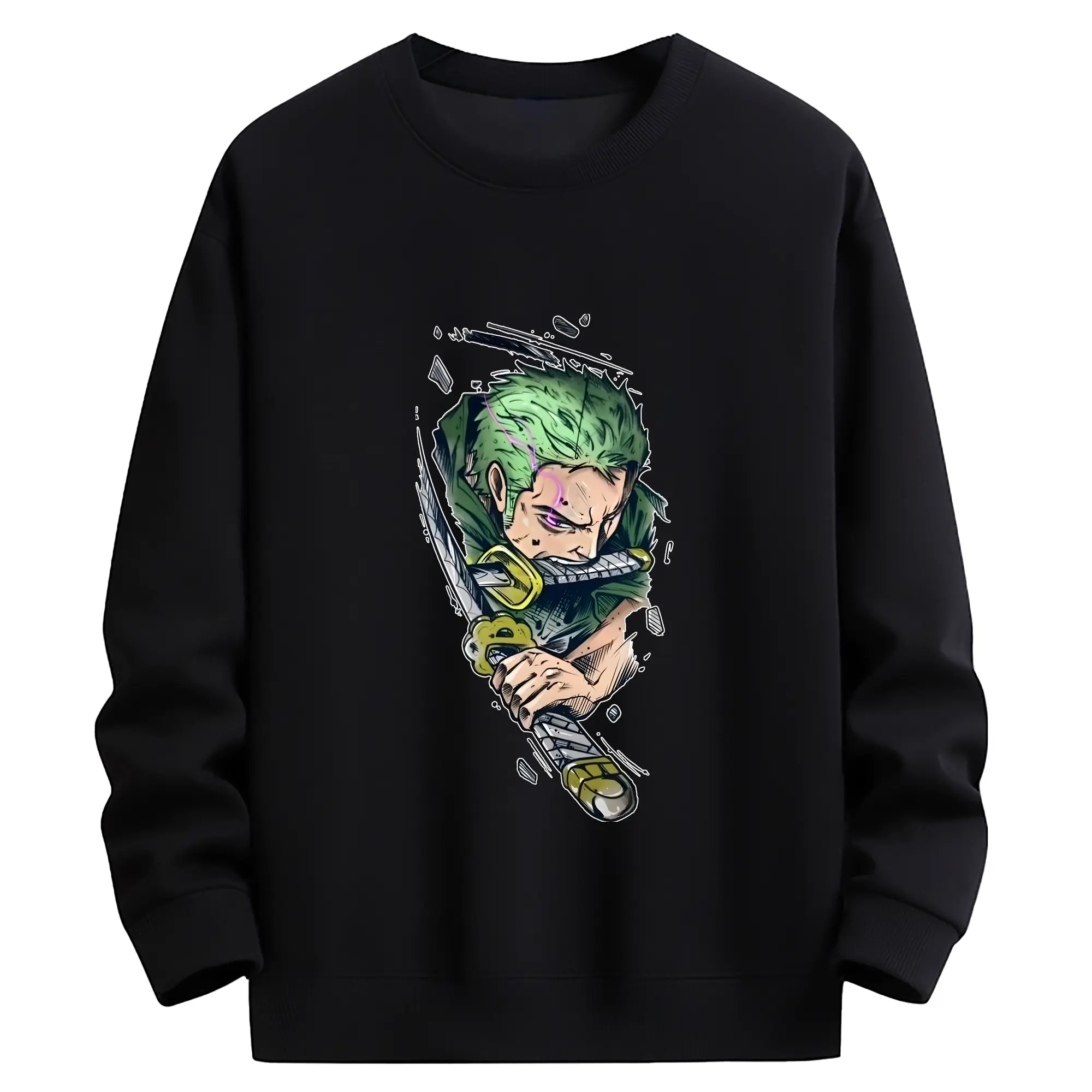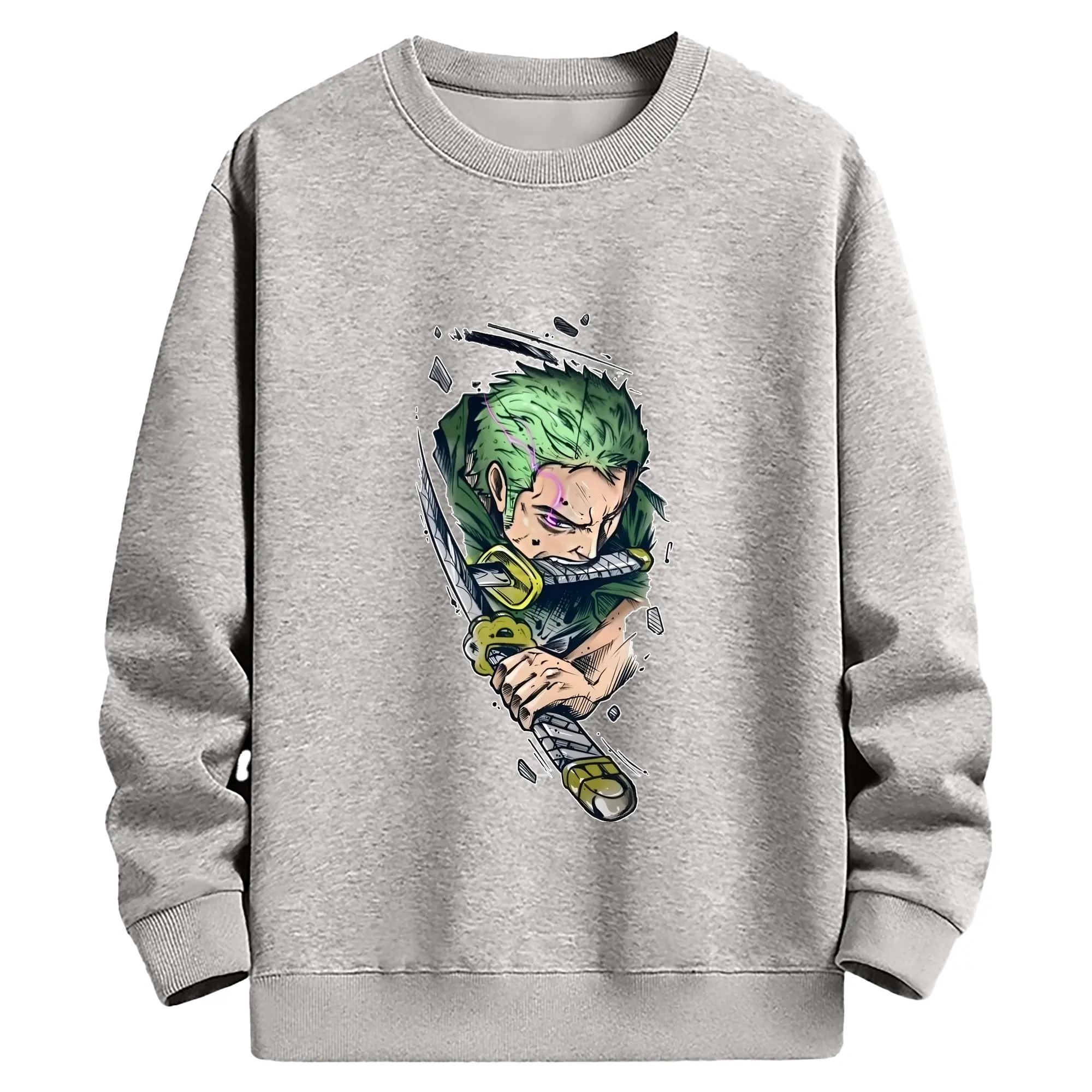 ワンピース グッズ ロロノア・ゾロ - 高品質 クルーネック スウェット ・ コットン59% ポリエステル41% ・ ユニセックス 長袖 トレーナー ・ カジュアル デイリー スポーツ 散歩用
