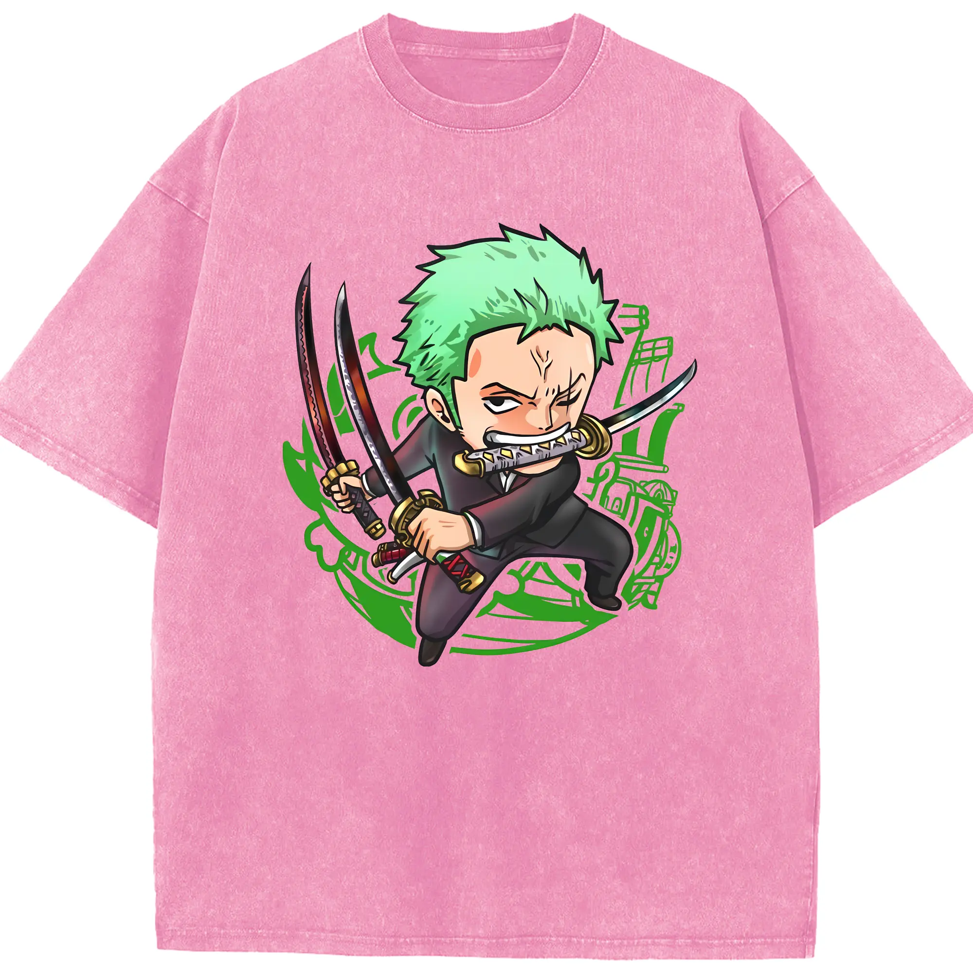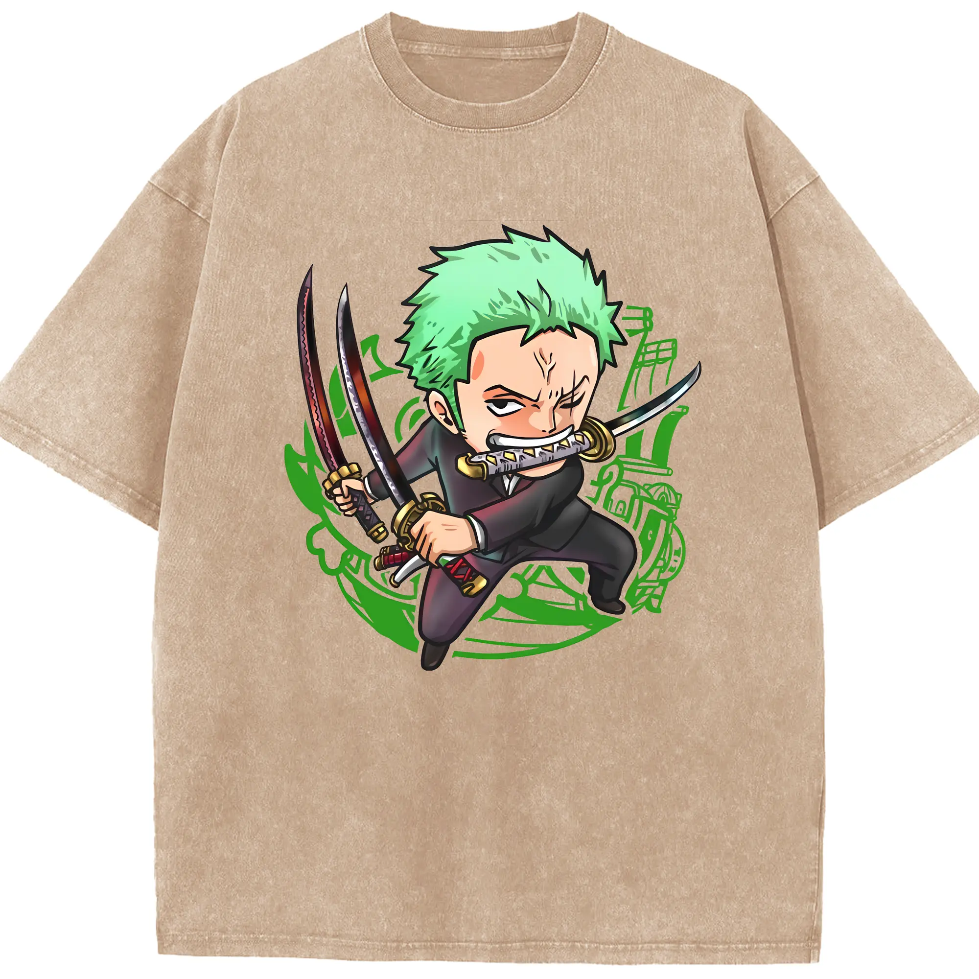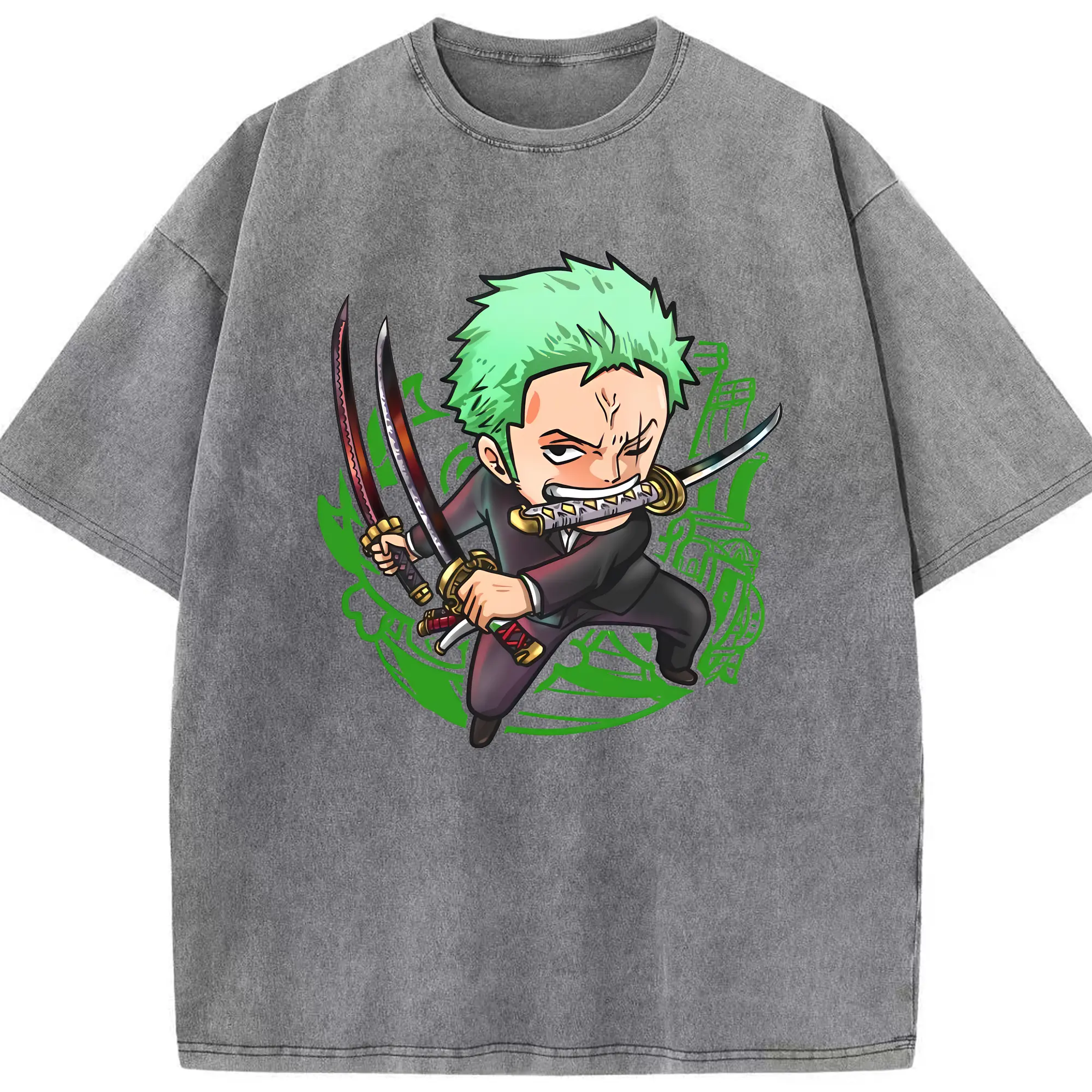 ワンピース グッズ ロロノア・ゾロ - 綿100% ヴィンテージ風 半袖Tシャツ ・ 背面プリント ・ 柔らか肌触り ・ 通気性 快適 ・ スポーツ カジュアル 外出用