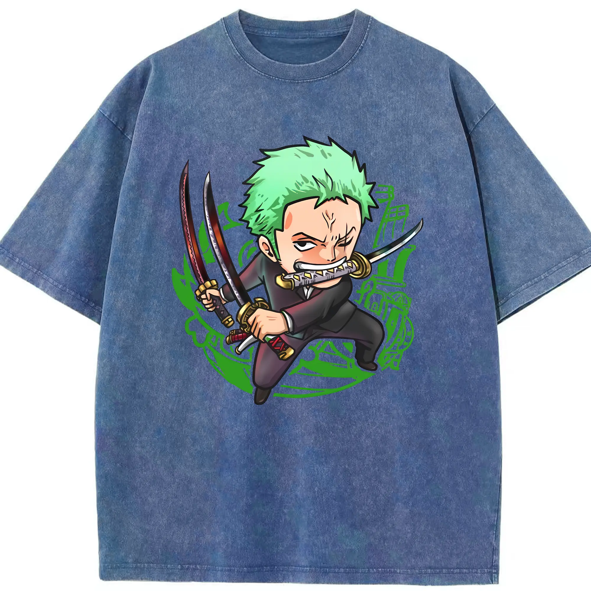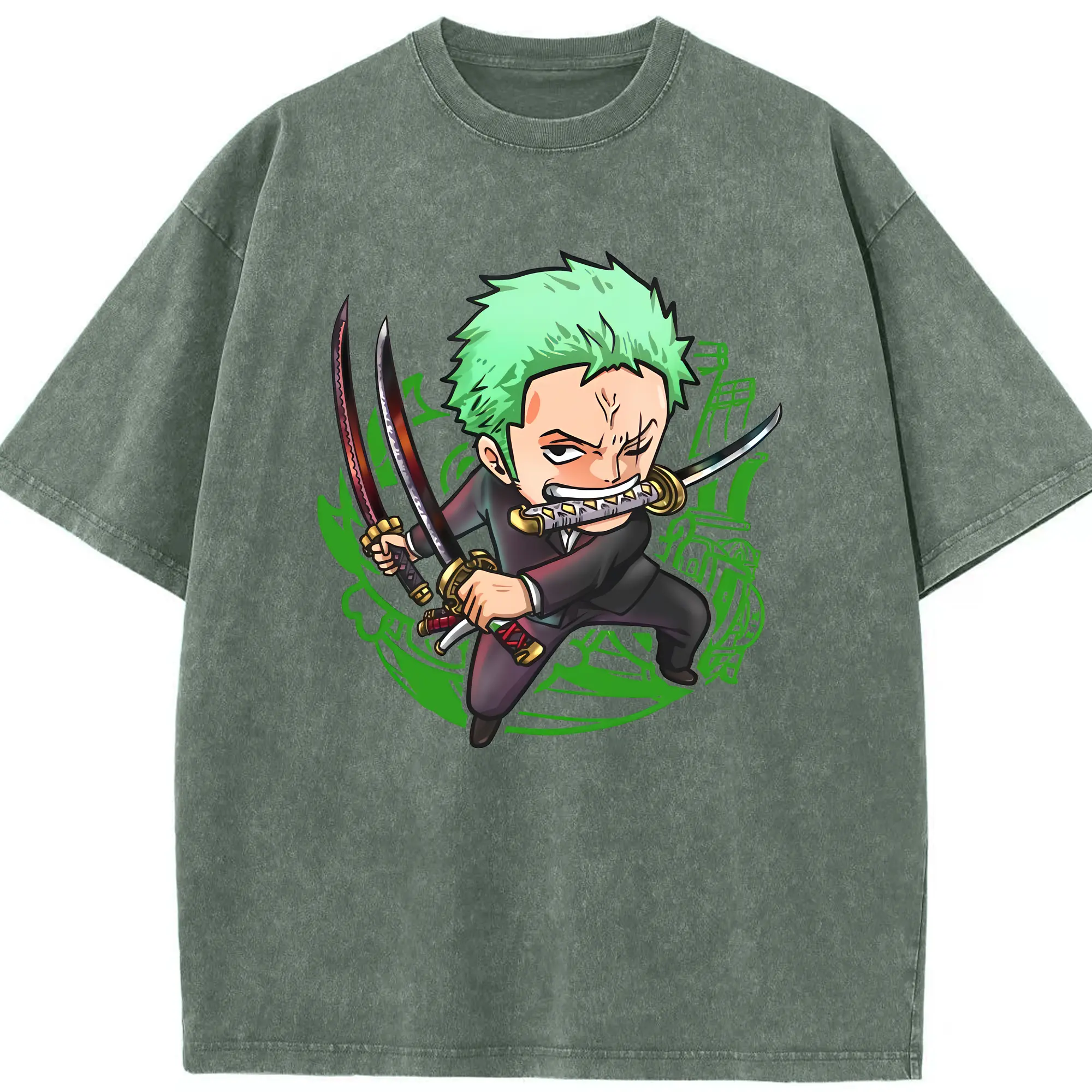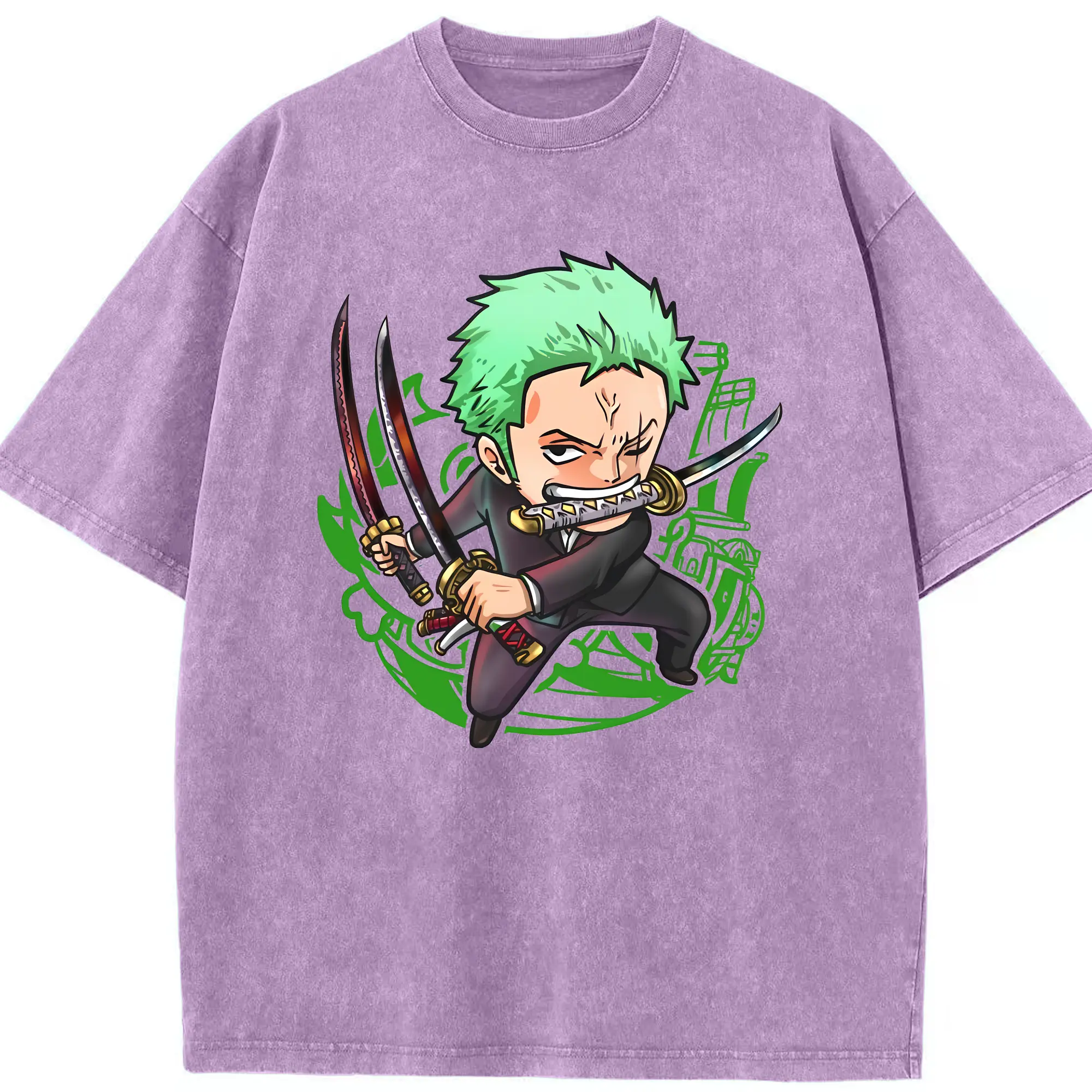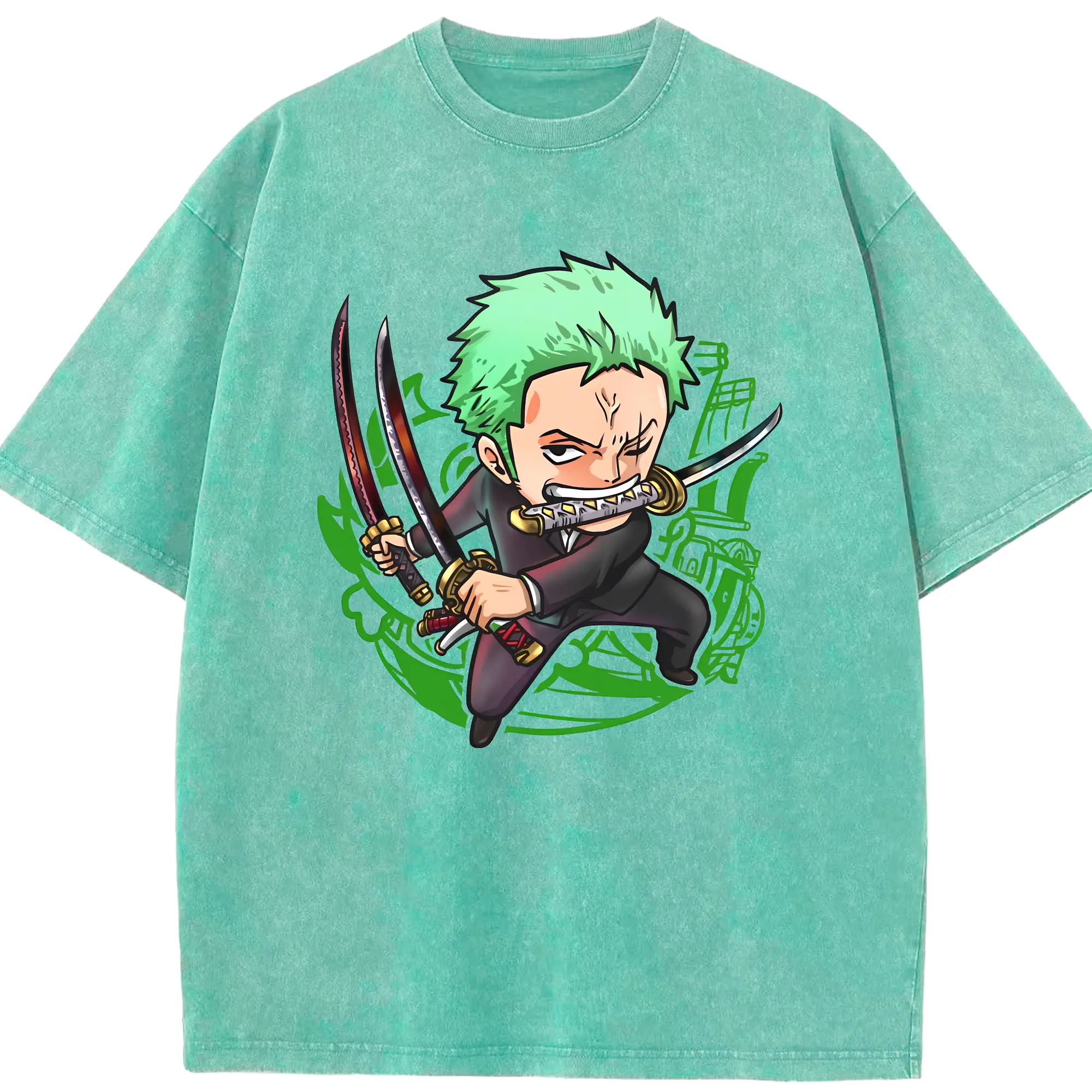 ワンピース グッズ ロロノア・ゾロ - 綿100% ヴィンテージ風 半袖Tシャツ ・ 背面プリント ・ 柔らか肌触り ・ 通気性 快適 ・ スポーツ カジュアル 外出用