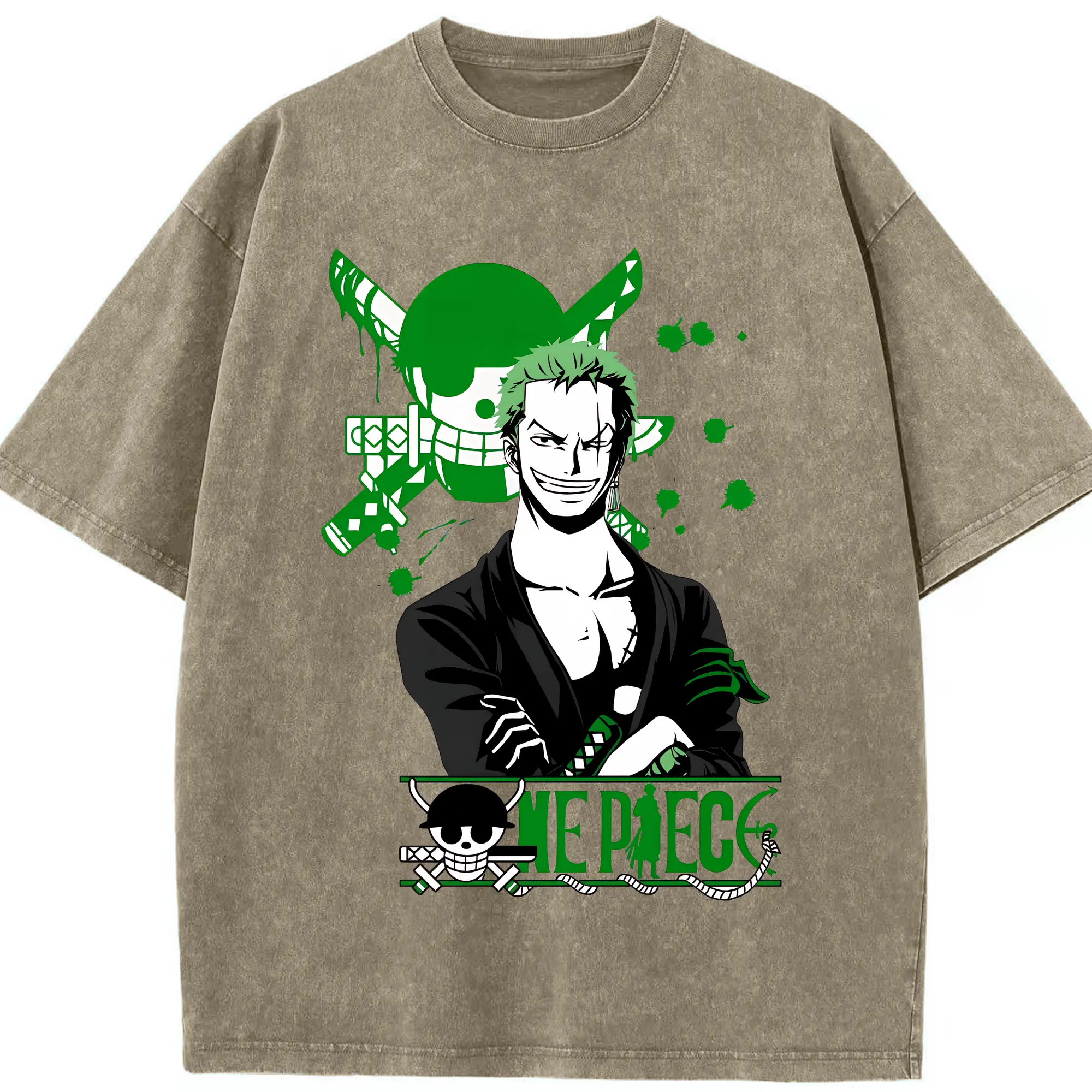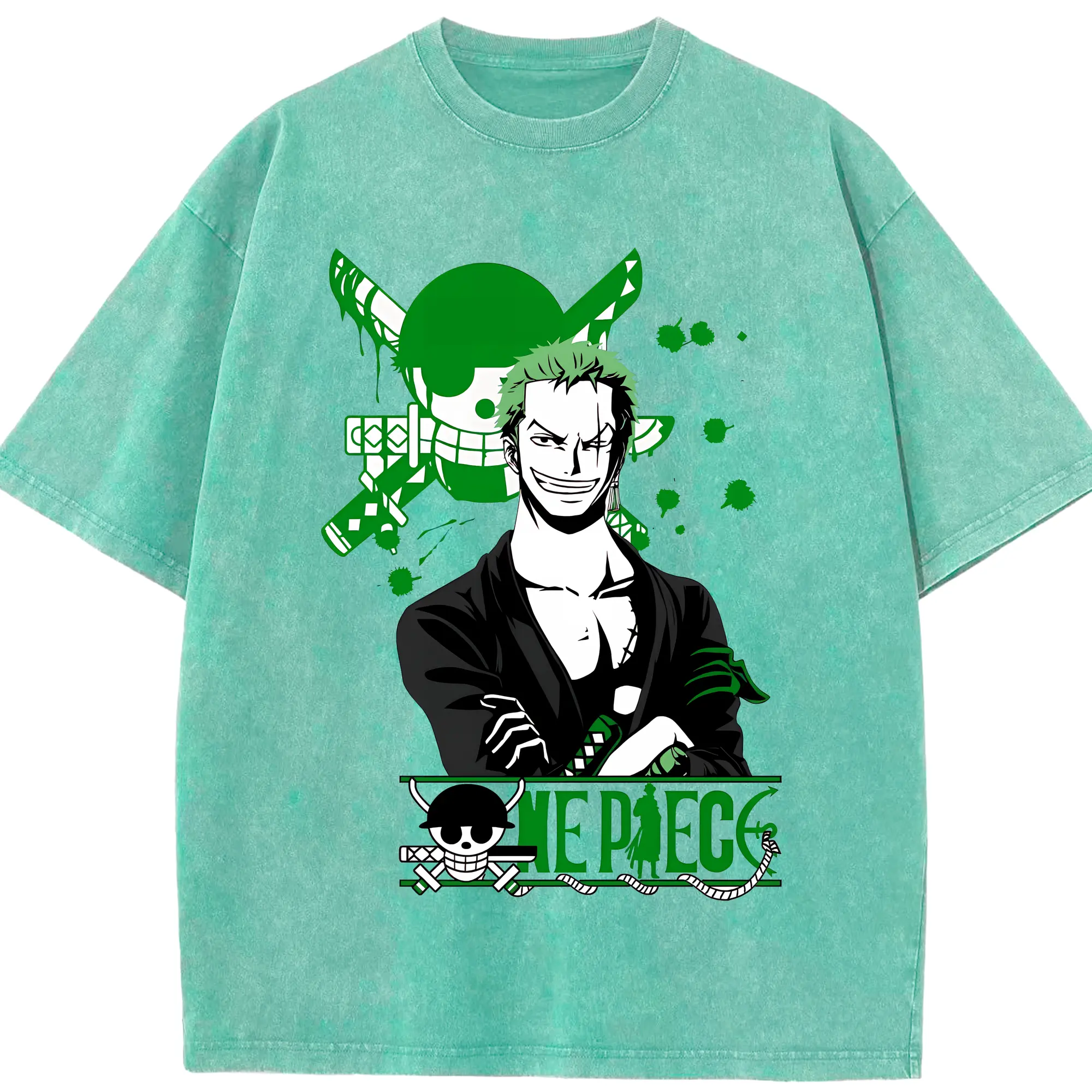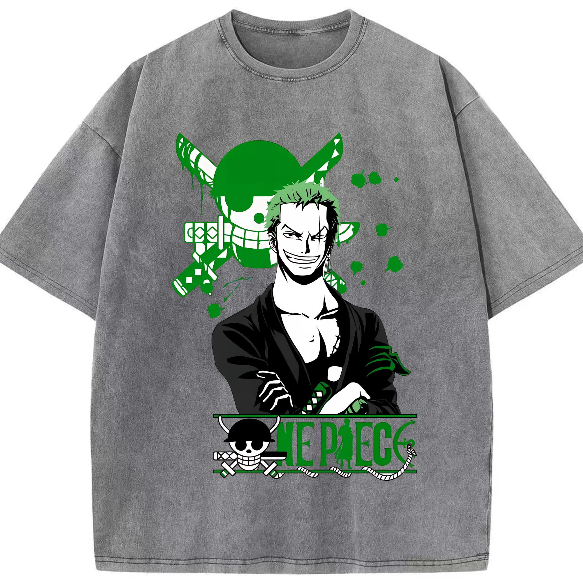 ワンピース グッズ ロロノア・ゾロ - 綿100% ヴィンテージ風 半袖Tシャツ ・ 背面プリント ・ 柔らか肌触り ・ 通気性 快適 ・ スポーツ カジュアル 外出用