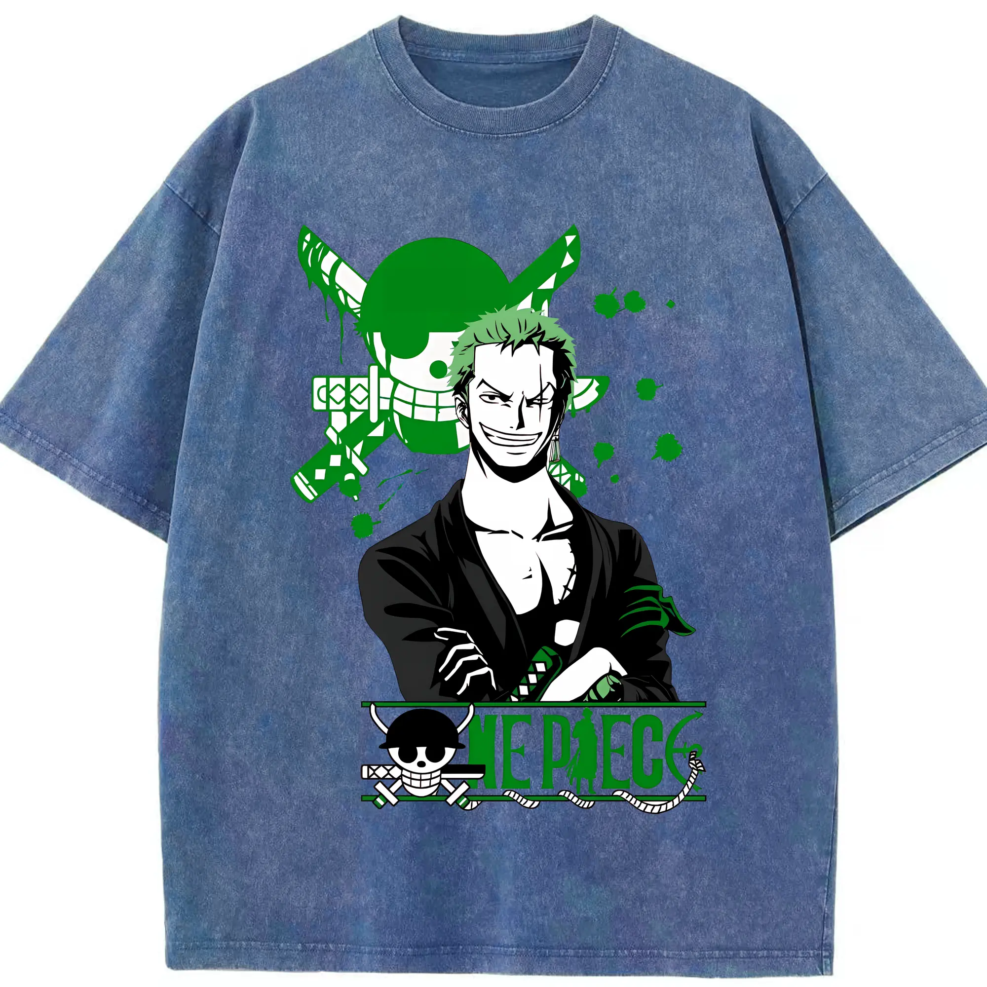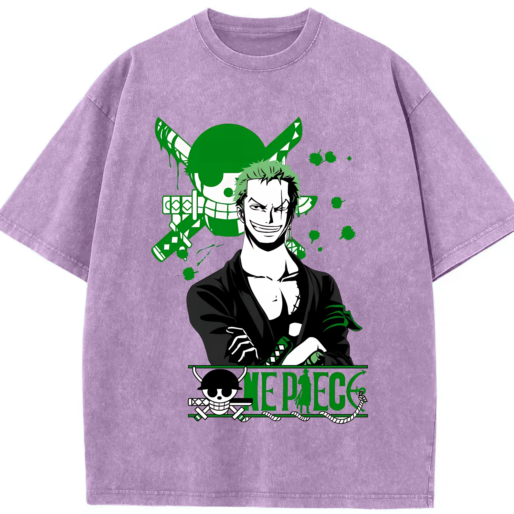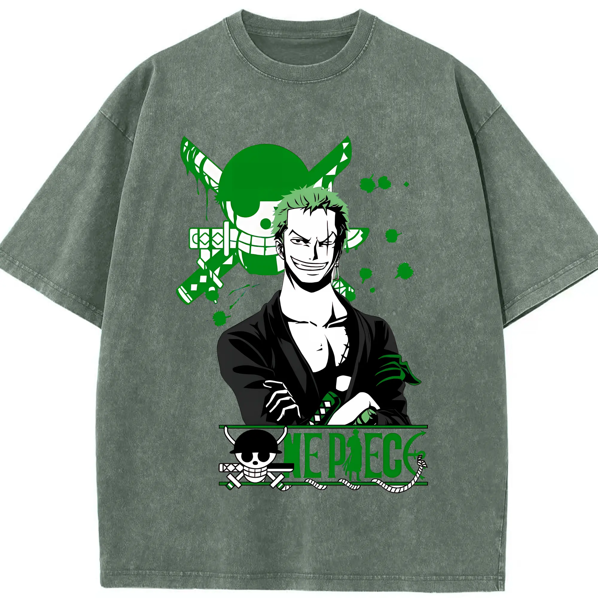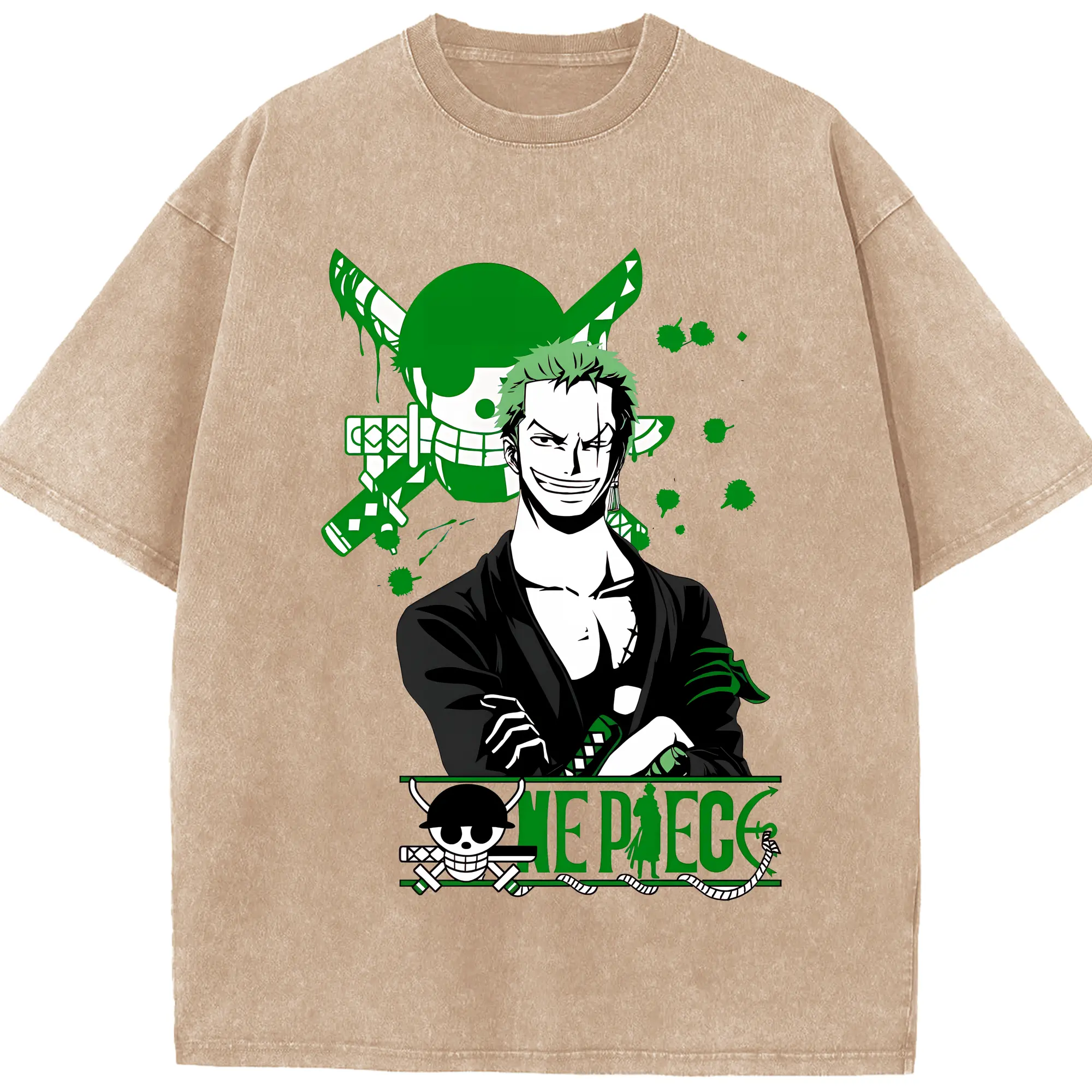 ワンピース グッズ ロロノア・ゾロ - 綿100% ヴィンテージ風 半袖Tシャツ ・ 背面プリント ・ 柔らか肌触り ・ 通気性 快適 ・ スポーツ カジュアル 外出用