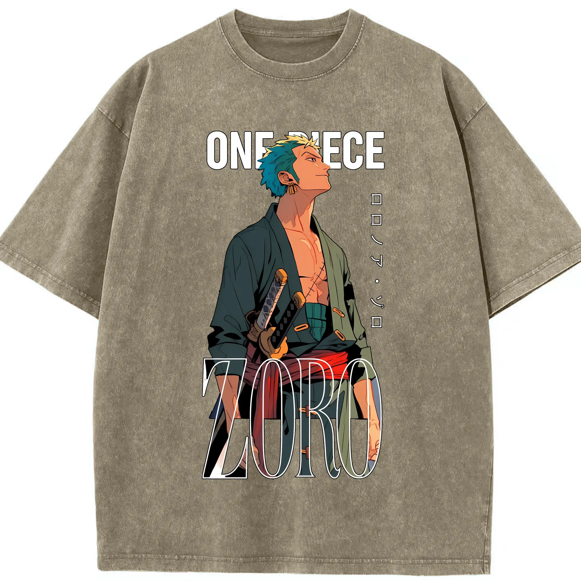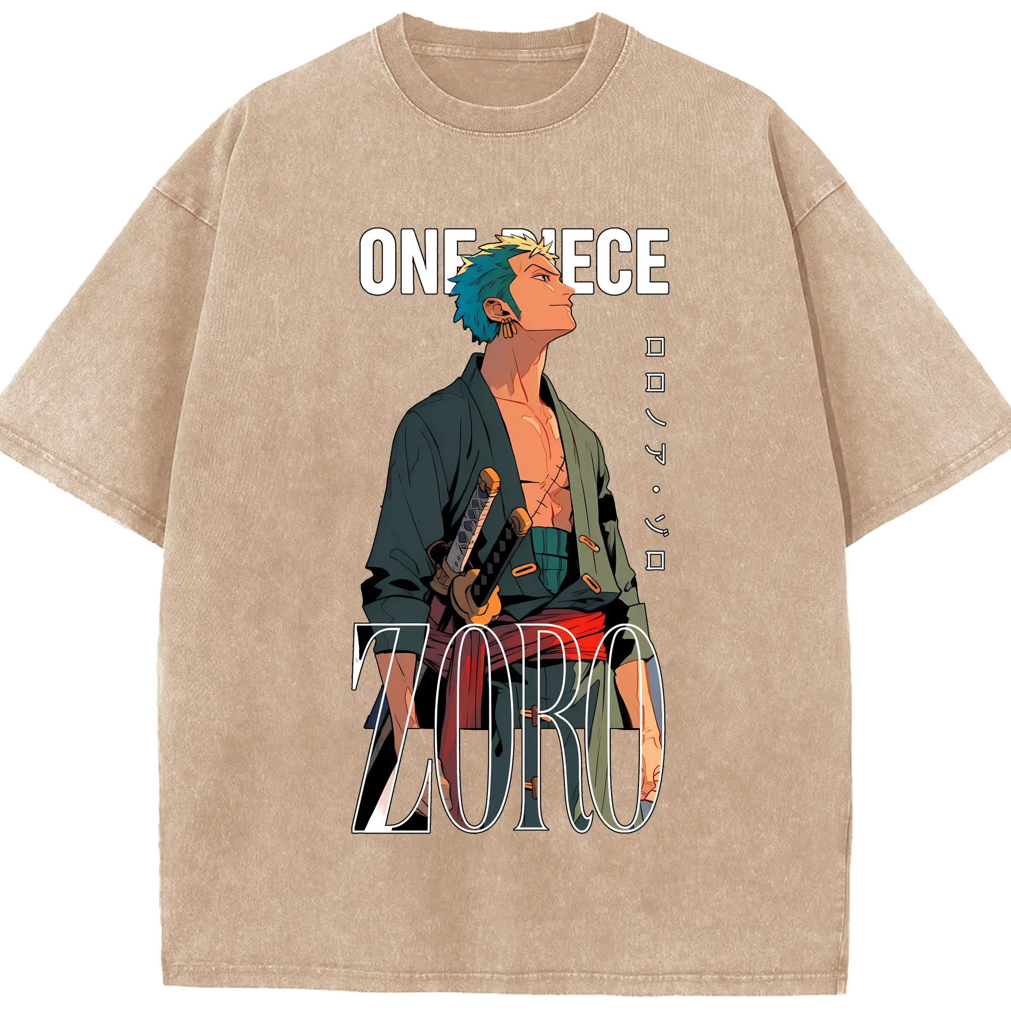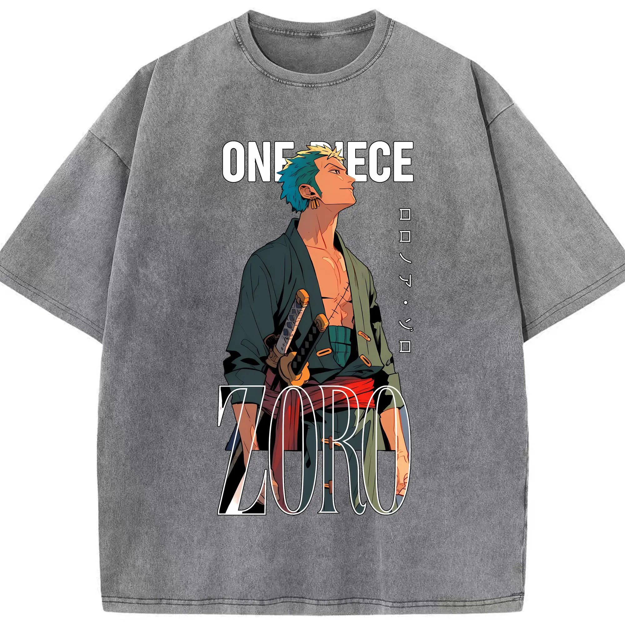 ワンピース グッズ ロロノア・ゾロ - 綿100% ヴィンテージ風 半袖Tシャツ ・ 背面プリント ・ 柔らか肌触り ・ 通気性 快適 ・ スポーツ カジュアル 外出用