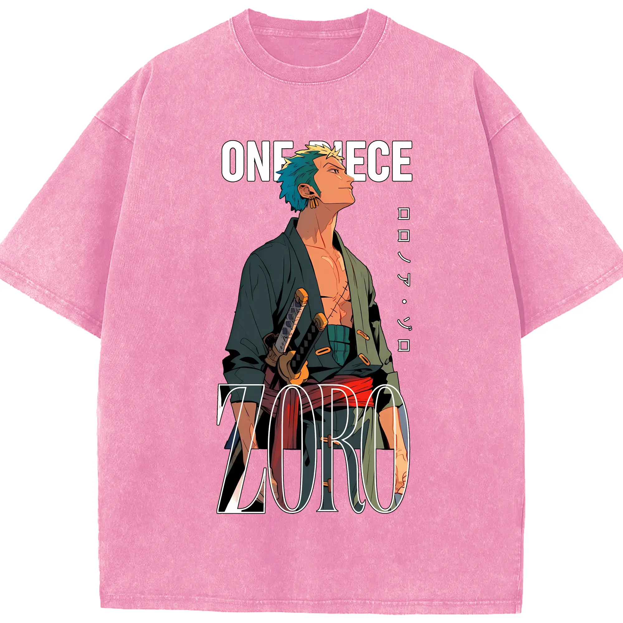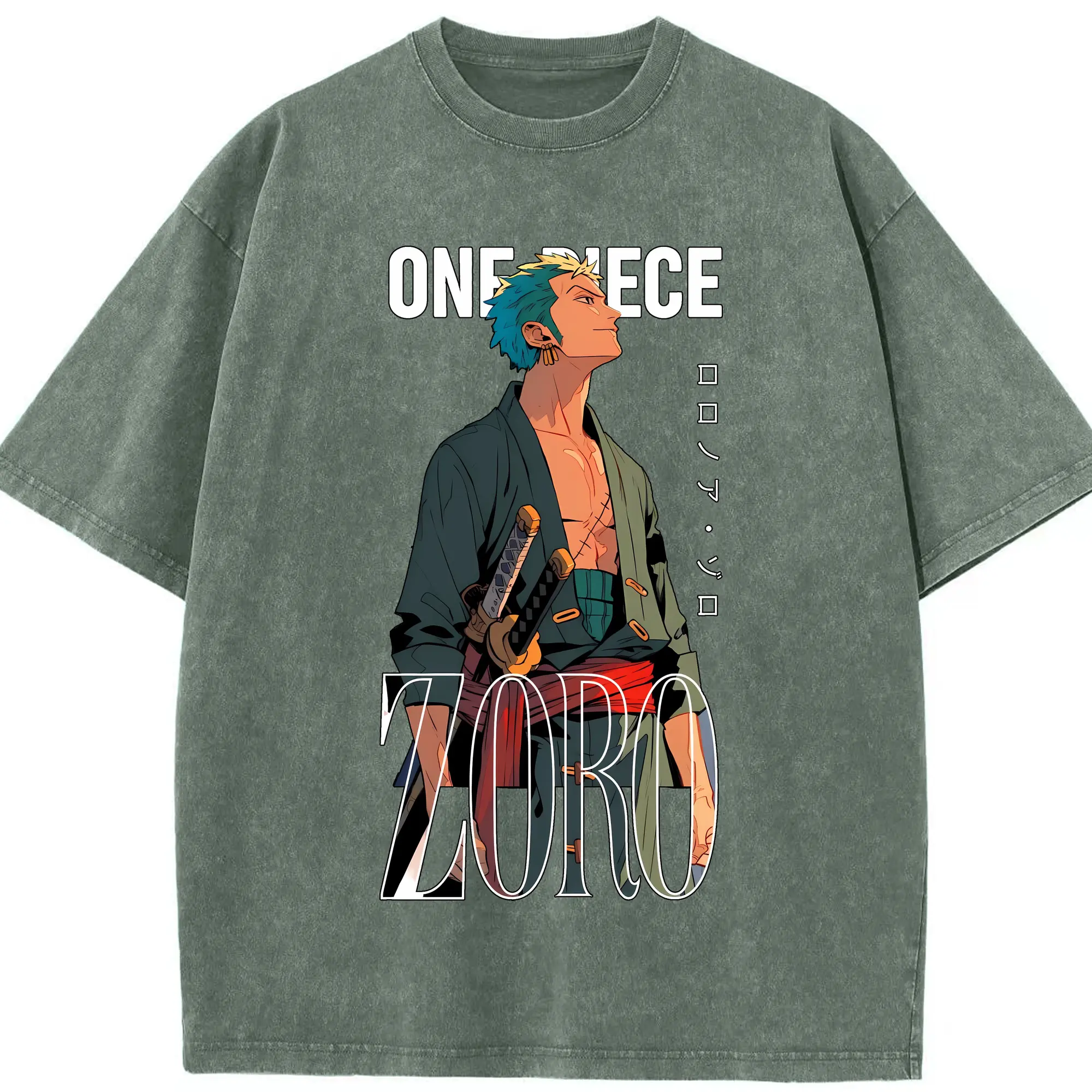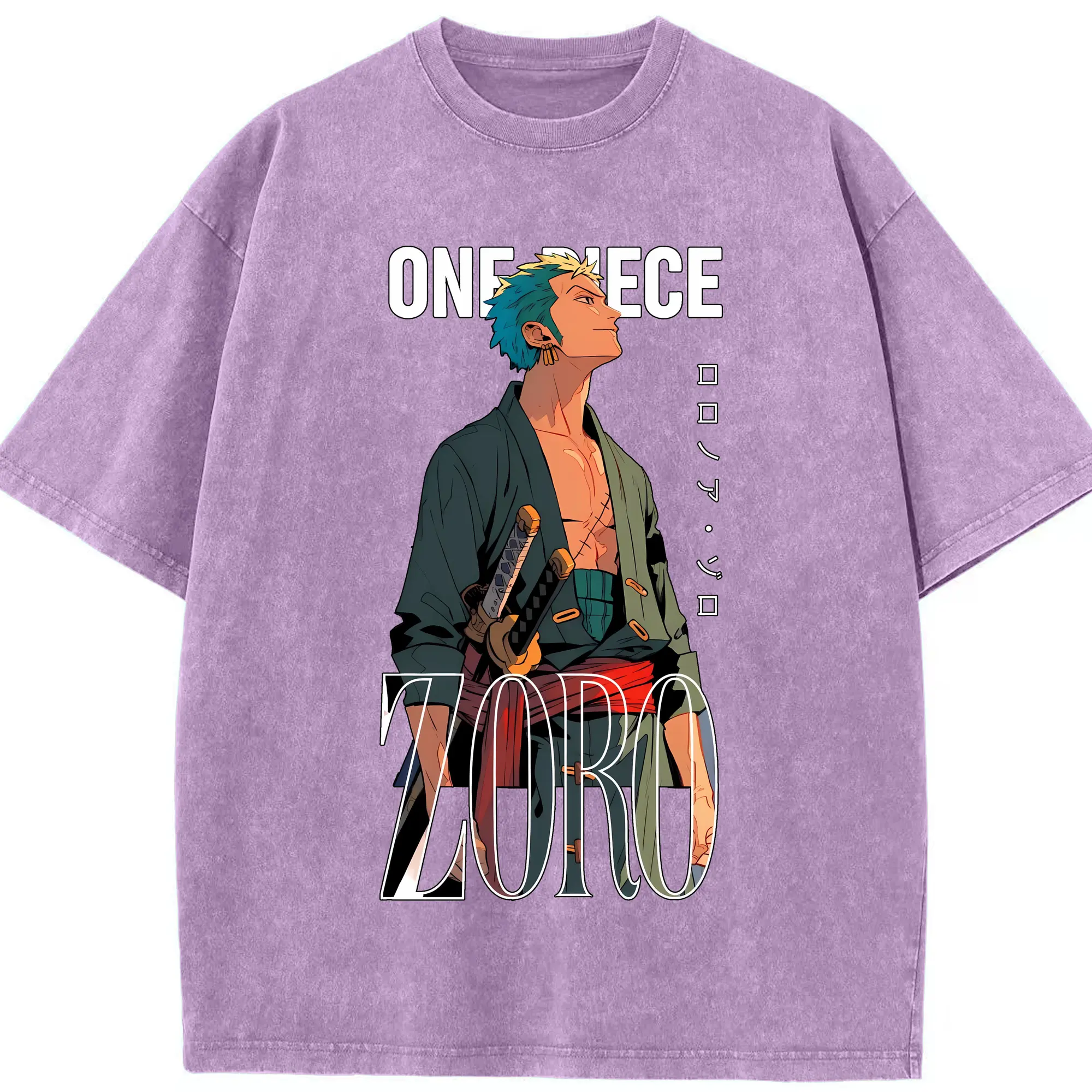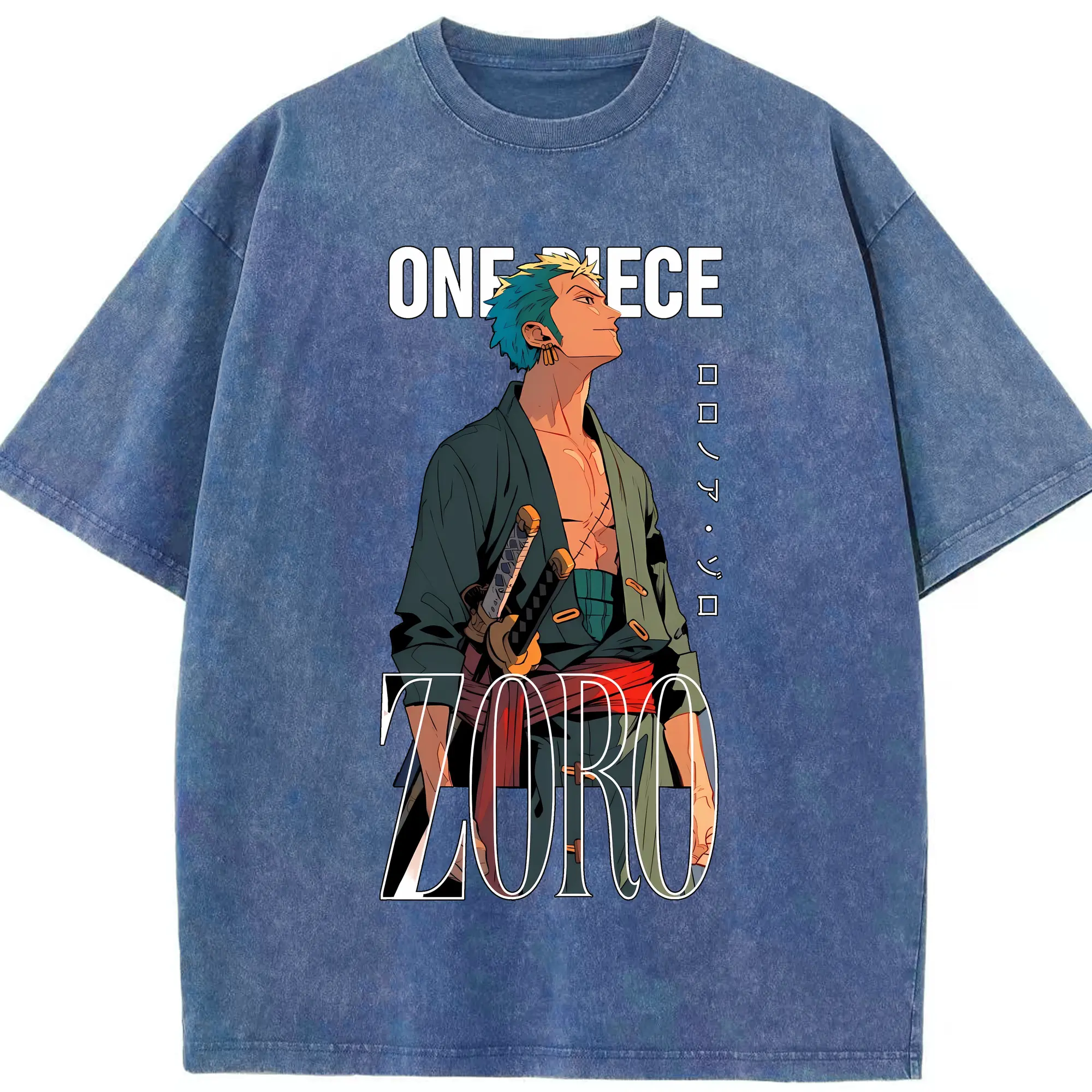 ワンピース グッズ ロロノア・ゾロ - 綿100% ヴィンテージ風 半袖Tシャツ ・ 背面プリント ・ 柔らか肌触り ・ 通気性 快適 ・ スポーツ カジュアル 外出用