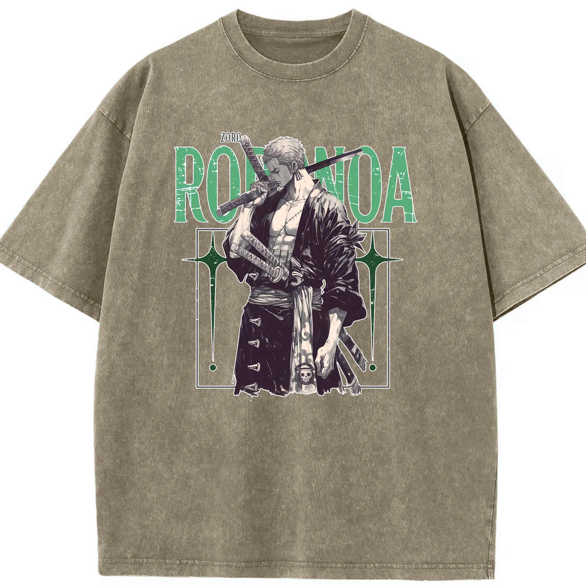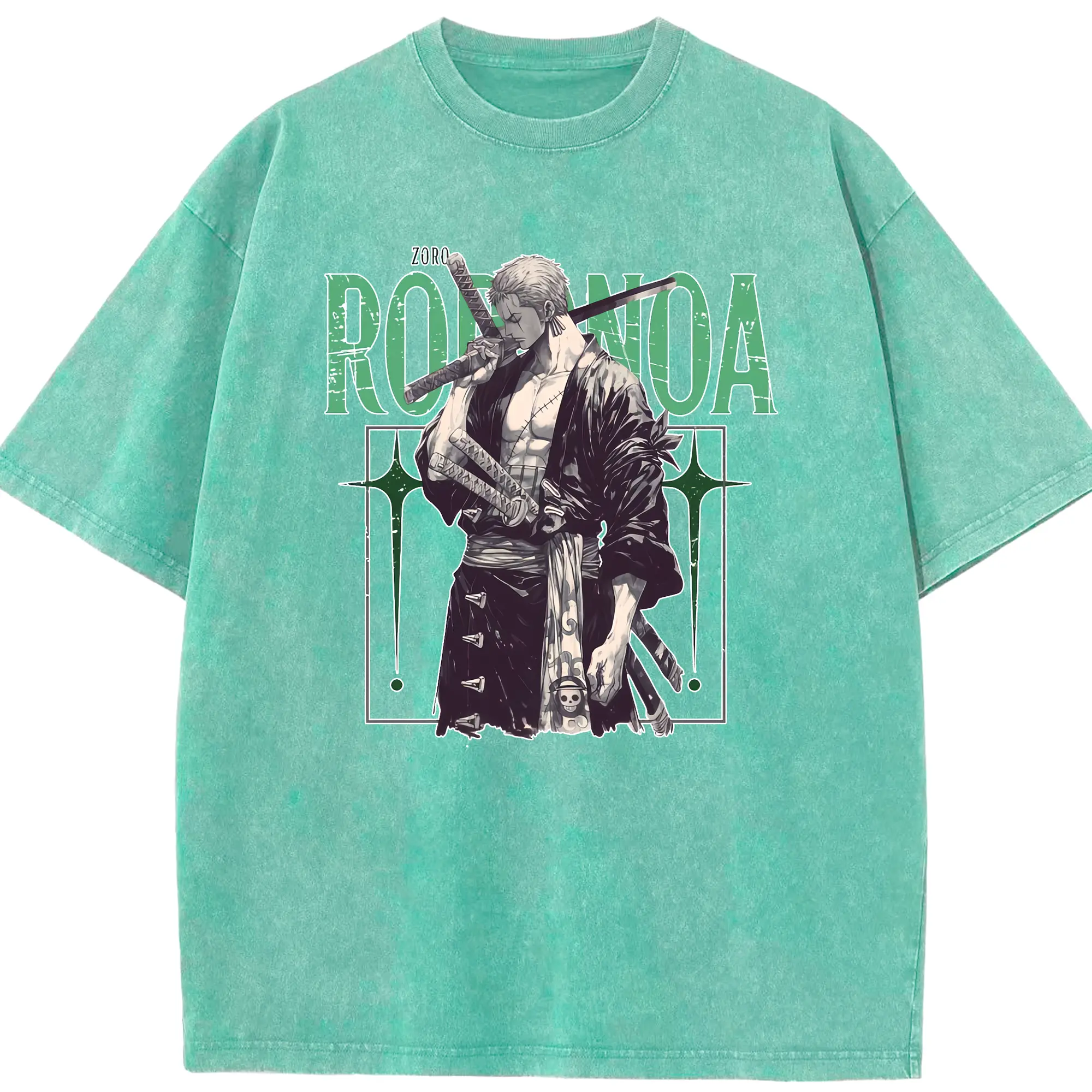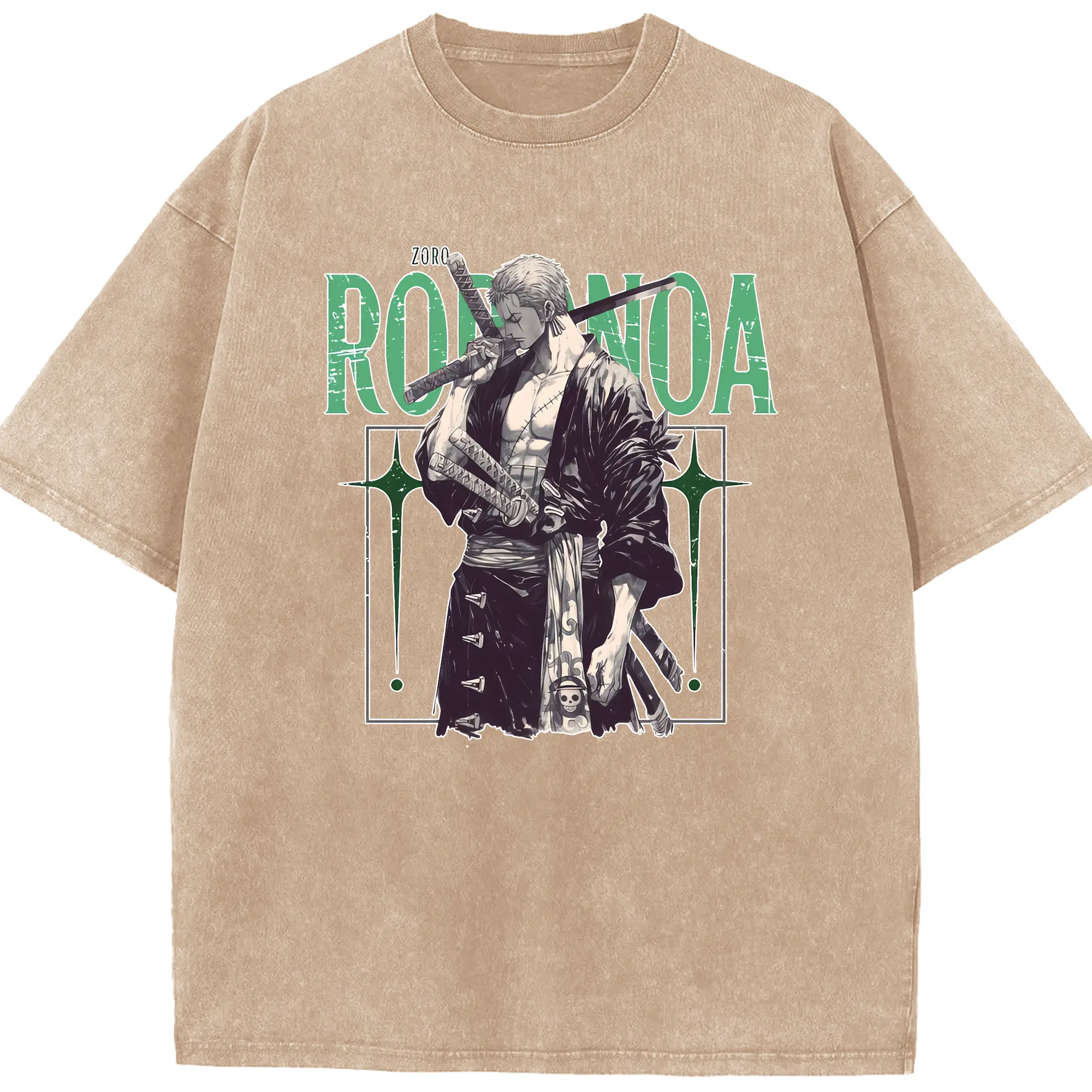 ワンピース グッズ ロロノア・ゾロ - 綿100% ヴィンテージ風 半袖Tシャツ ・ 背面プリント ・ 柔らか肌触り ・ 通気性 快適 ・ スポーツ カジュアル 外出用