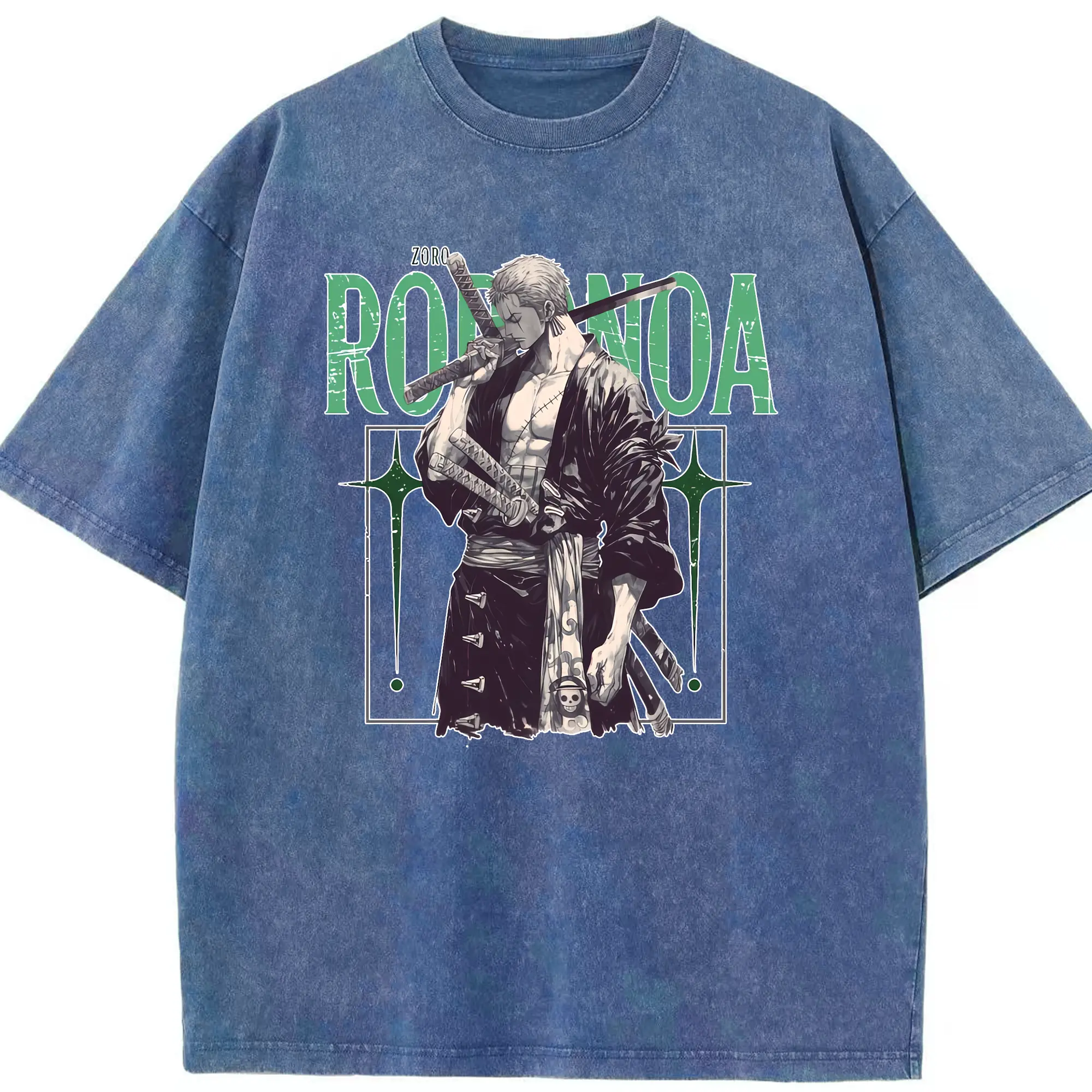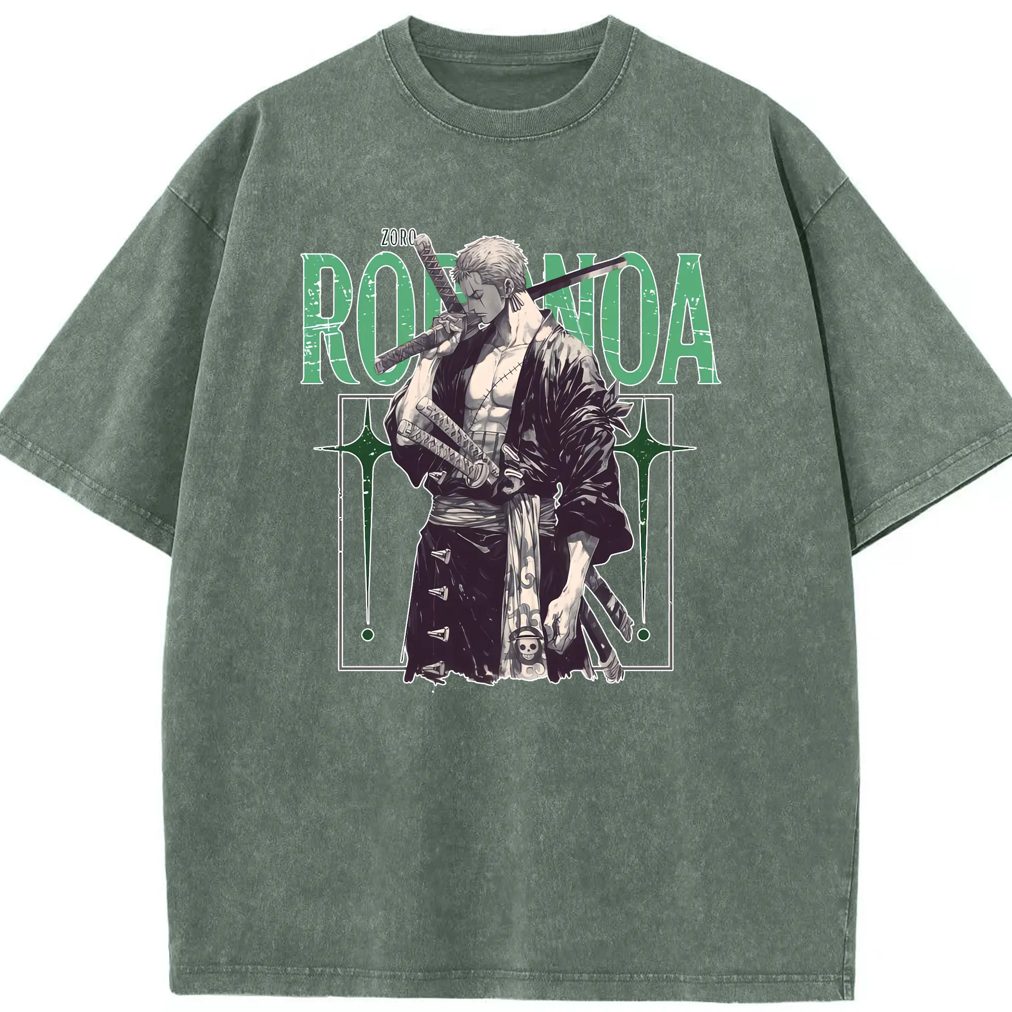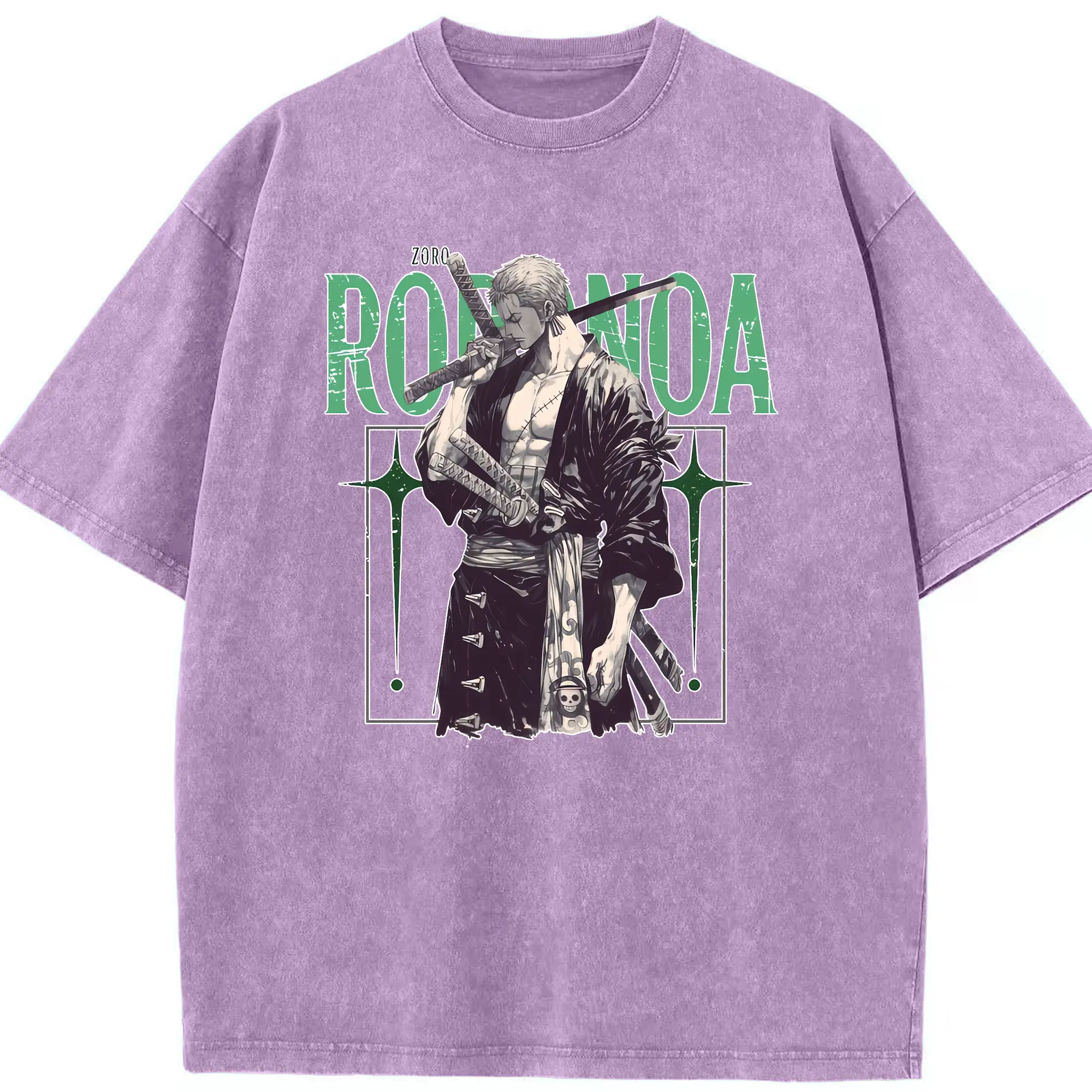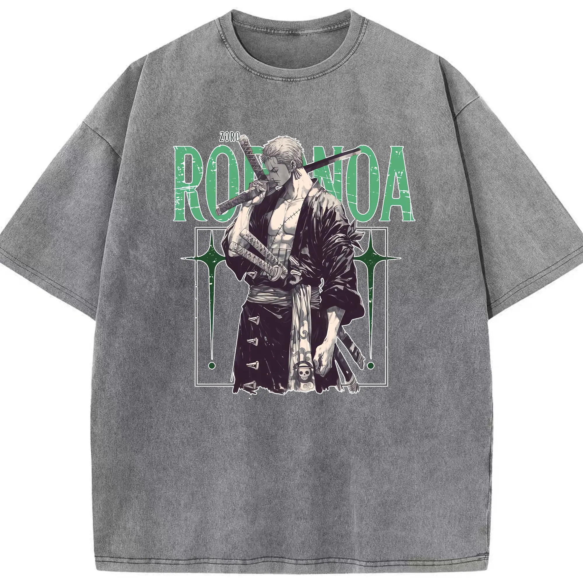 ワンピース グッズ ロロノア・ゾロ - 綿100% ヴィンテージ風 半袖Tシャツ ・ 背面プリント ・ 柔らか肌触り ・ 通気性 快適 ・ スポーツ カジュアル 外出用