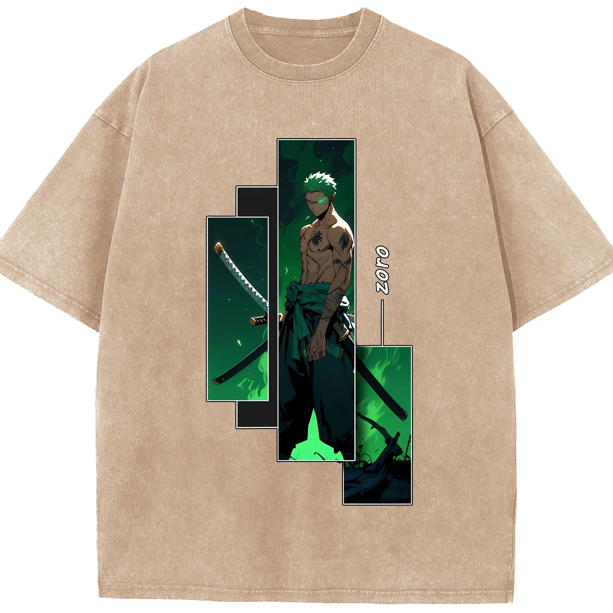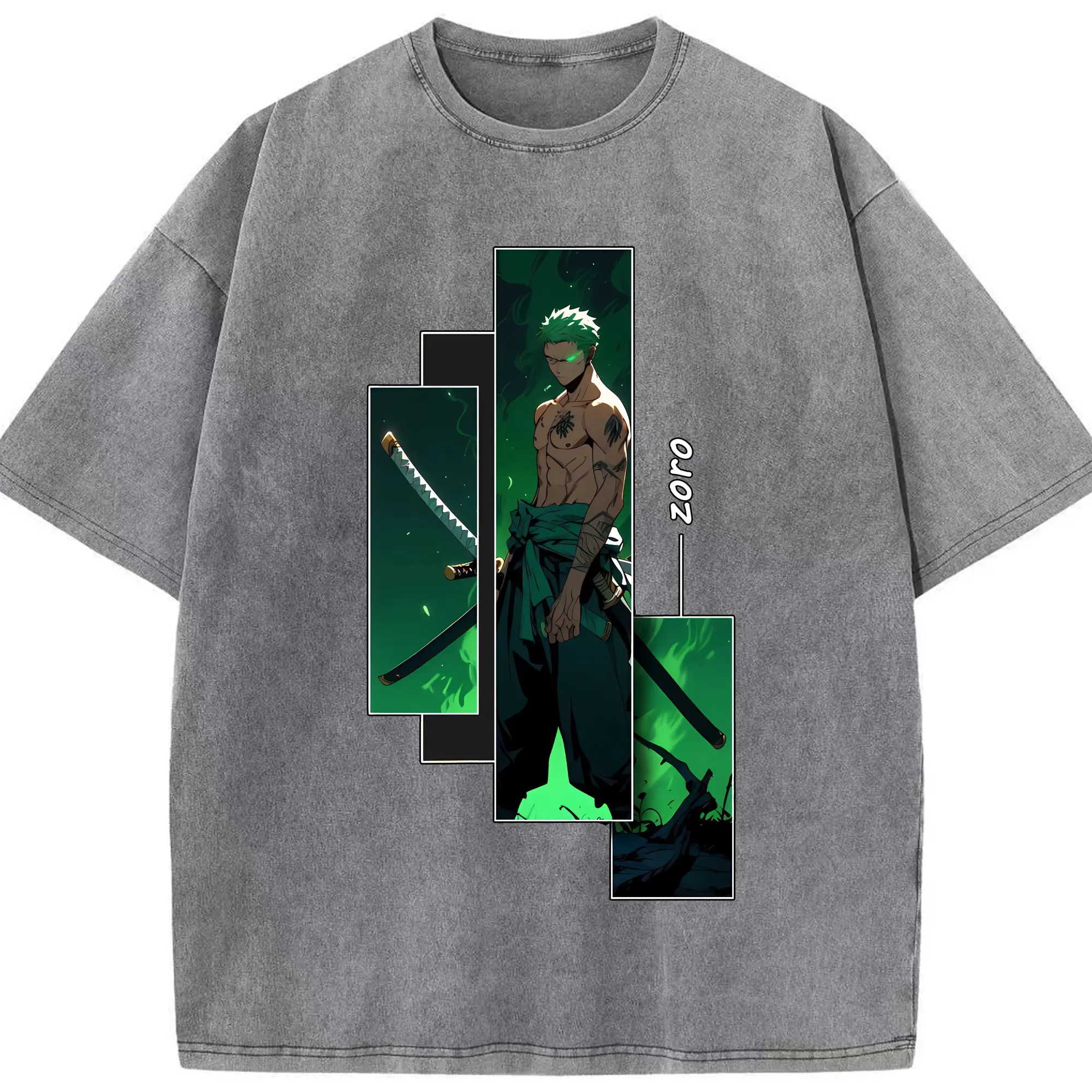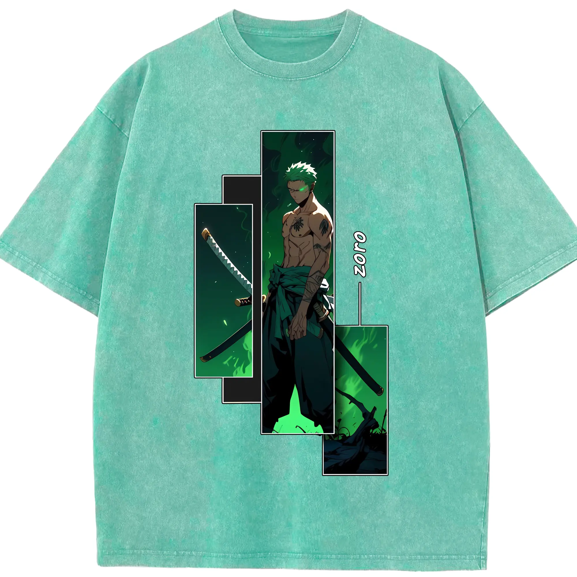 ワンピース グッズ ロロノア・ゾロ - 綿100% ヴィンテージ風 半袖Tシャツ ・ 背面プリント ・ 柔らか肌触り ・ 通気性 快適 ・ スポーツ カジュアル 外出用