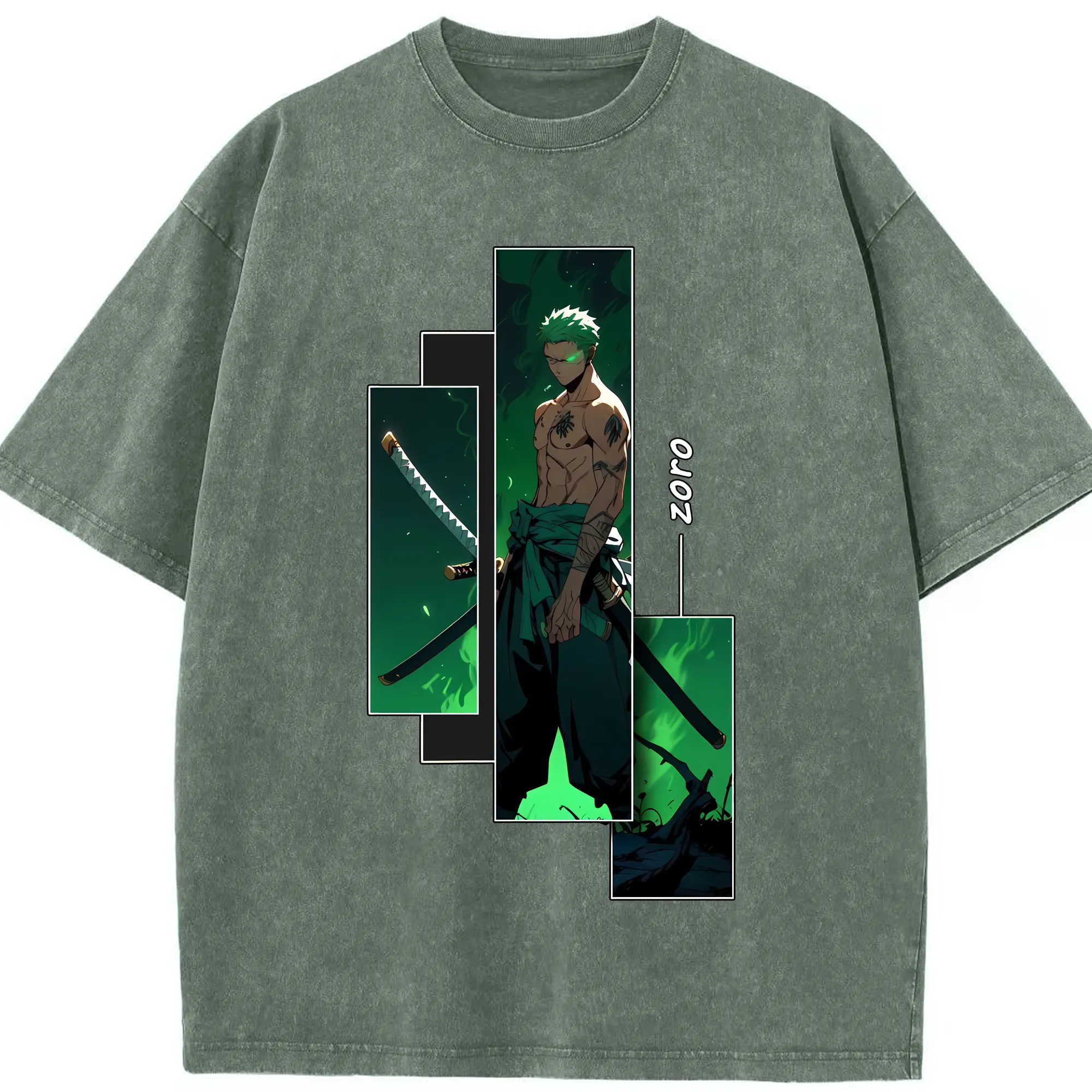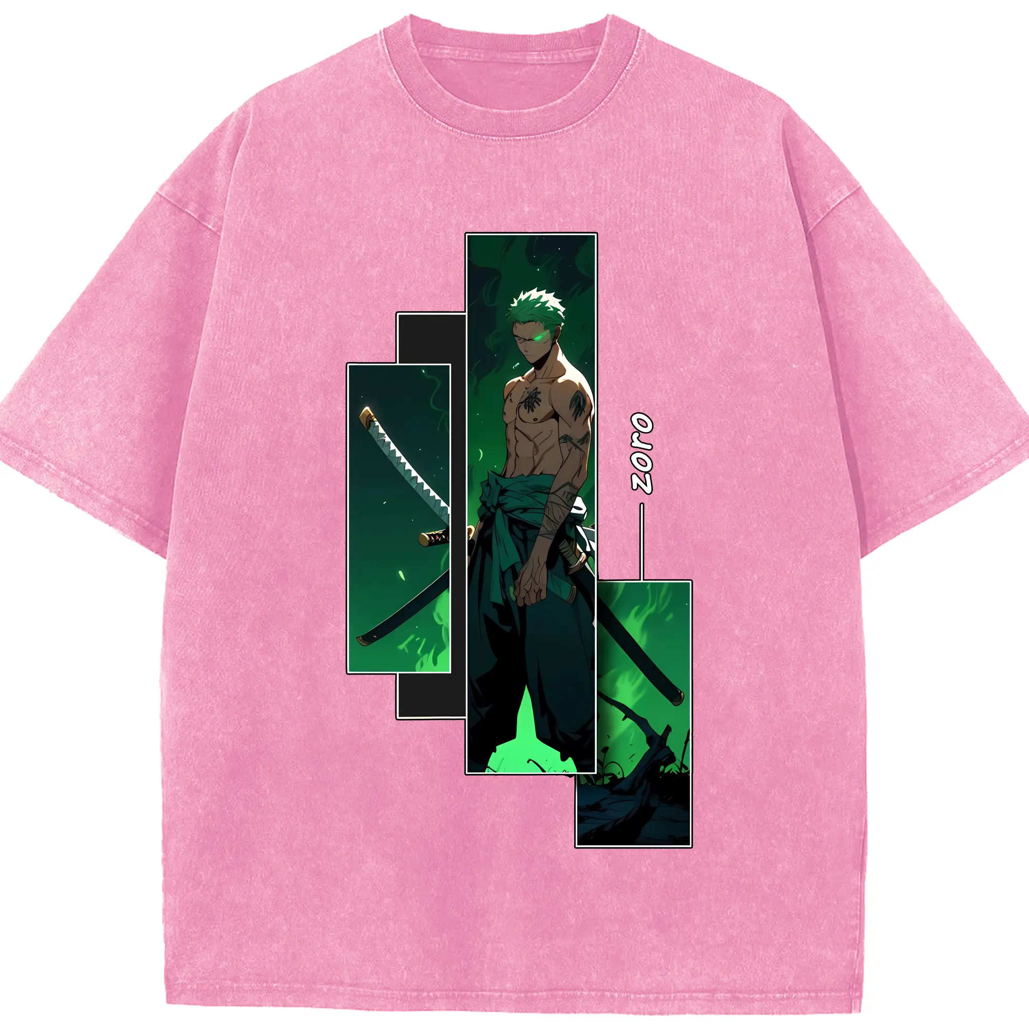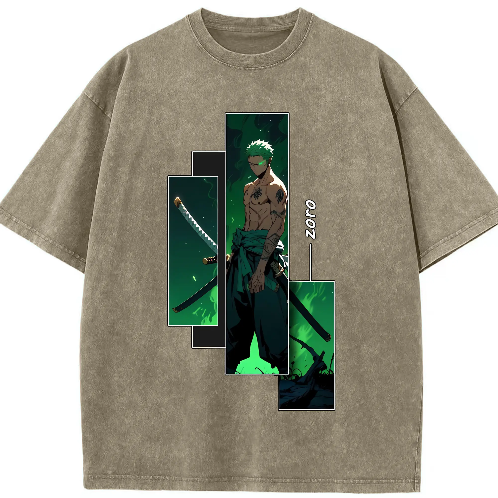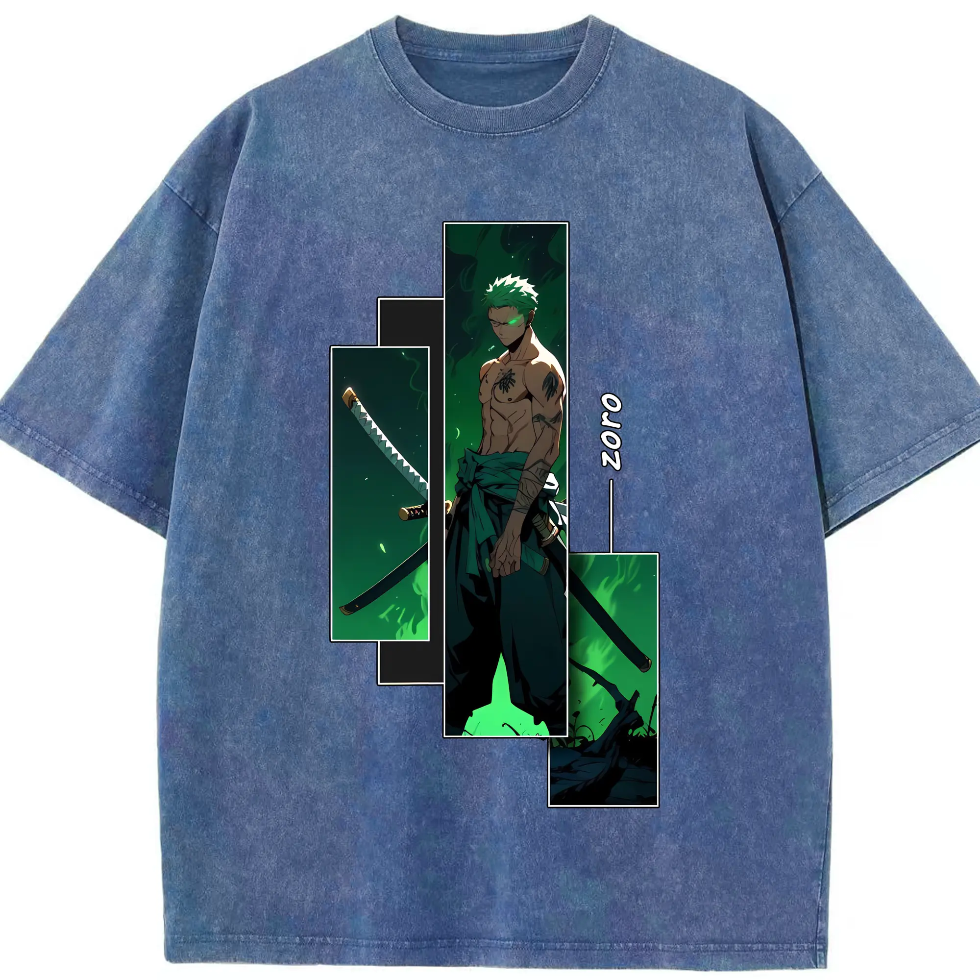 ワンピース グッズ ロロノア・ゾロ - 綿100% ヴィンテージ風 半袖Tシャツ ・ 背面プリント ・ 柔らか肌触り ・ 通気性 快適 ・ スポーツ カジュアル 外出用