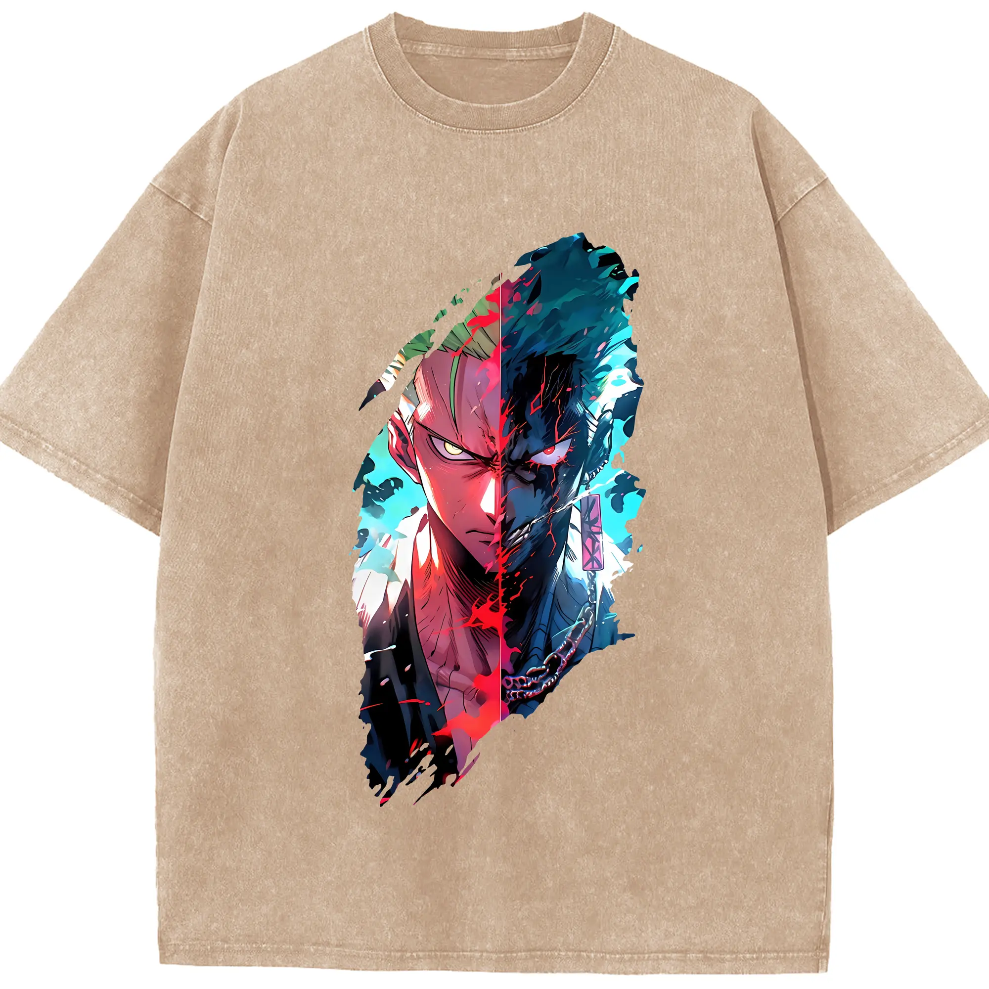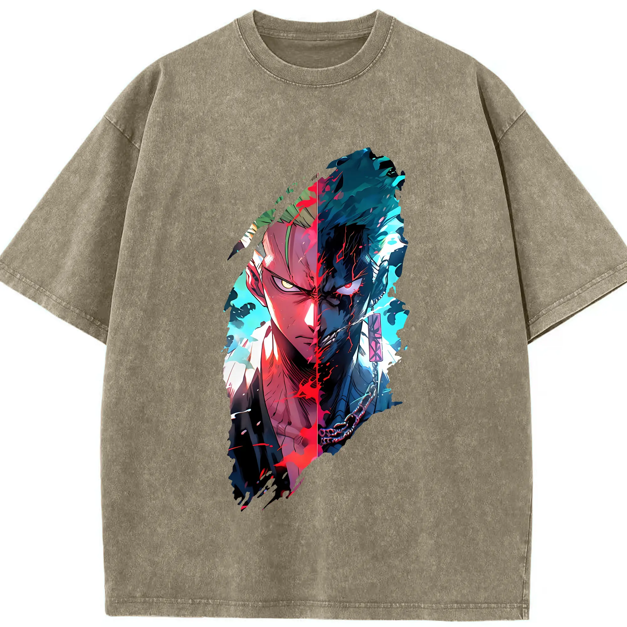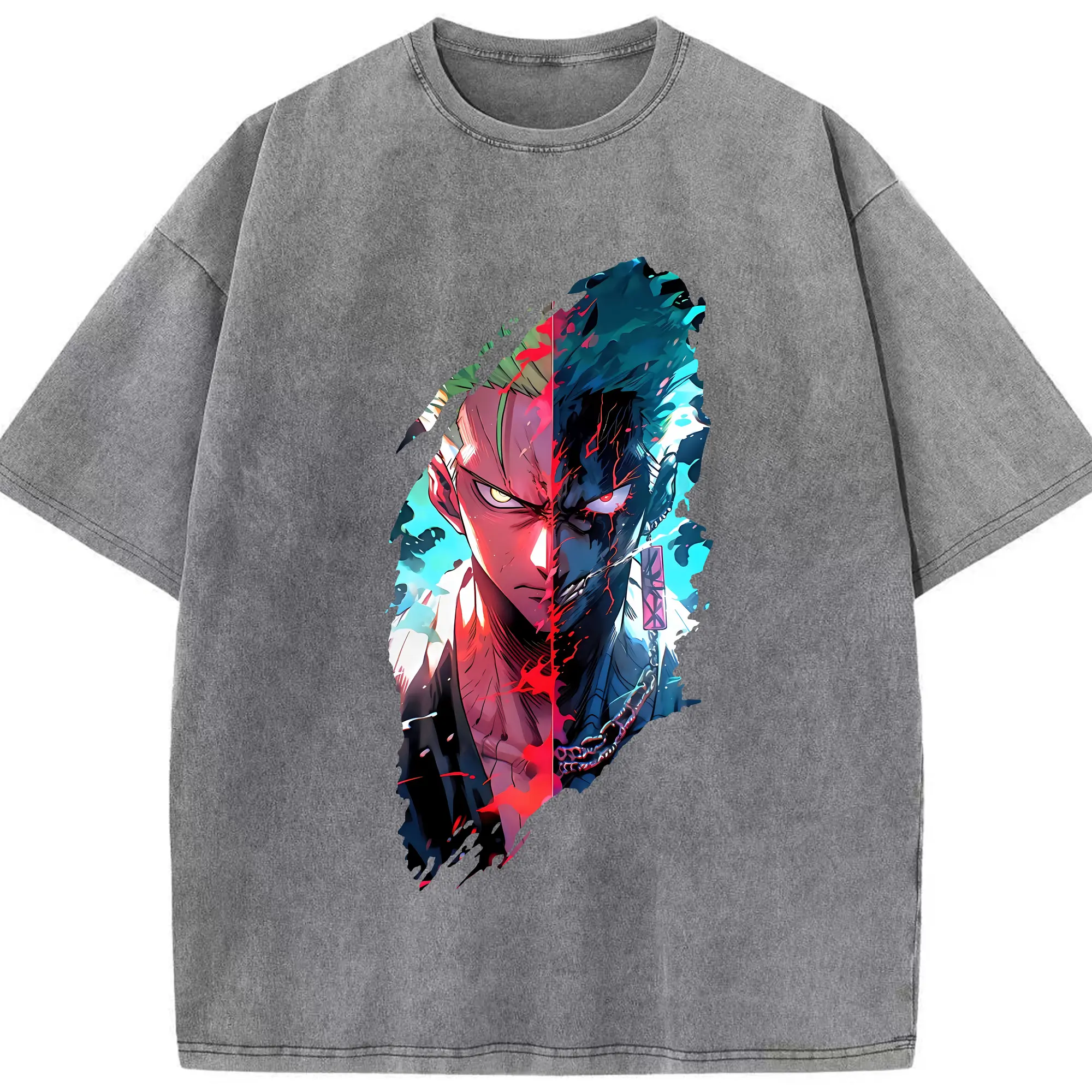 ワンピース グッズ ロロノア・ゾロ - 綿100% ヴィンテージ風 半袖Tシャツ ・ 背面プリント ・ 柔らか肌触り ・ 通気性 快適 ・ スポーツ カジュアル 外出用