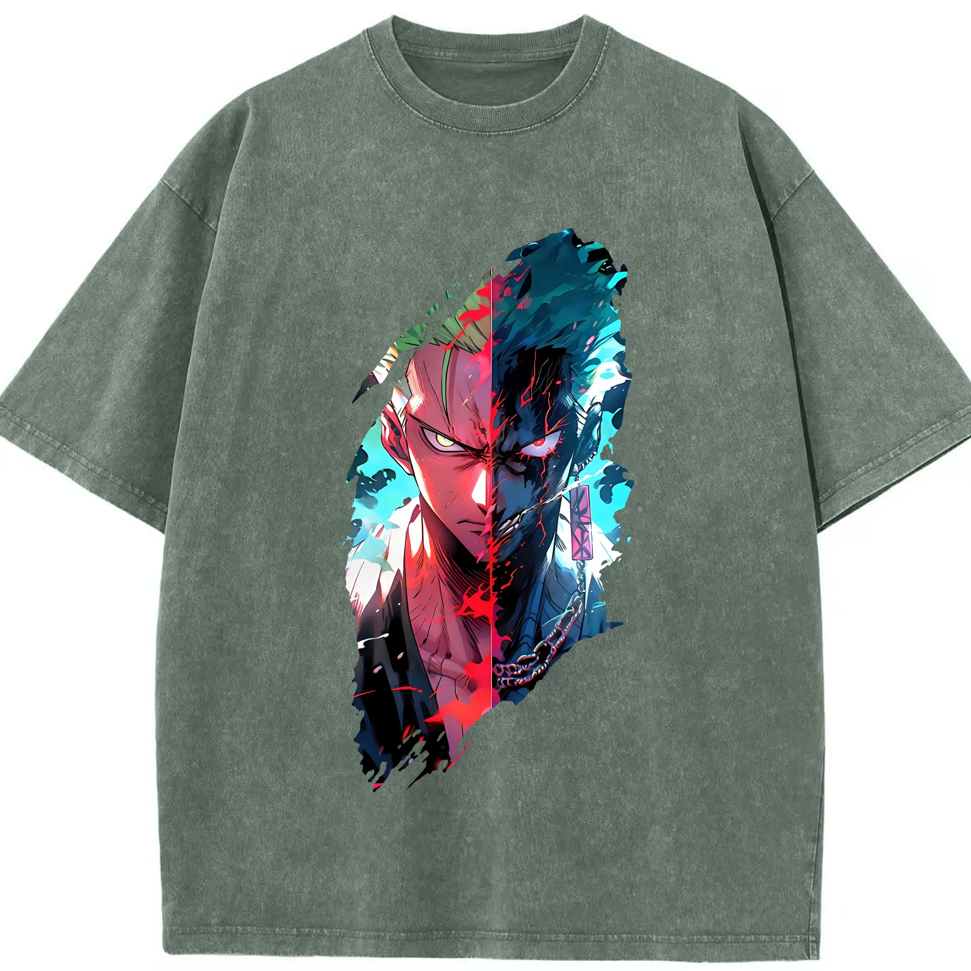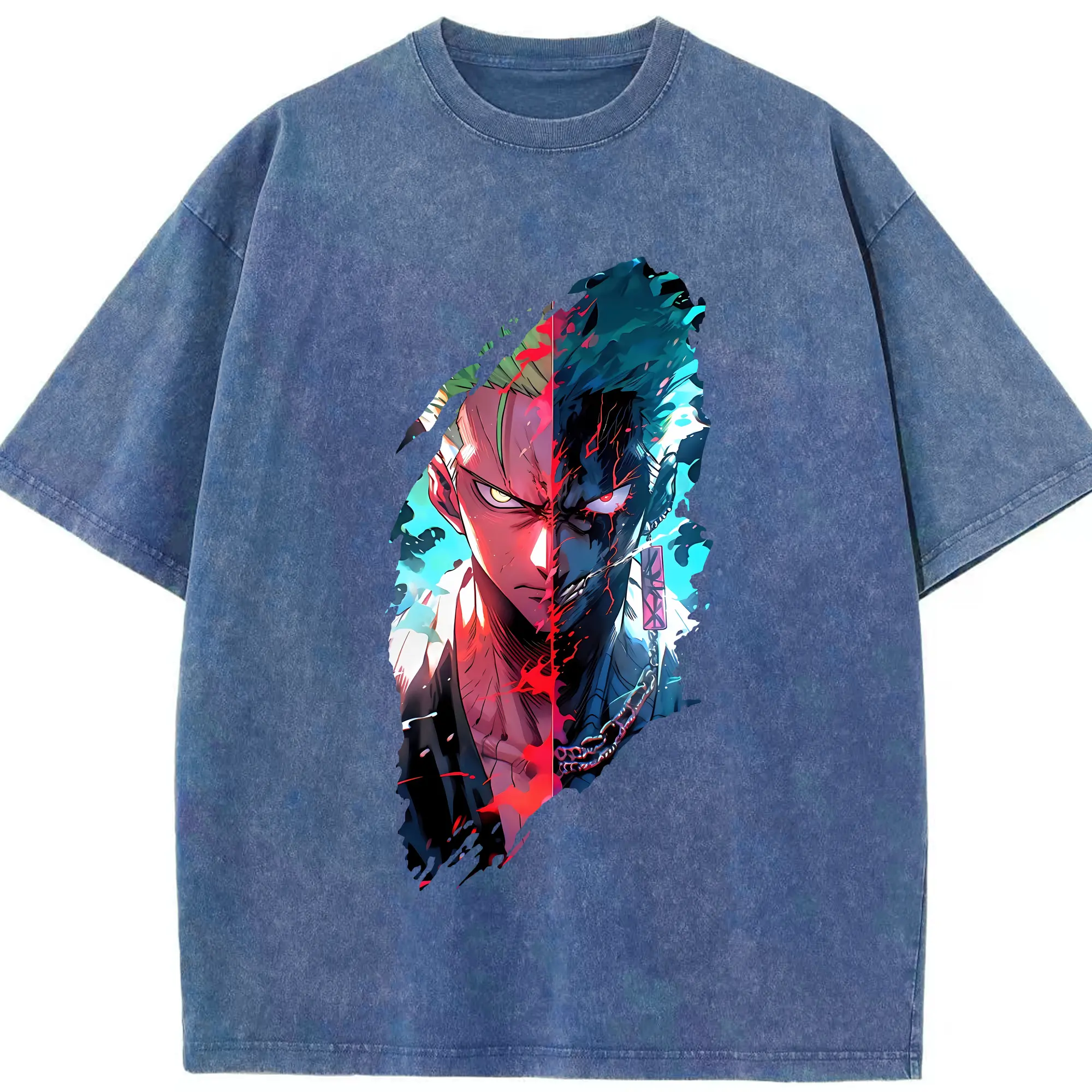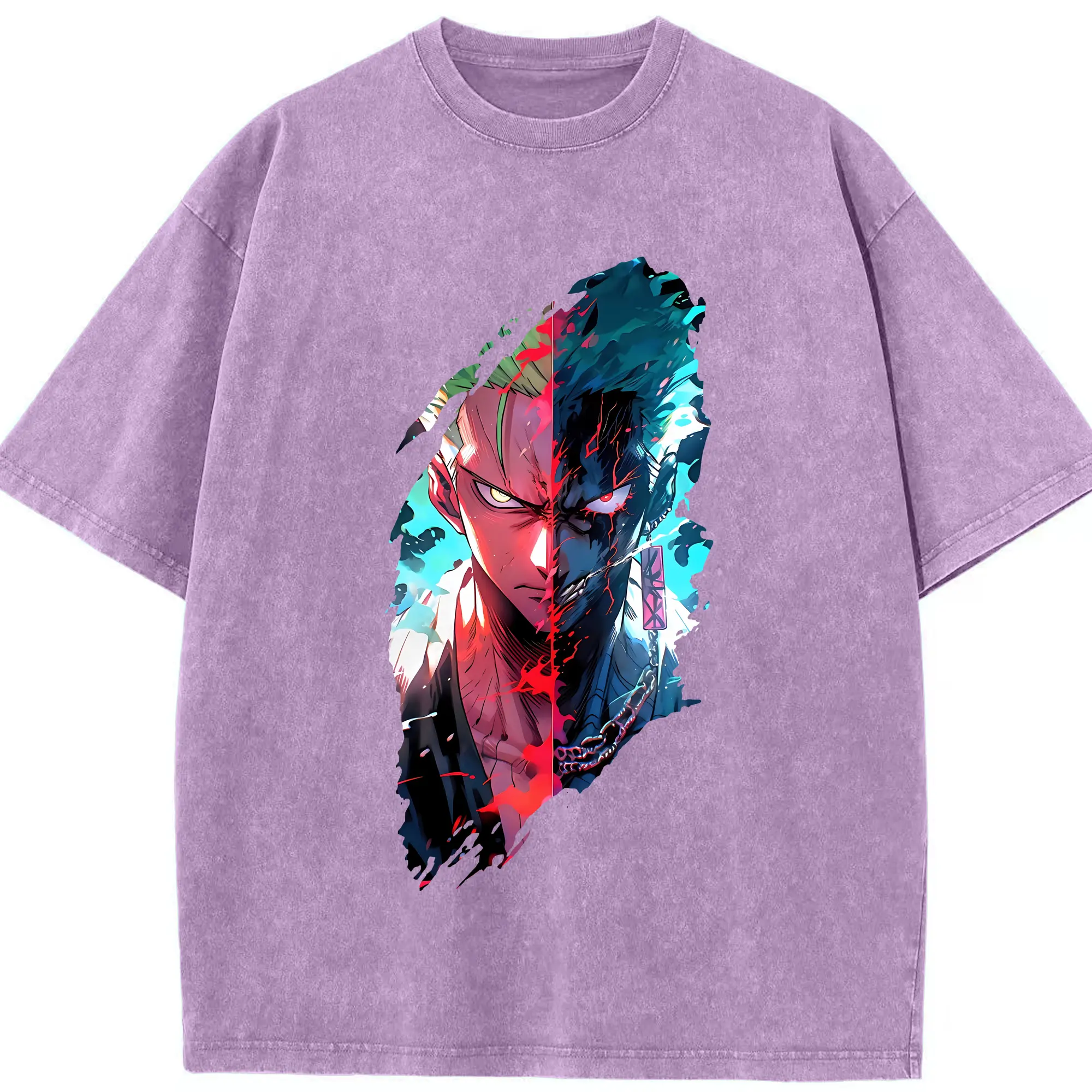 ワンピース グッズ ロロノア・ゾロ - 綿100% ヴィンテージ風 半袖Tシャツ ・ 背面プリント ・ 柔らか肌触り ・ 通気性 快適 ・ スポーツ カジュアル 外出用