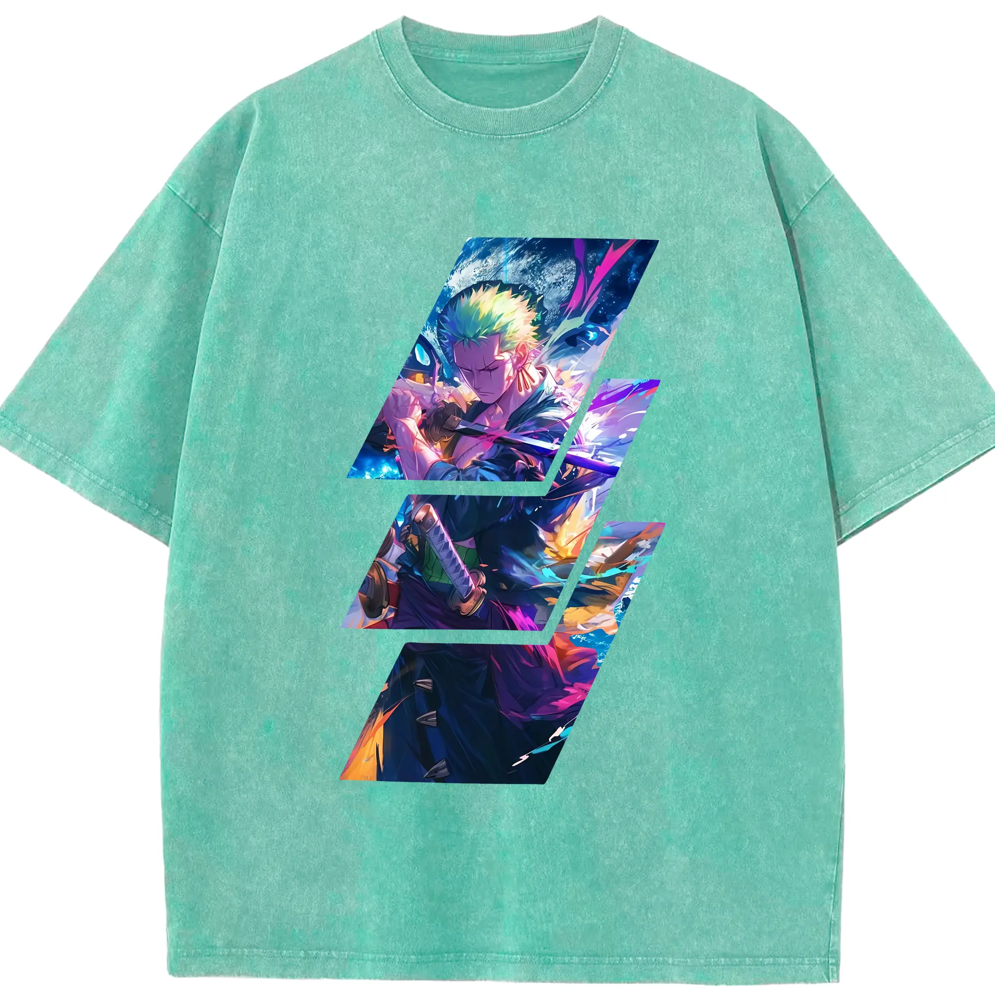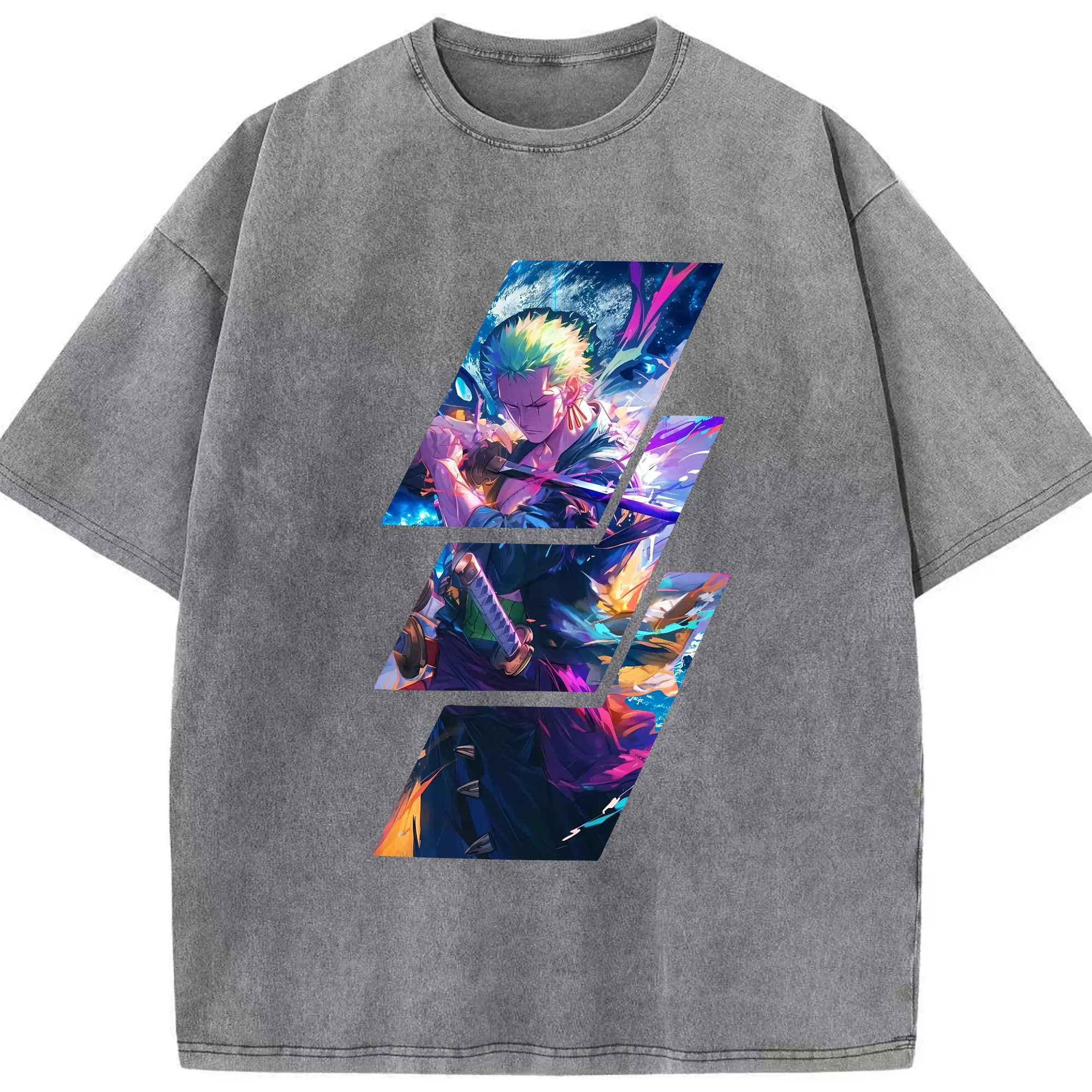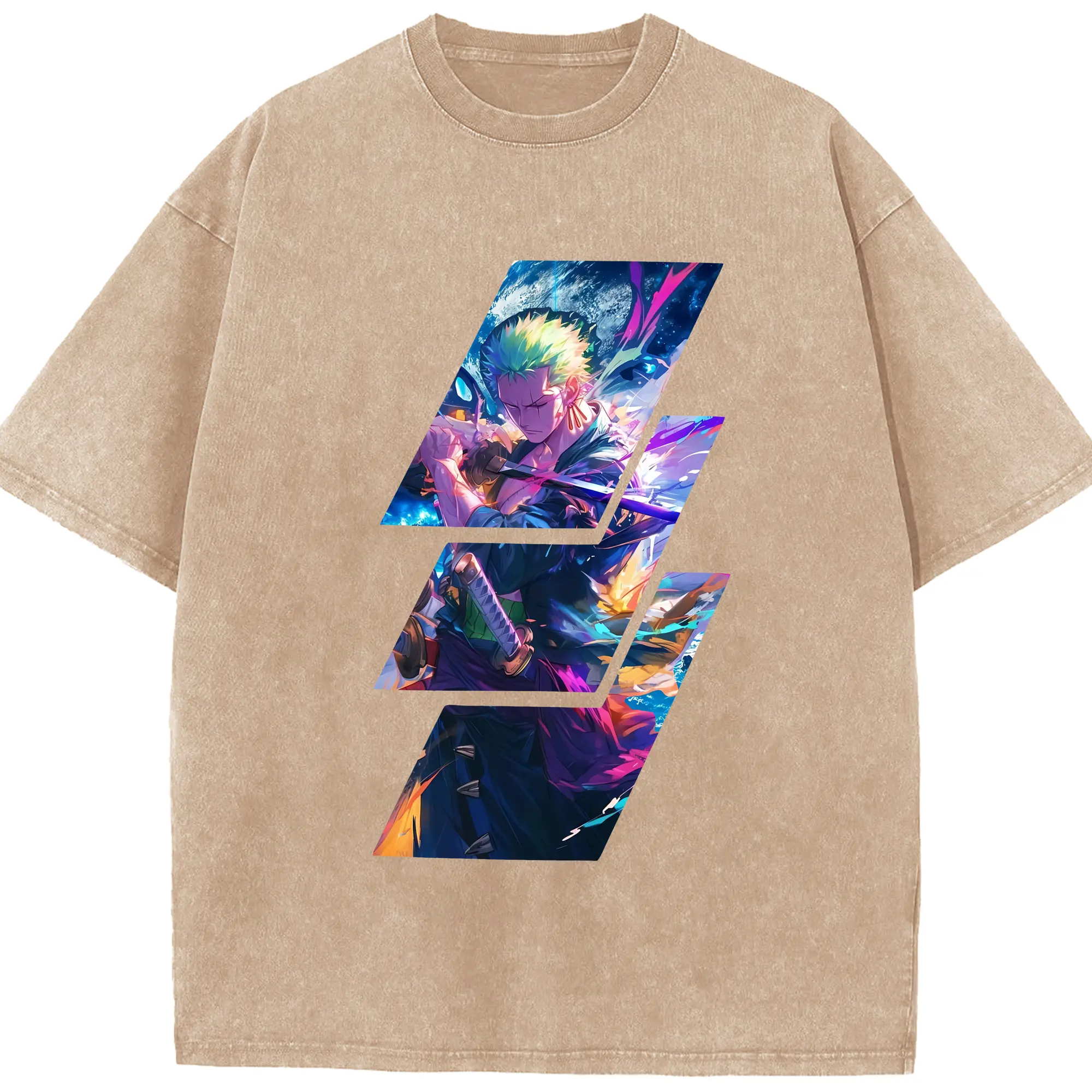 ワンピース グッズ ロロノア・ゾロ - 綿100% ヴィンテージ風 半袖Tシャツ ・ 背面プリント ・ 柔らか肌触り ・ 通気性 快適 ・ スポーツ カジュアル 外出用