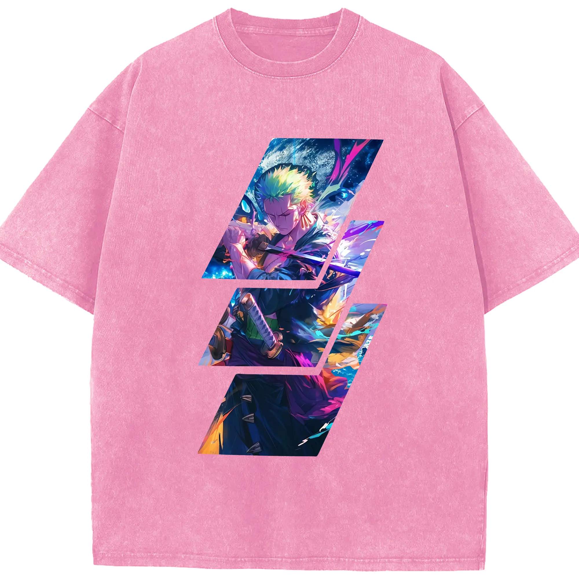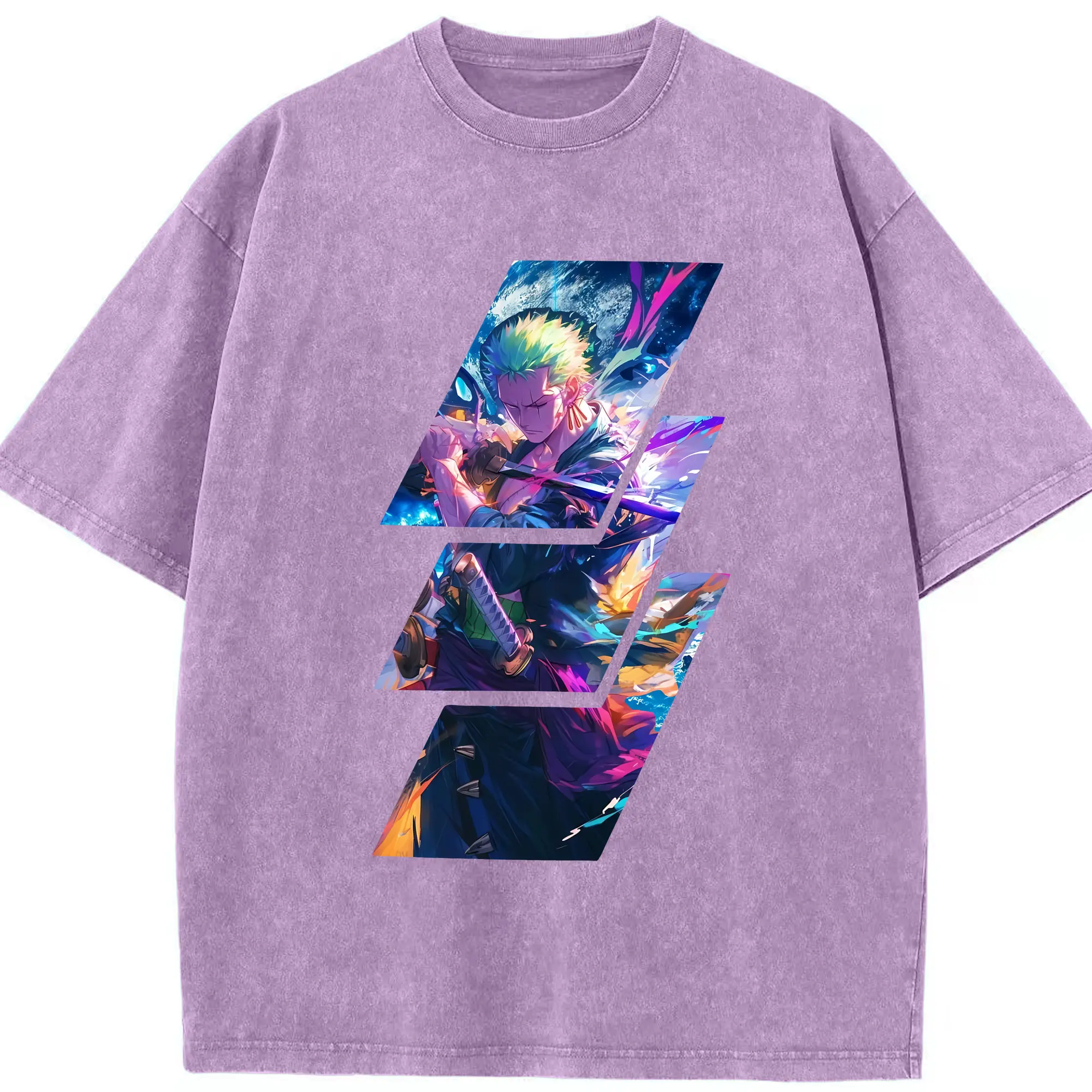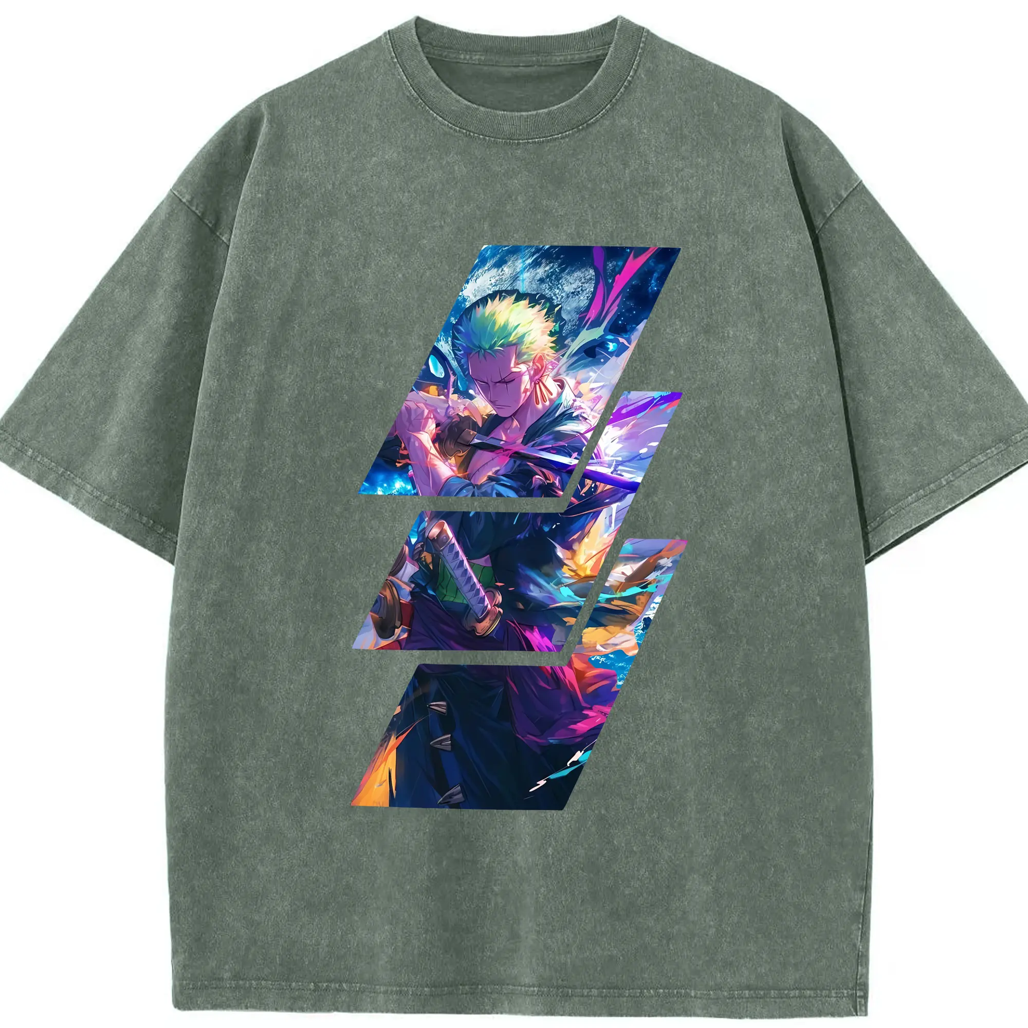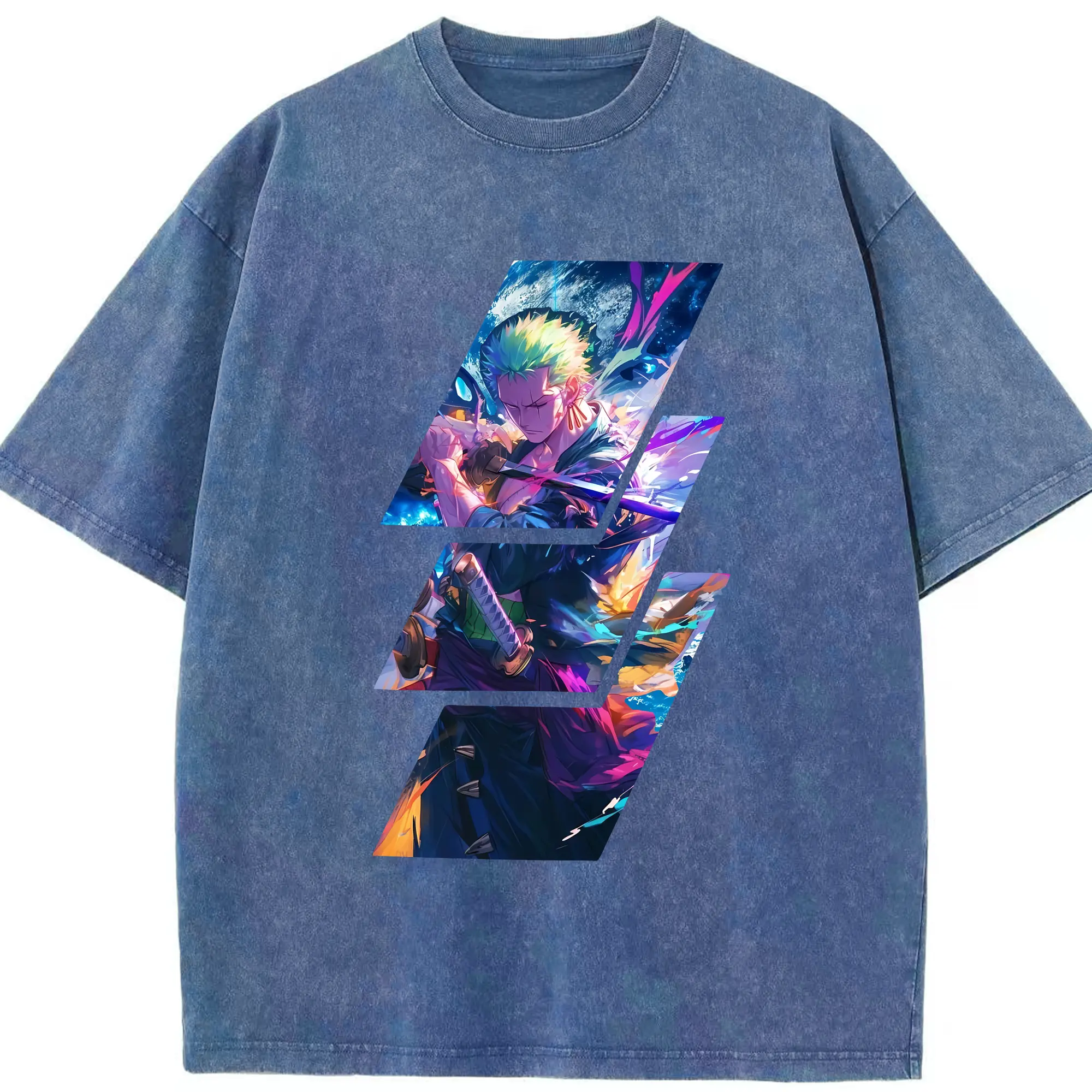 ワンピース グッズ ロロノア・ゾロ - 綿100% ヴィンテージ風 半袖Tシャツ ・ 背面プリント ・ 柔らか肌触り ・ 通気性 快適 ・ スポーツ カジュアル 外出用