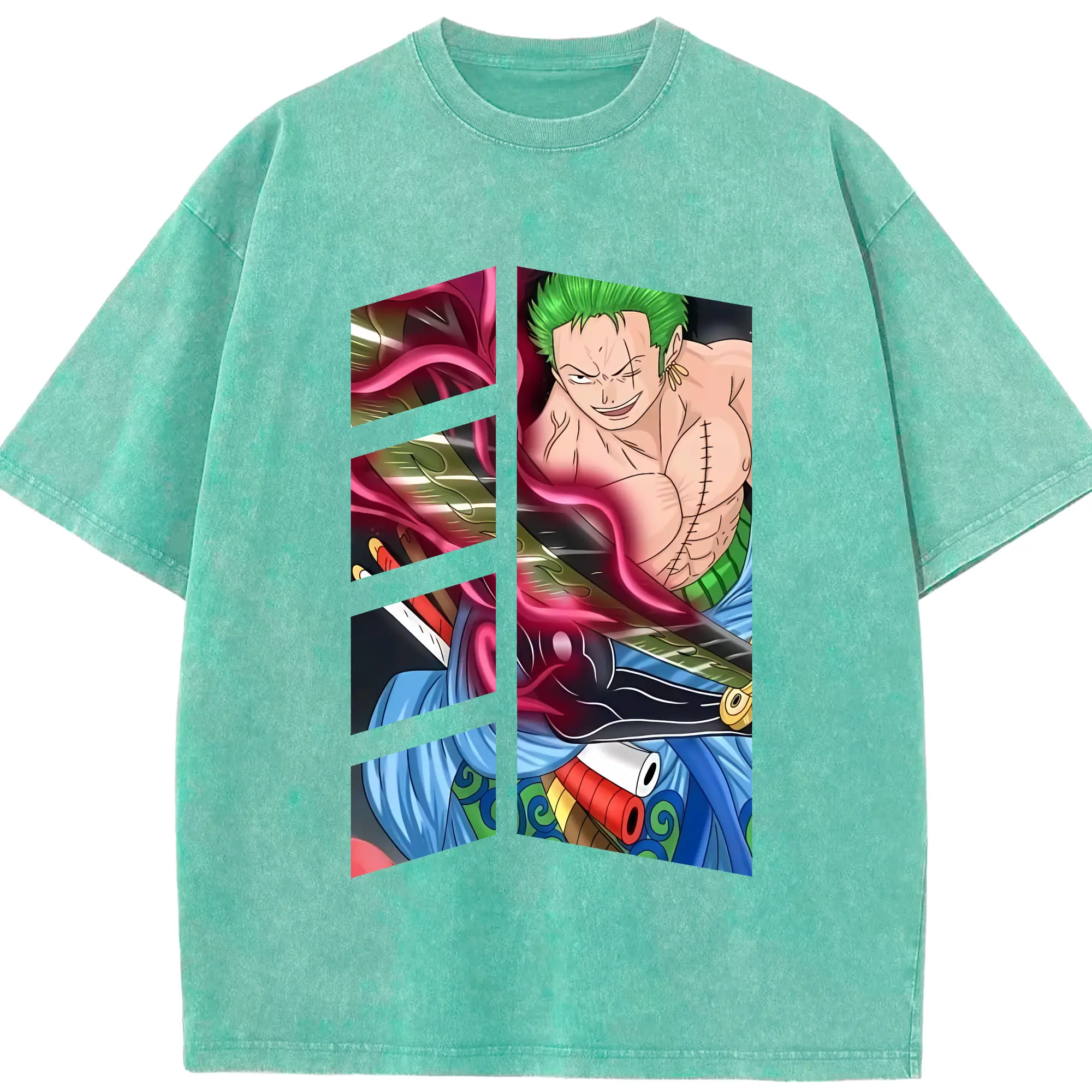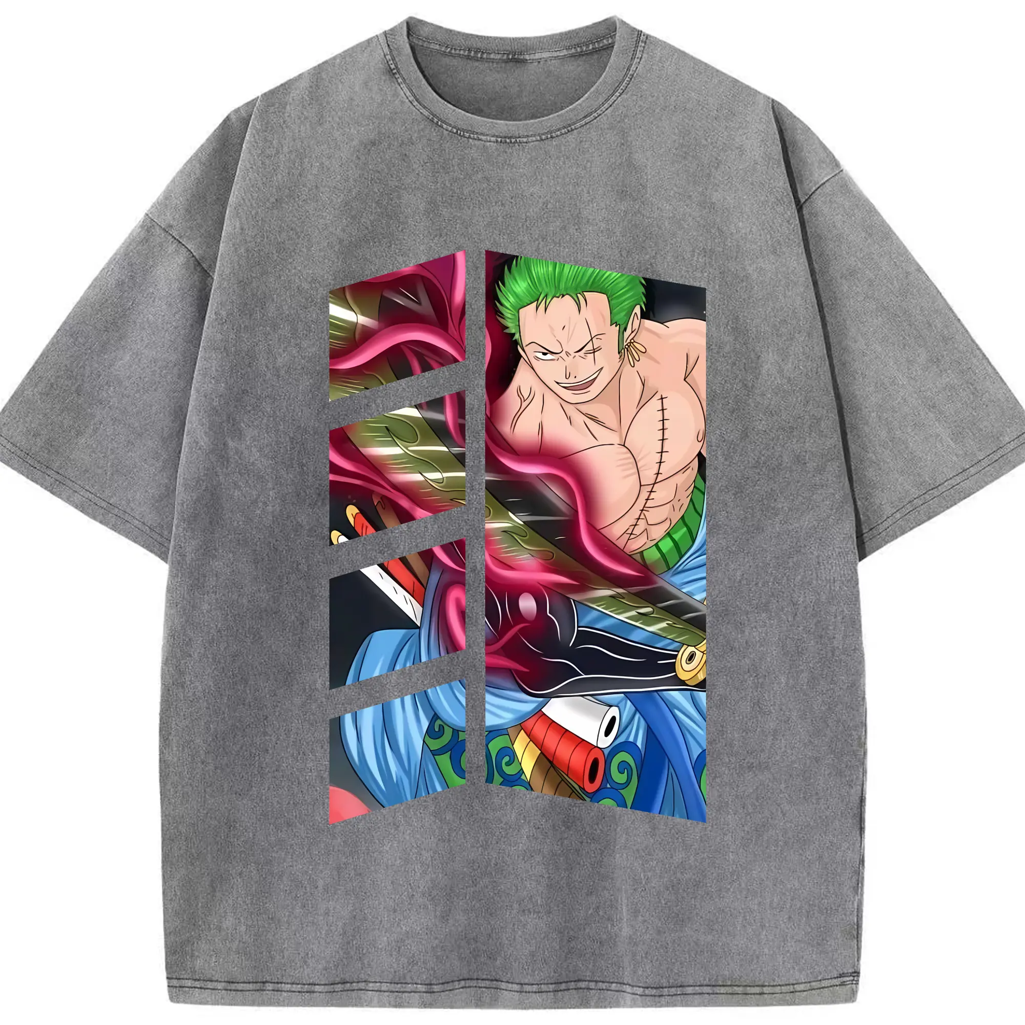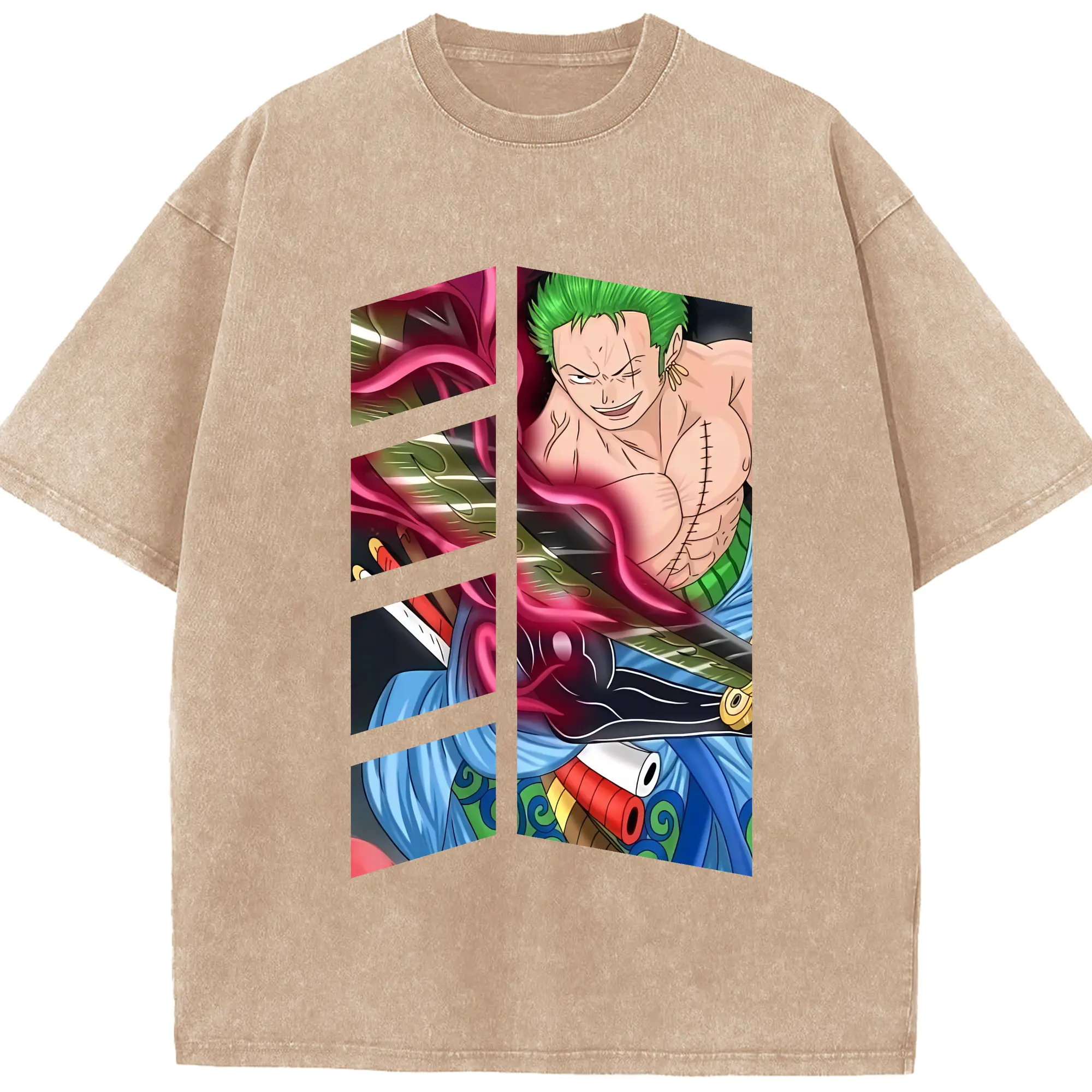 ワンピース グッズ ロロノア・ゾロ - 綿100% ヴィンテージ風 半袖Tシャツ ・ 背面プリント ・ 柔らか肌触り ・ 通気性 快適 ・ スポーツ カジュアル 外出用