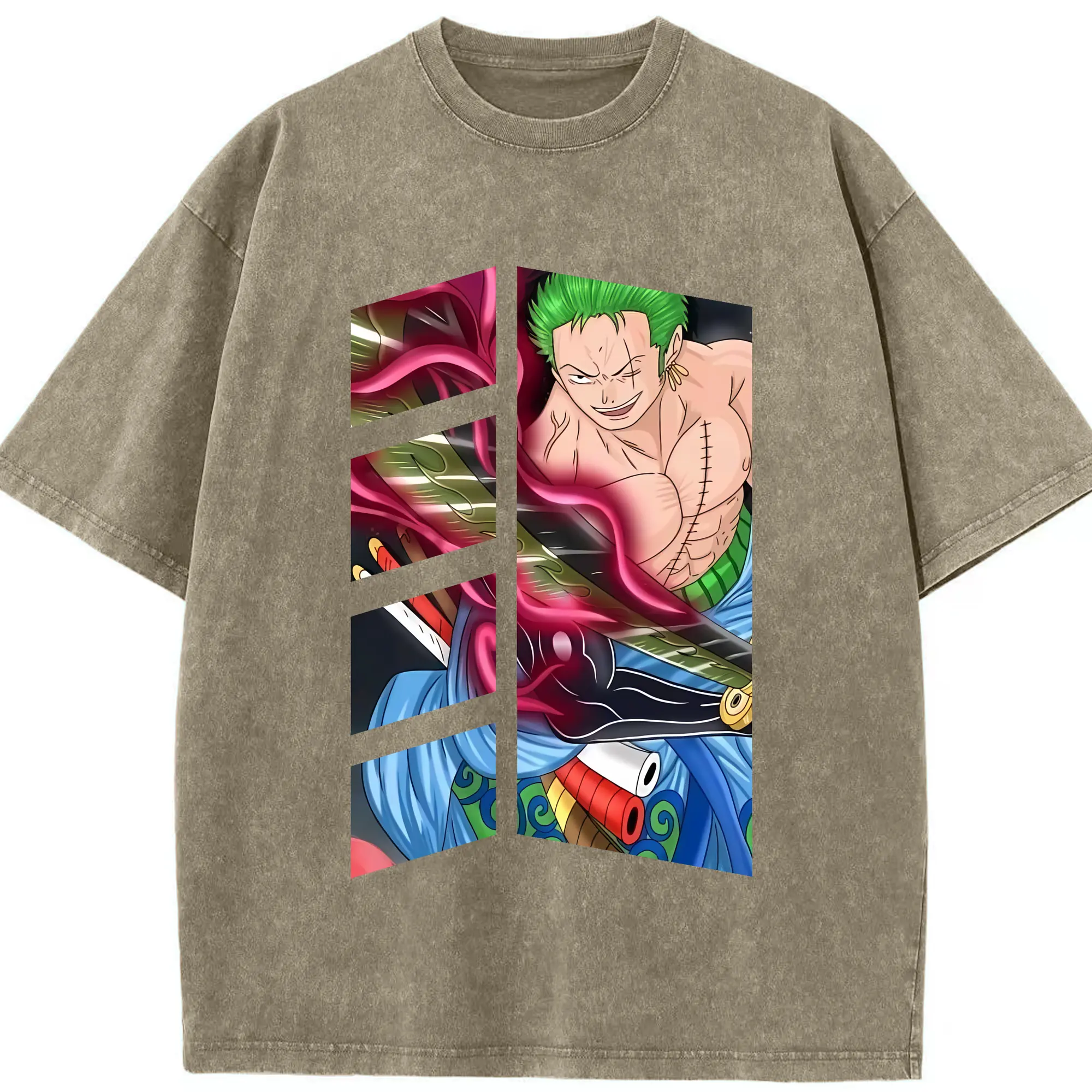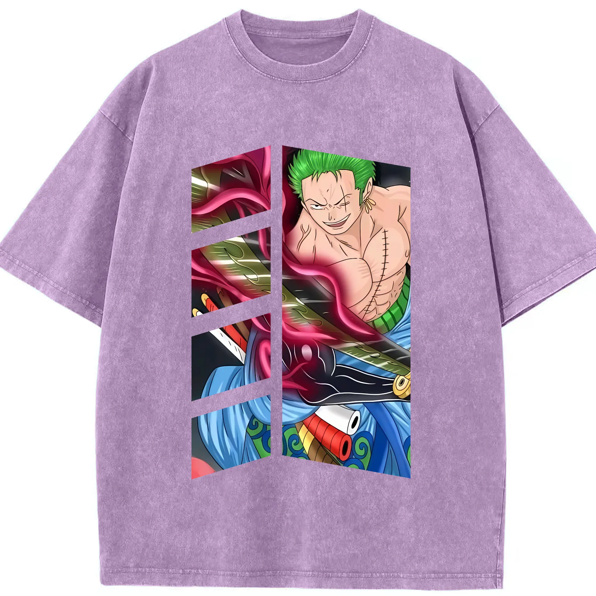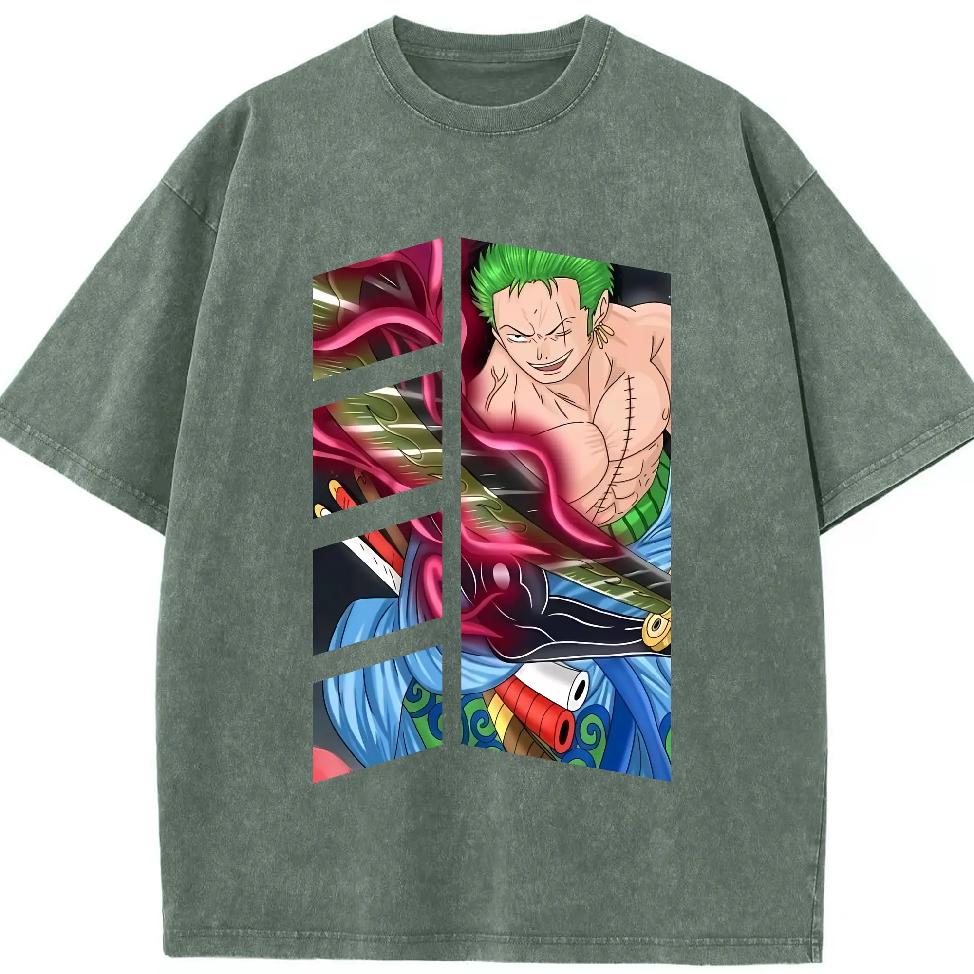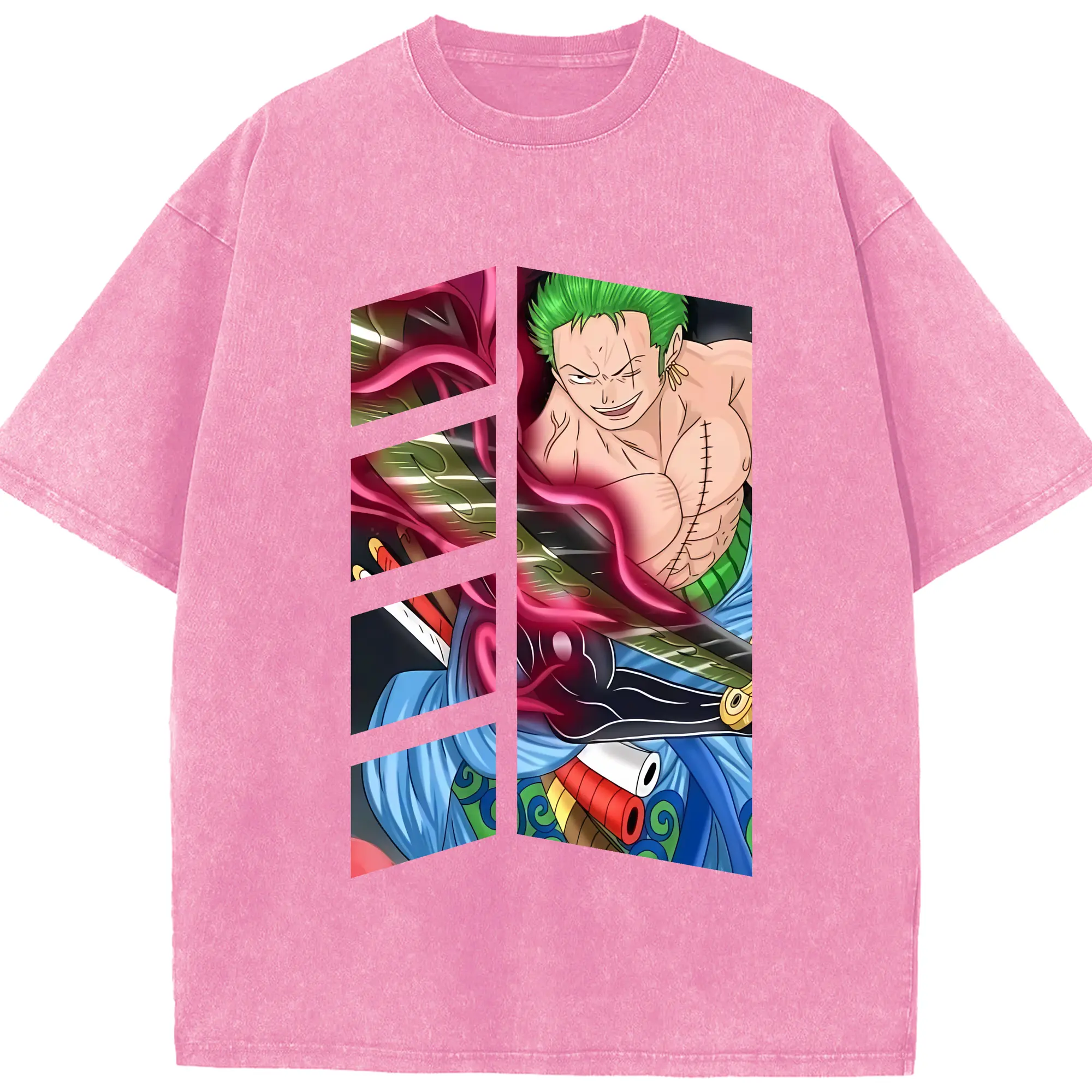 ワンピース グッズ ロロノア・ゾロ - 綿100% ヴィンテージ風 半袖Tシャツ ・ 背面プリント ・ 柔らか肌触り ・ 通気性 快適 ・ スポーツ カジュアル 外出用