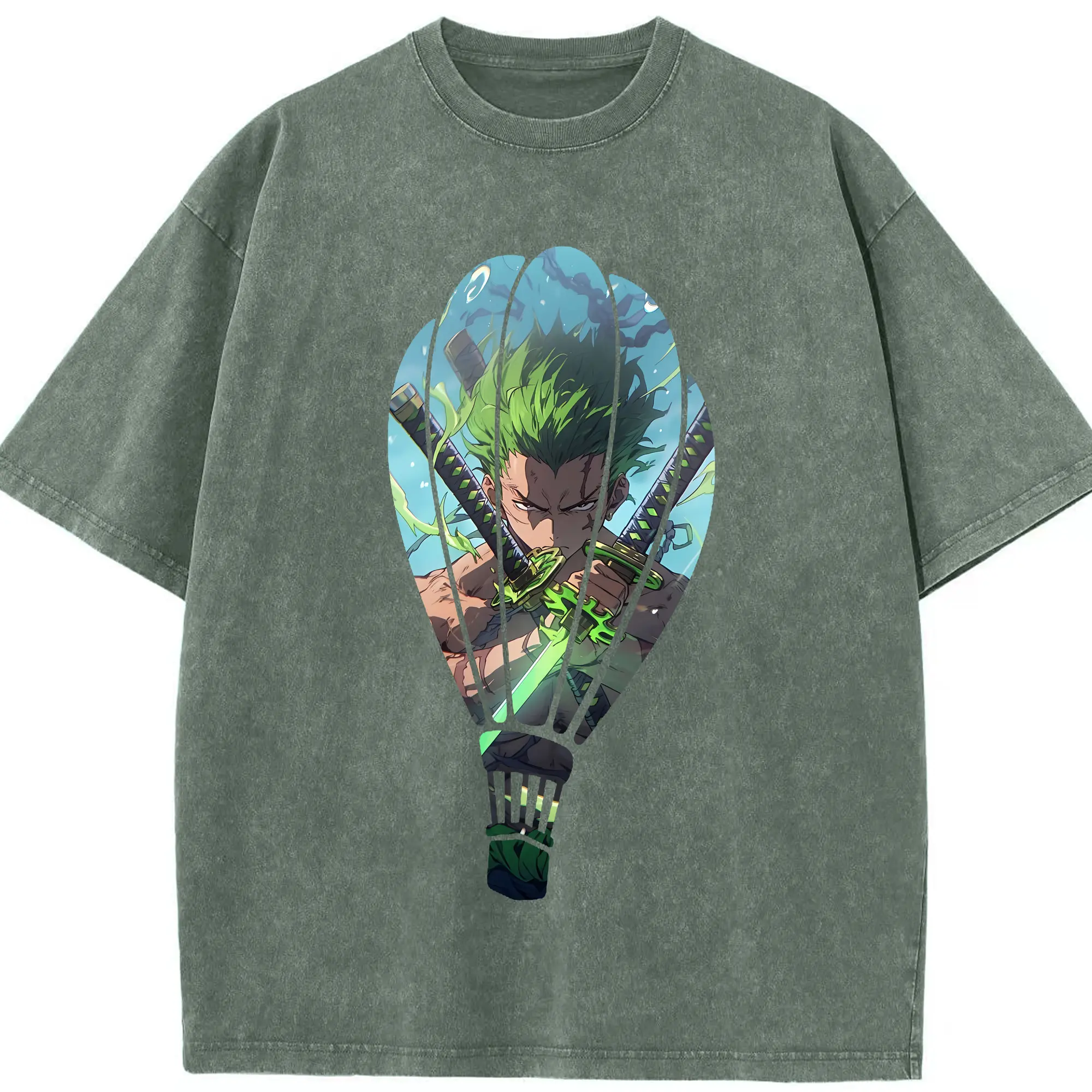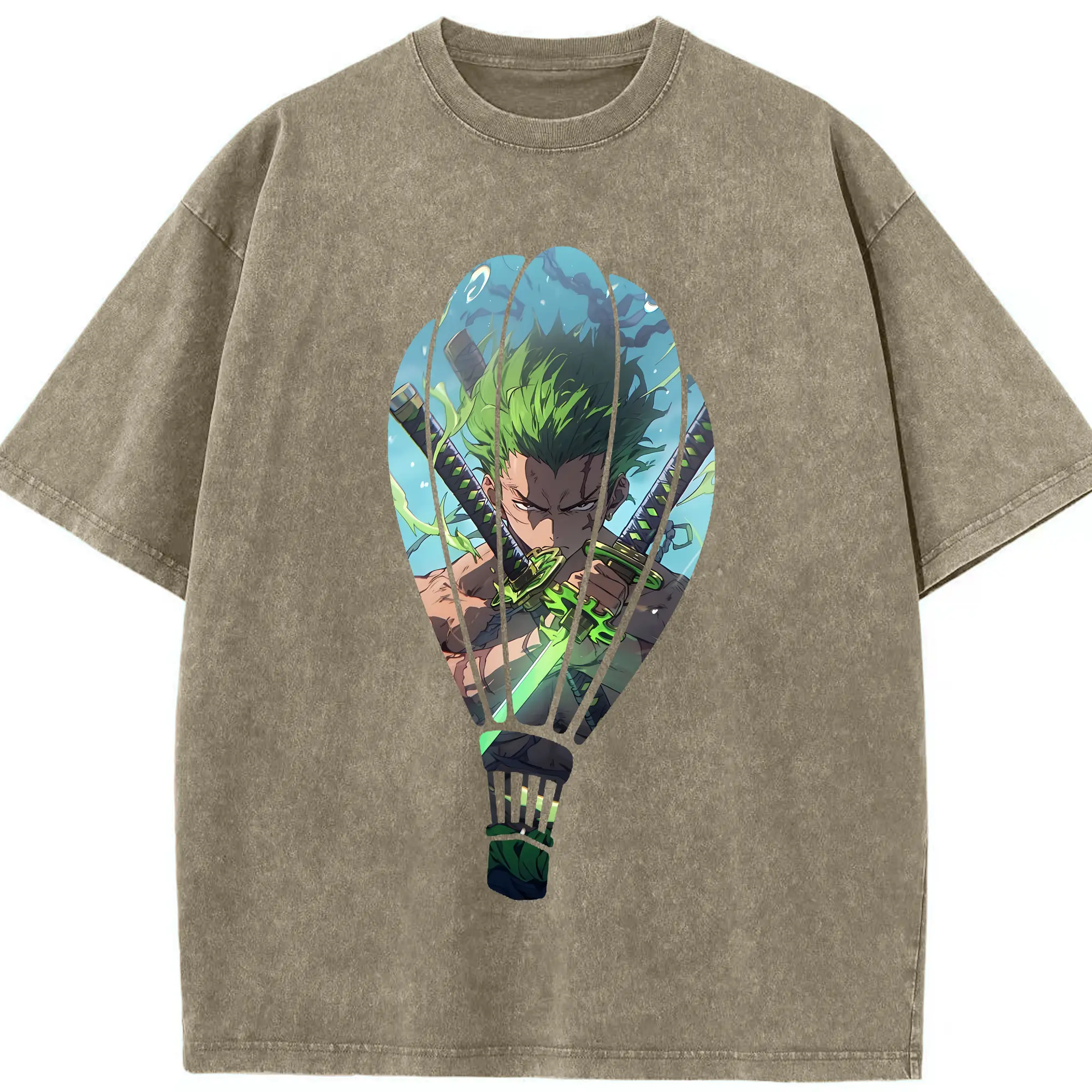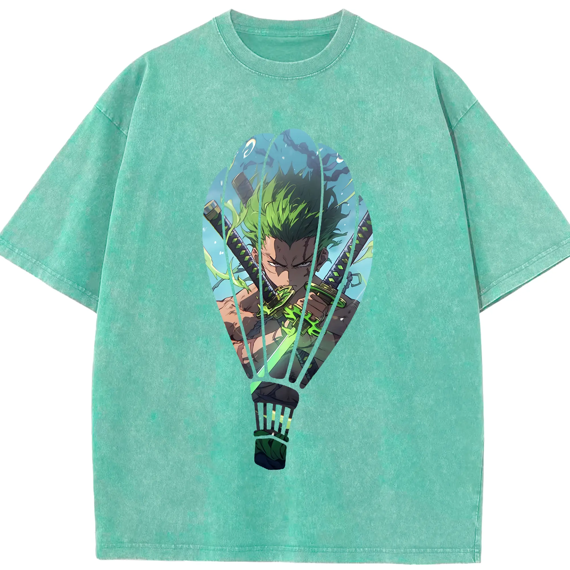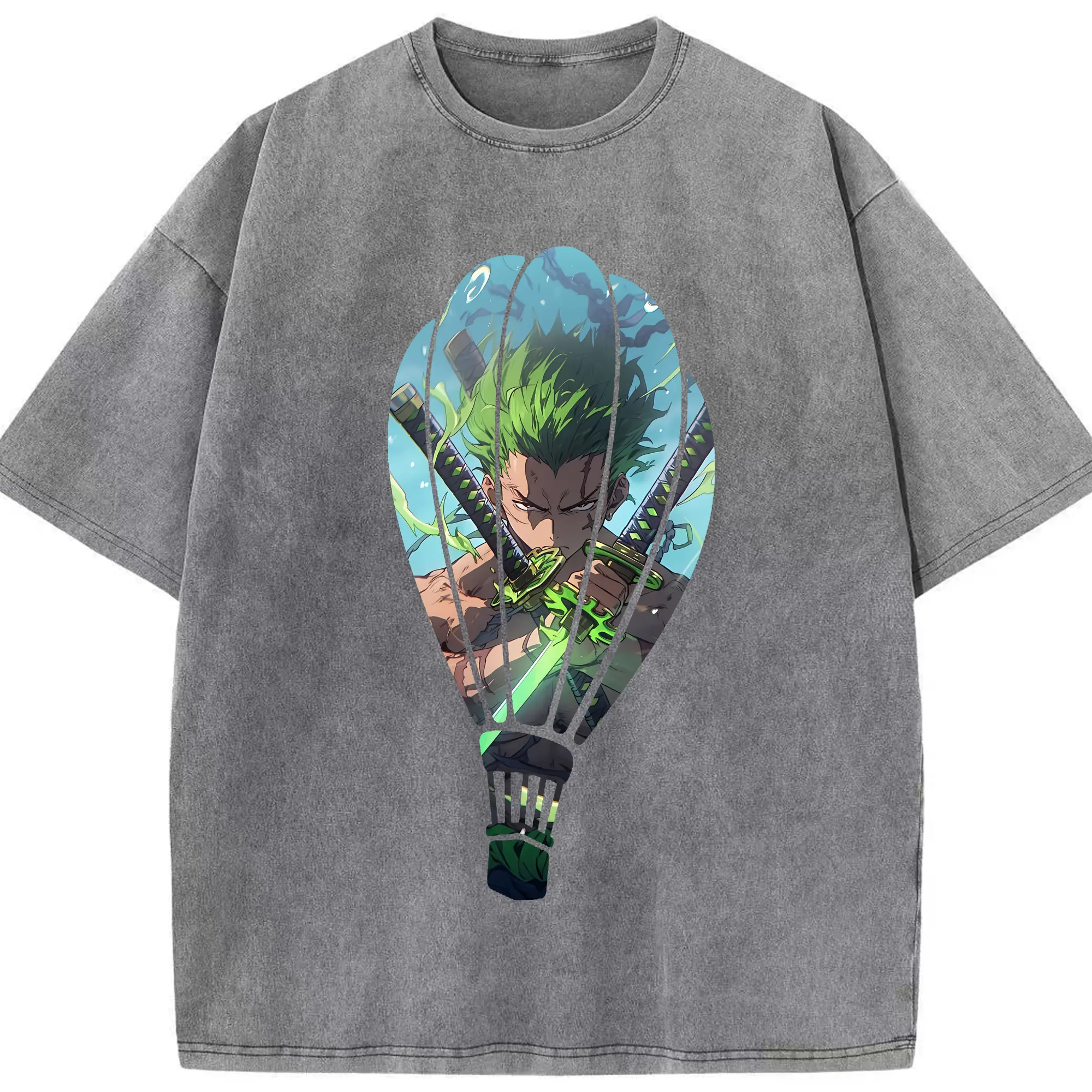 ワンピース グッズ ロロノア・ゾロ - 綿100% ヴィンテージ風 半袖Tシャツ ・ 背面プリント ・ 柔らか肌触り ・ 通気性 快適 ・ スポーツ カジュアル 外出用