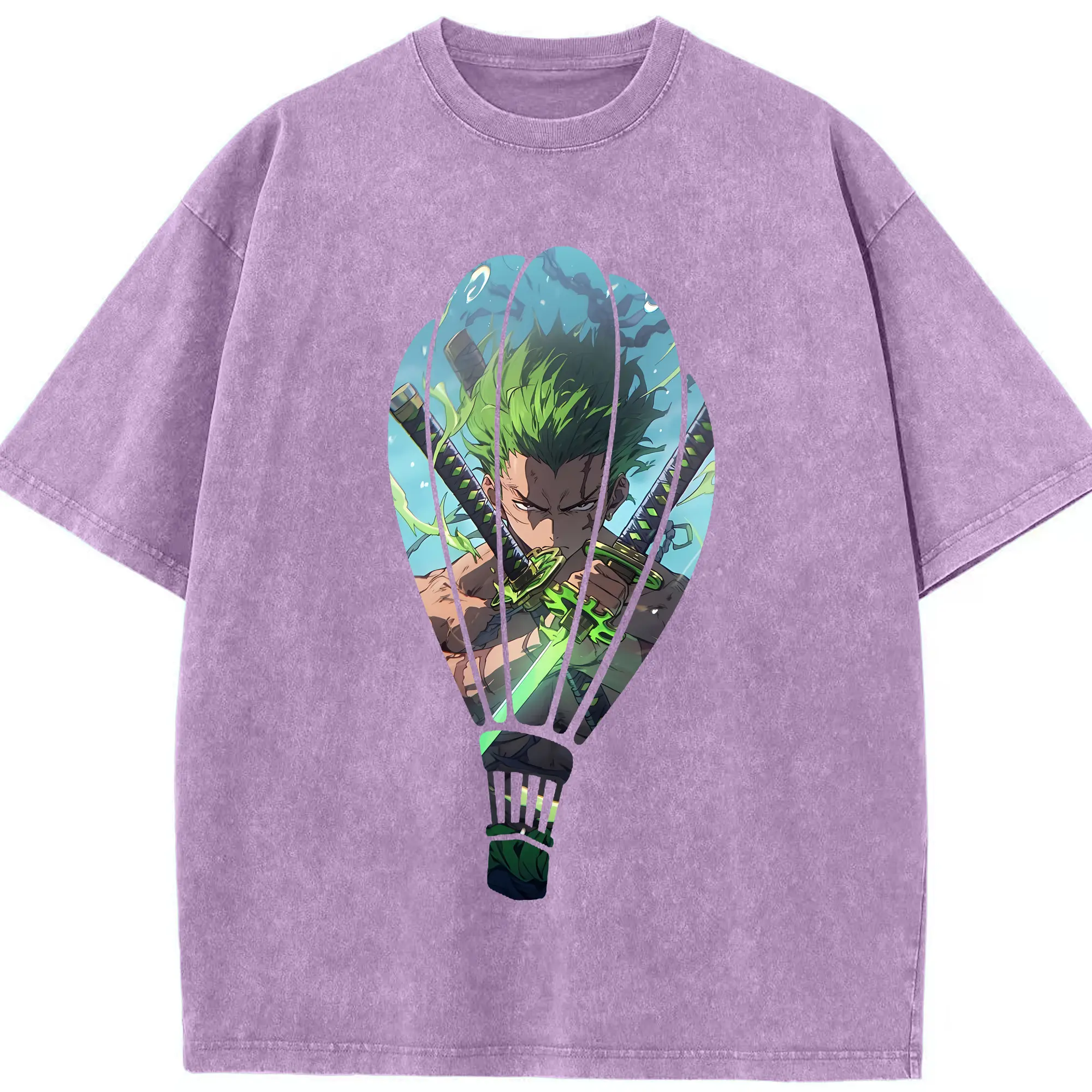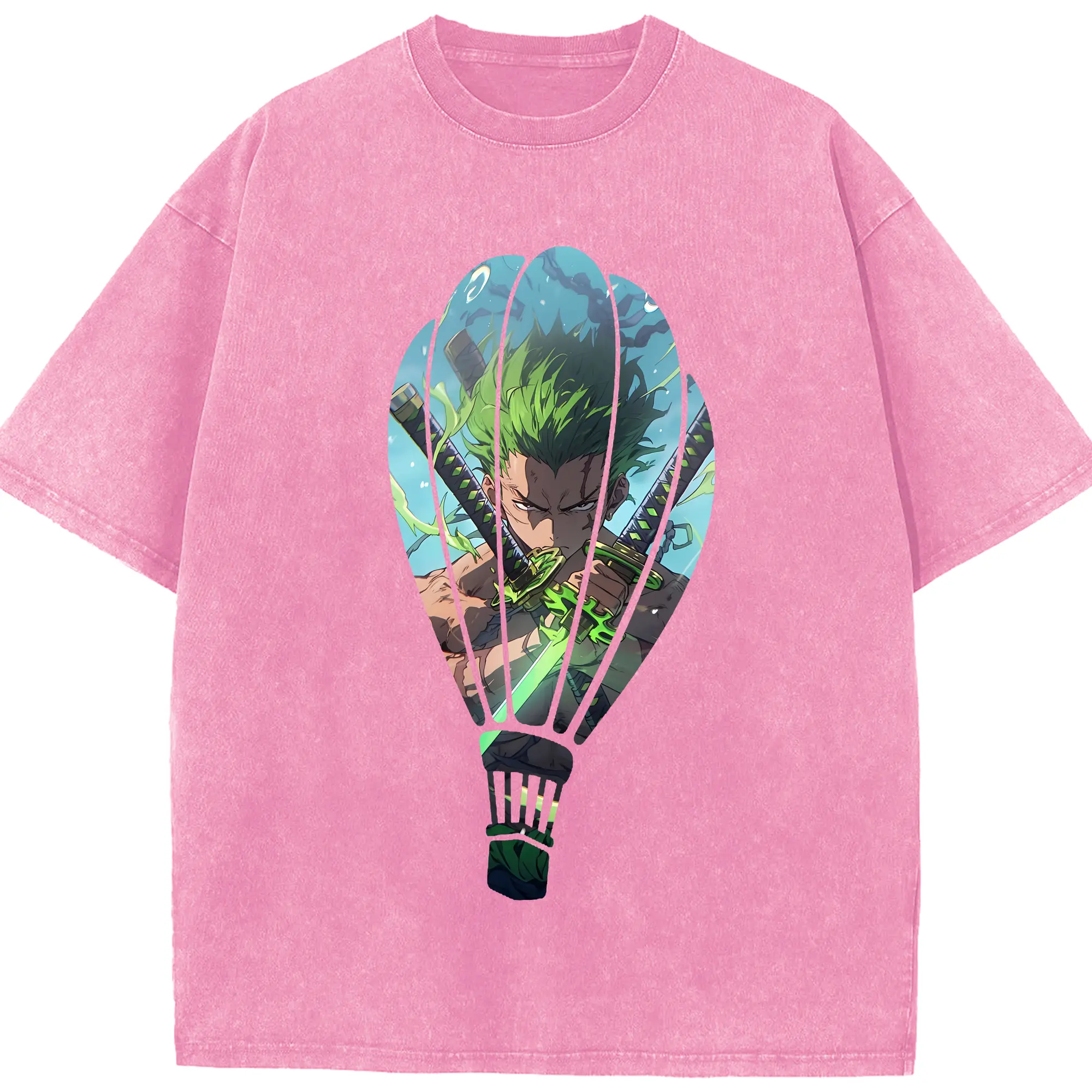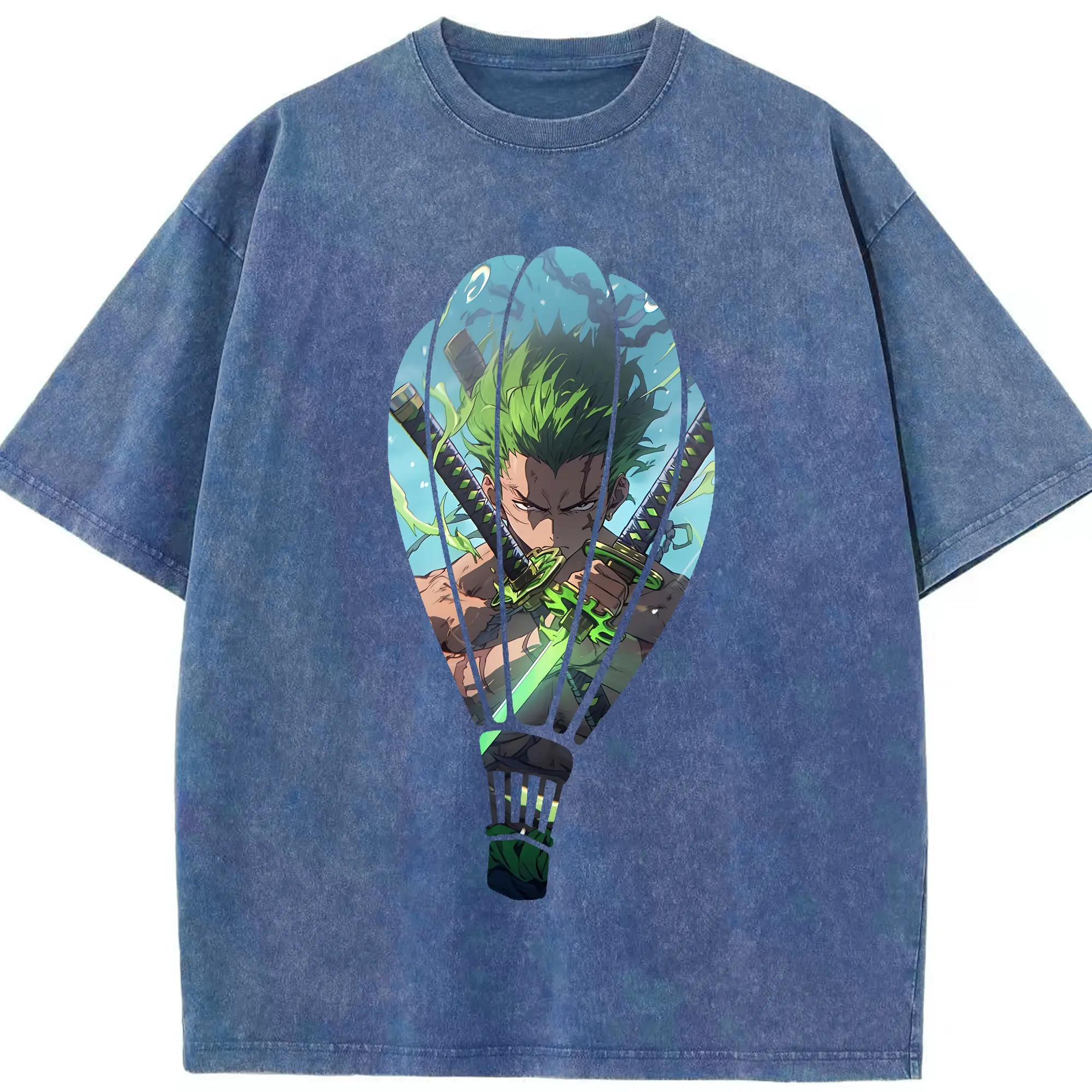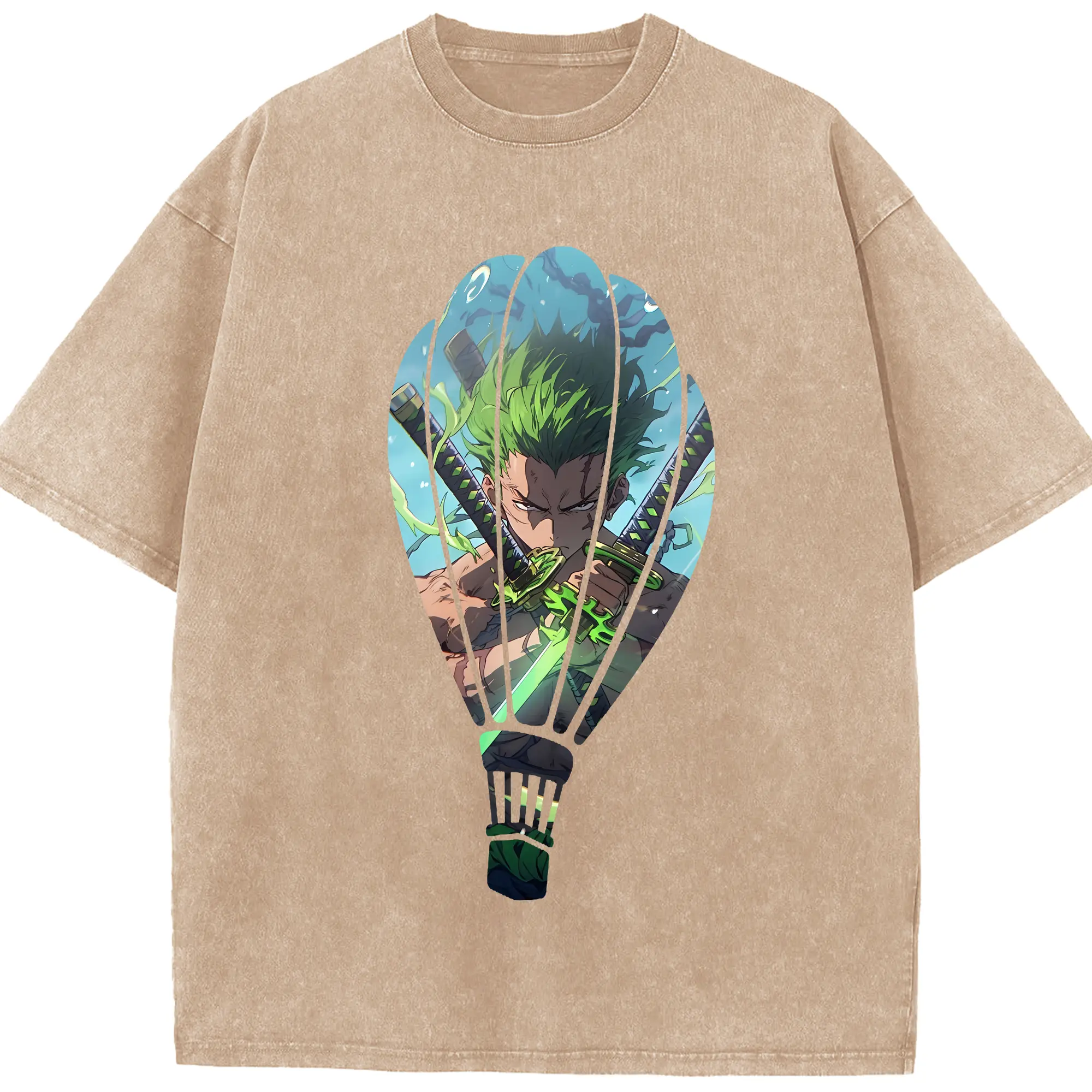 ワンピース グッズ ロロノア・ゾロ - 綿100% ヴィンテージ風 半袖Tシャツ ・ 背面プリント ・ 柔らか肌触り ・ 通気性 快適 ・ スポーツ カジュアル 外出用