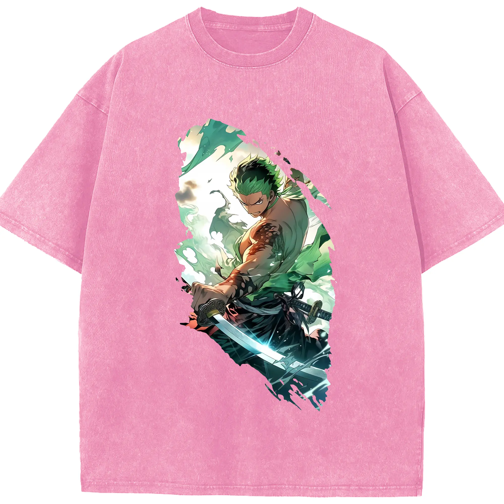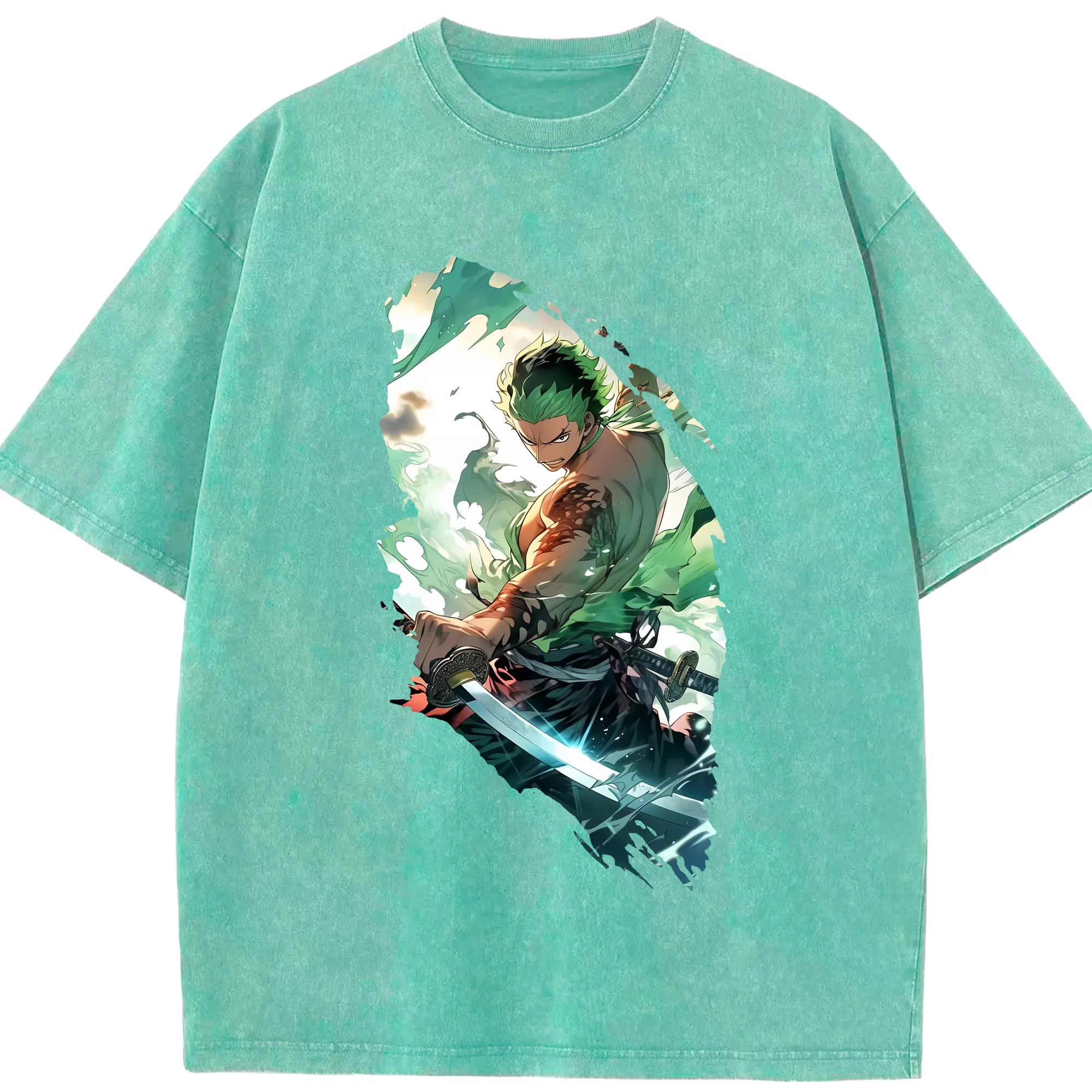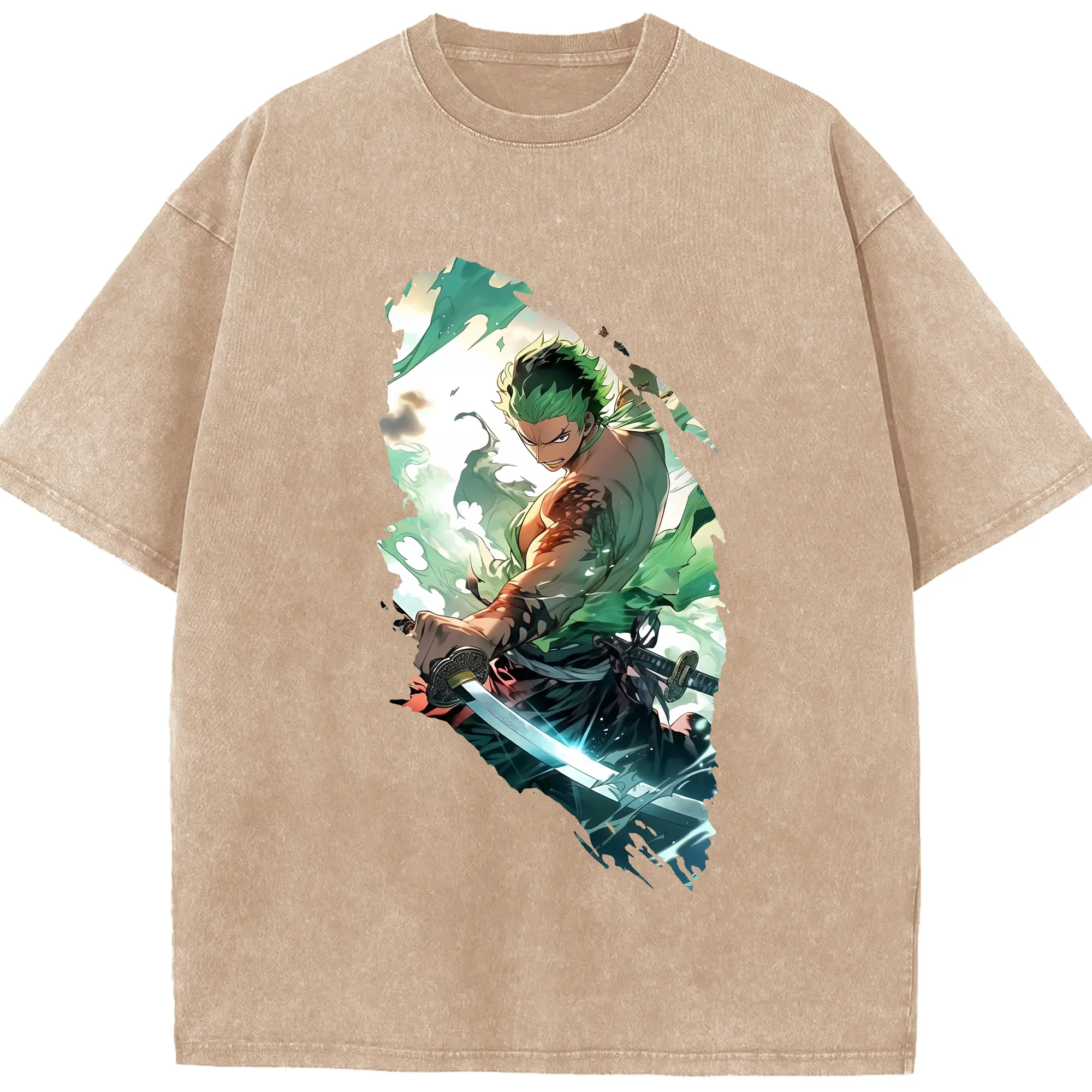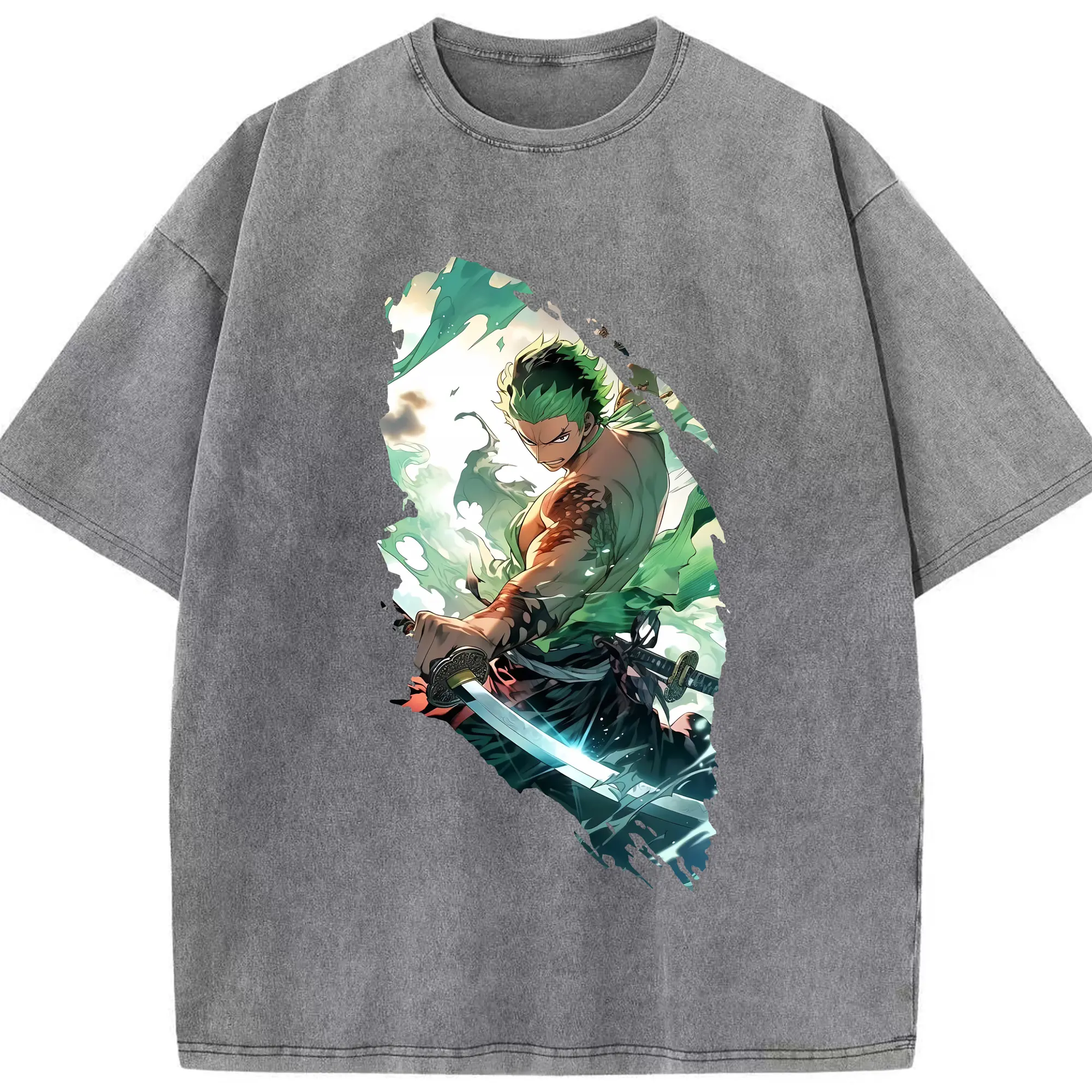 ワンピース グッズ ロロノア・ゾロ - 綿100% ヴィンテージ風 半袖Tシャツ ・ 背面プリント ・ 柔らか肌触り ・ 通気性 快適 ・ スポーツ カジュアル 外出用